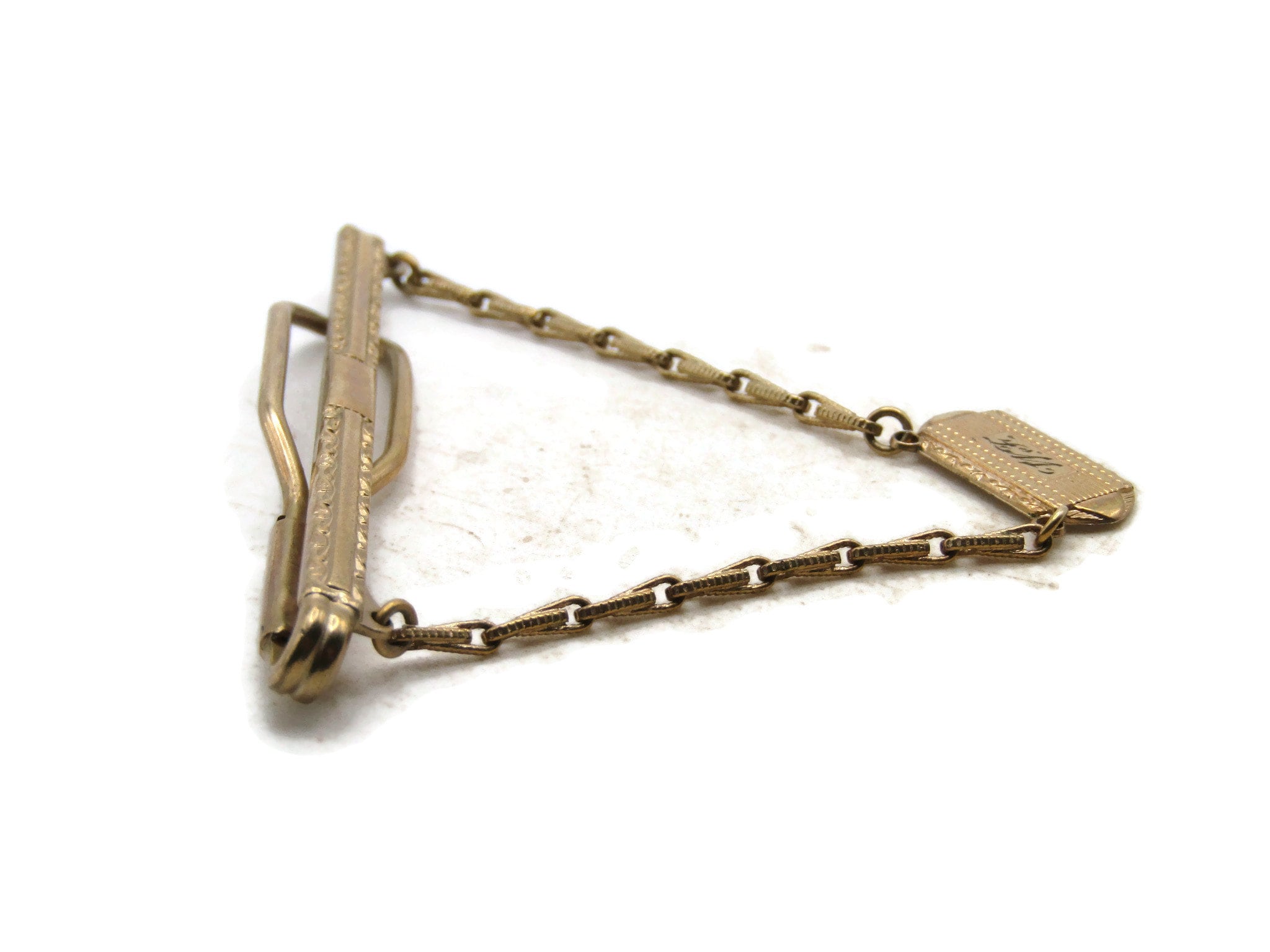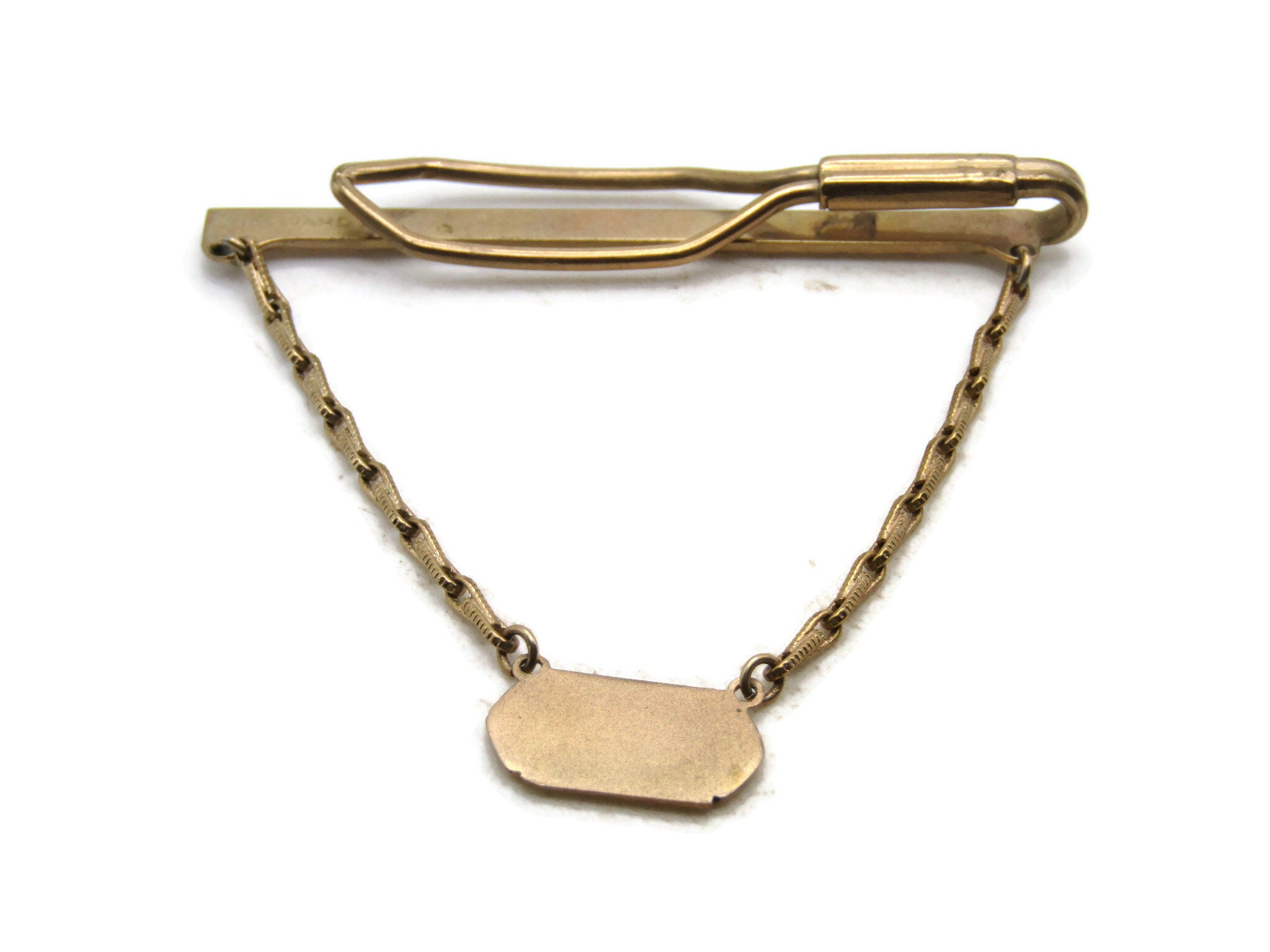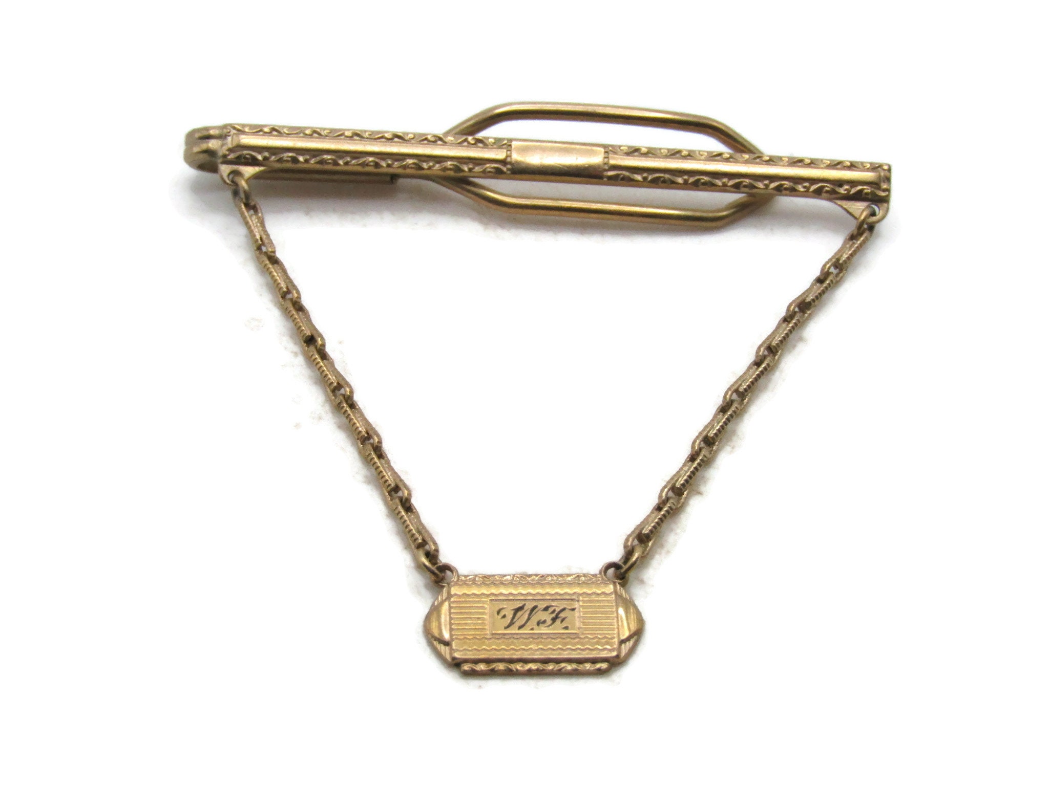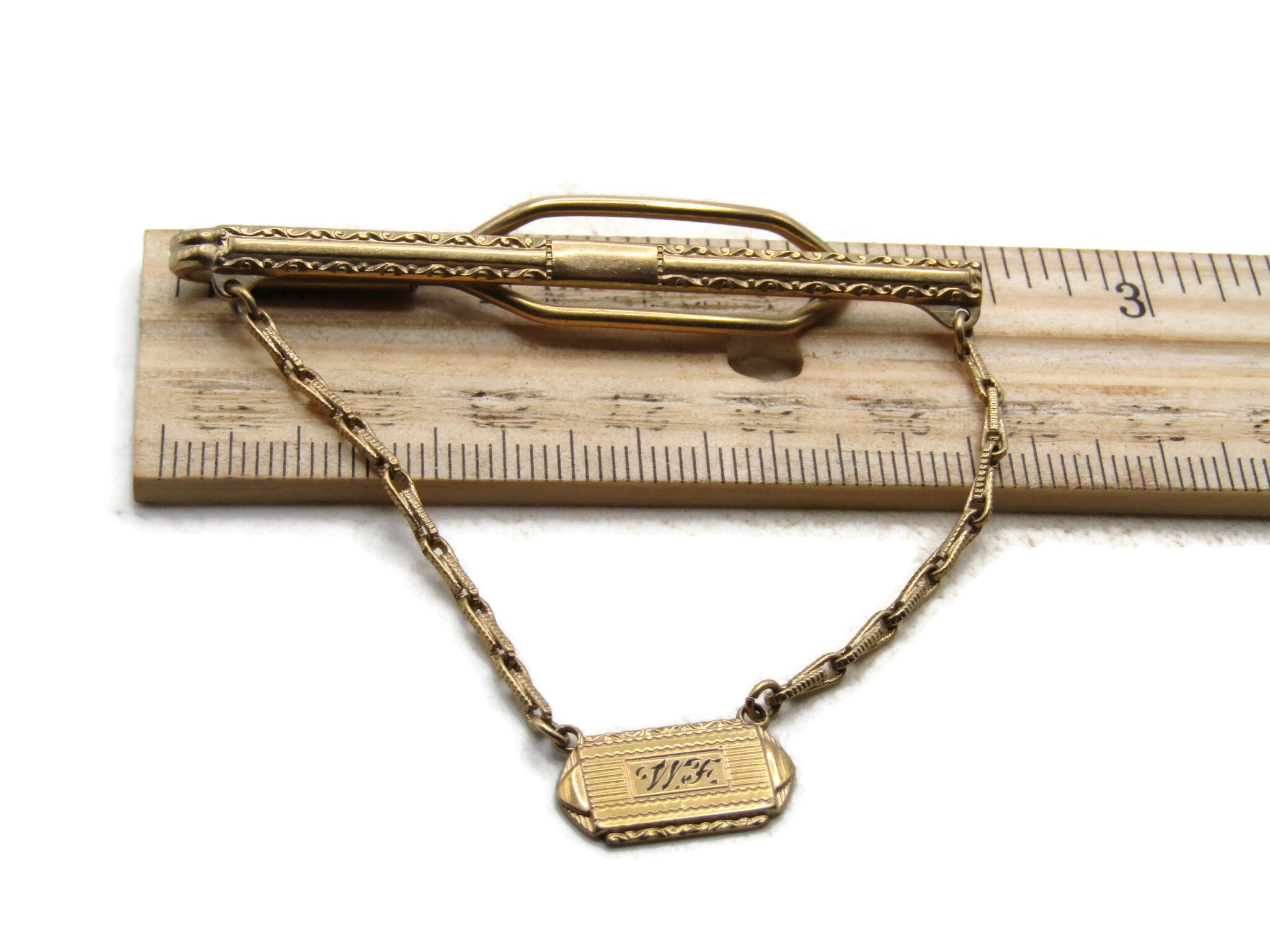 WF Letter Initial Monogram Charm And Chain Tie CLip Tie Bar Men's Jewelry Gold Tone