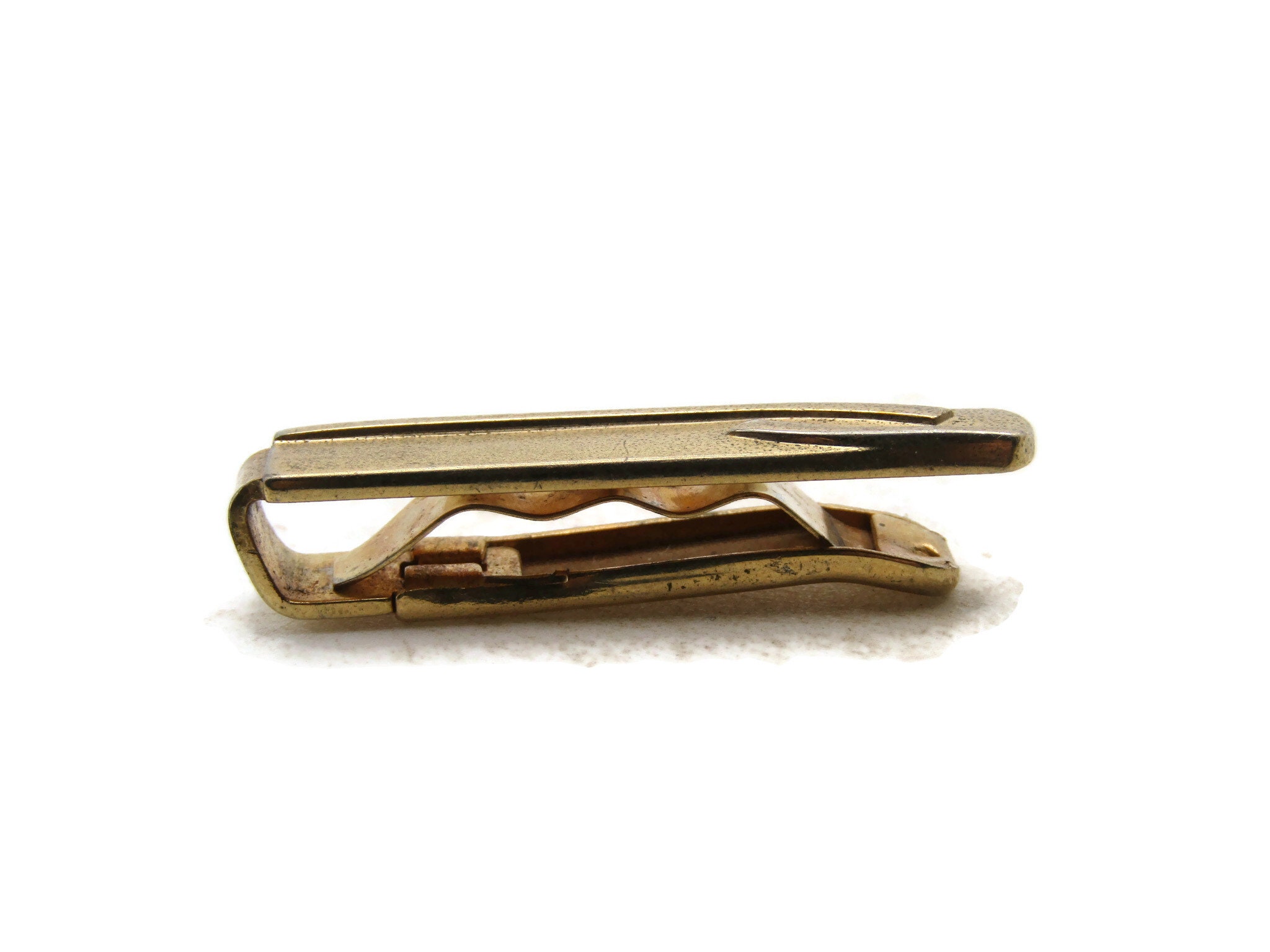 Curved Lines Tie Clip Modernist Tie Bar Men's Jewelry Gold Tone