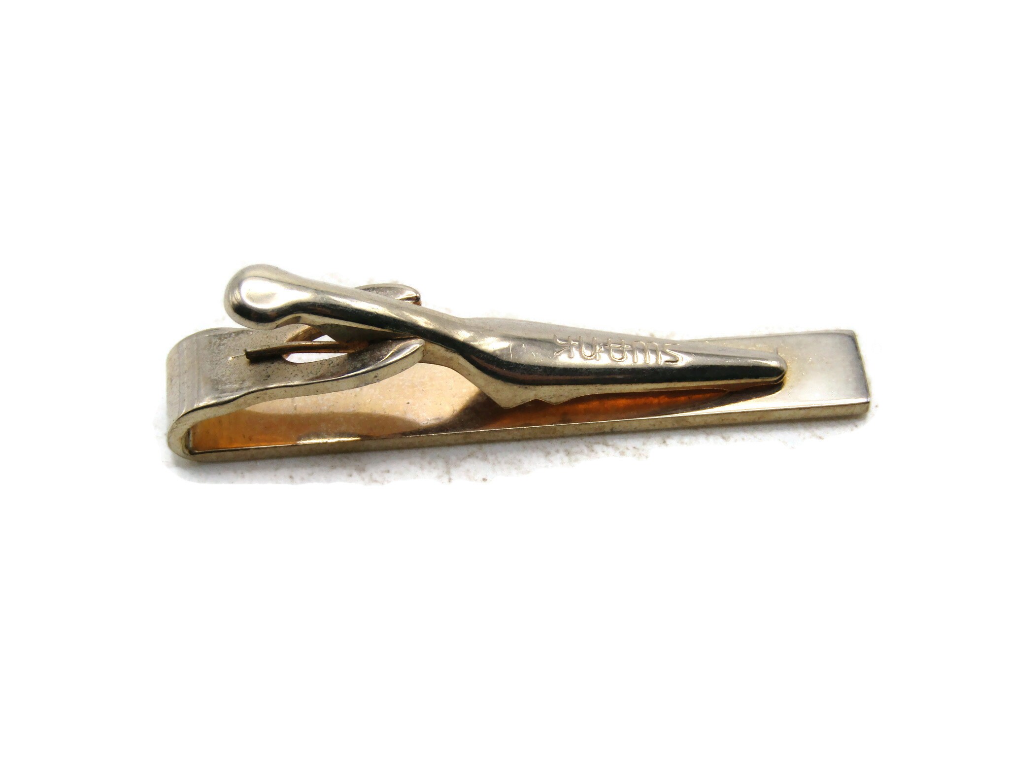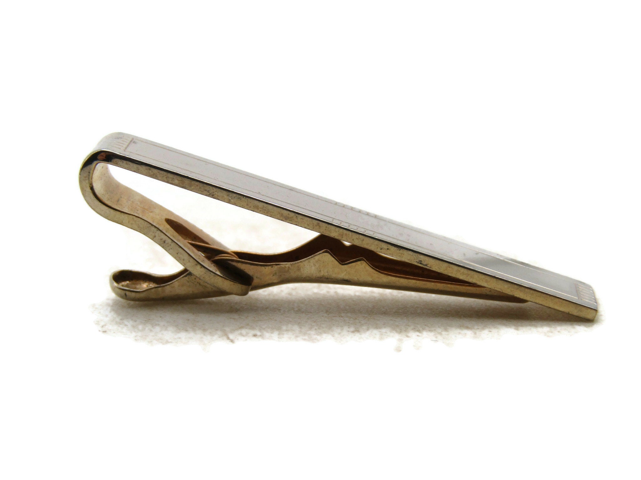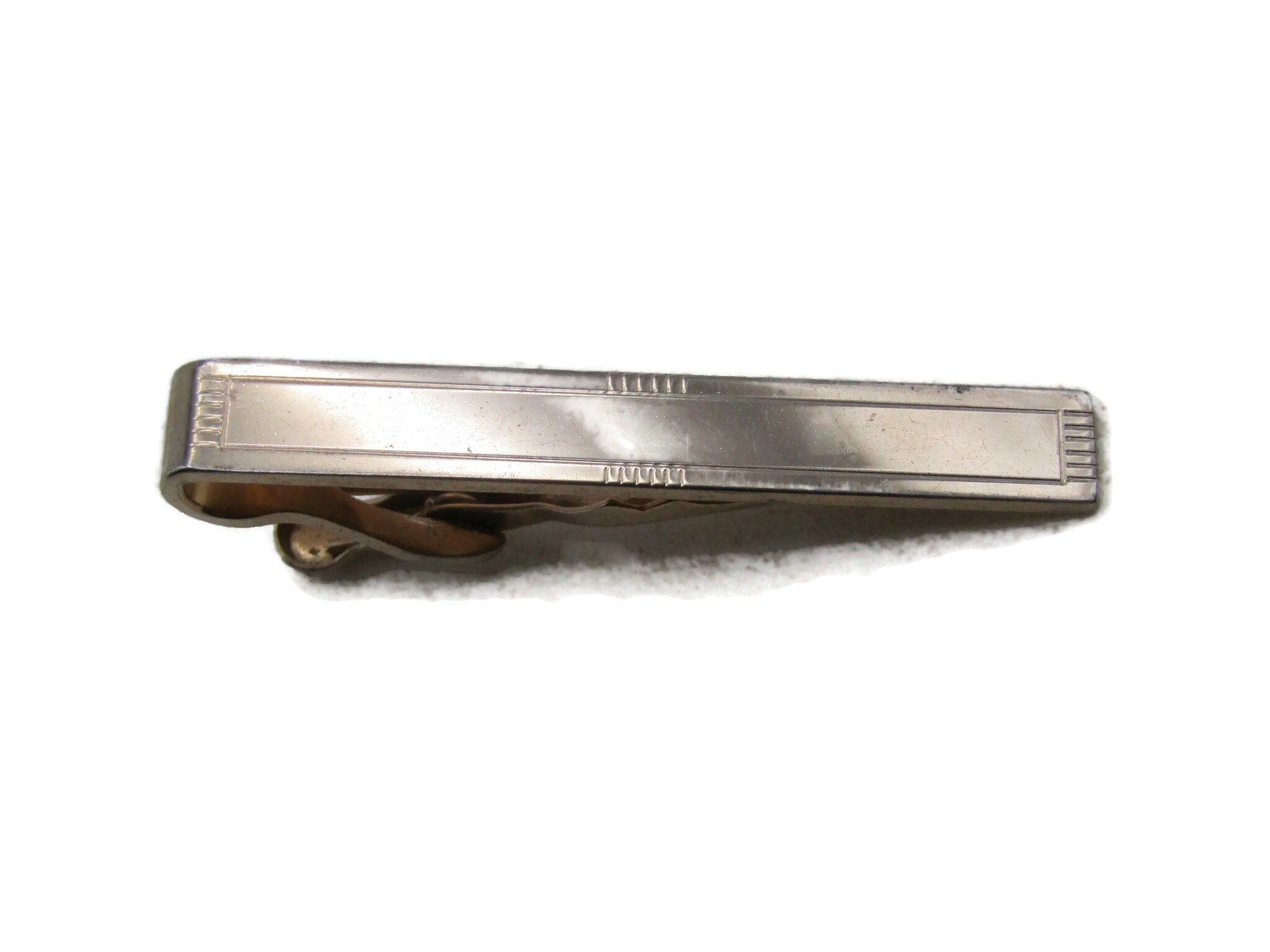 Thin Etched Line Design Tie Clip Modernist Tie Bar Men's Jewelry Gold Tone