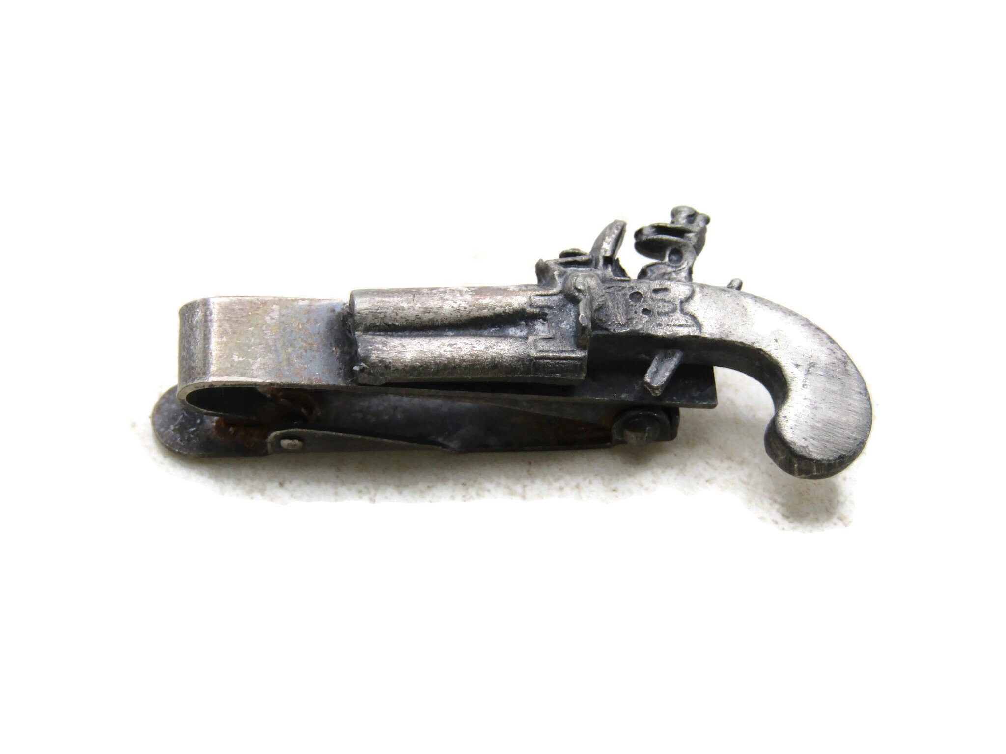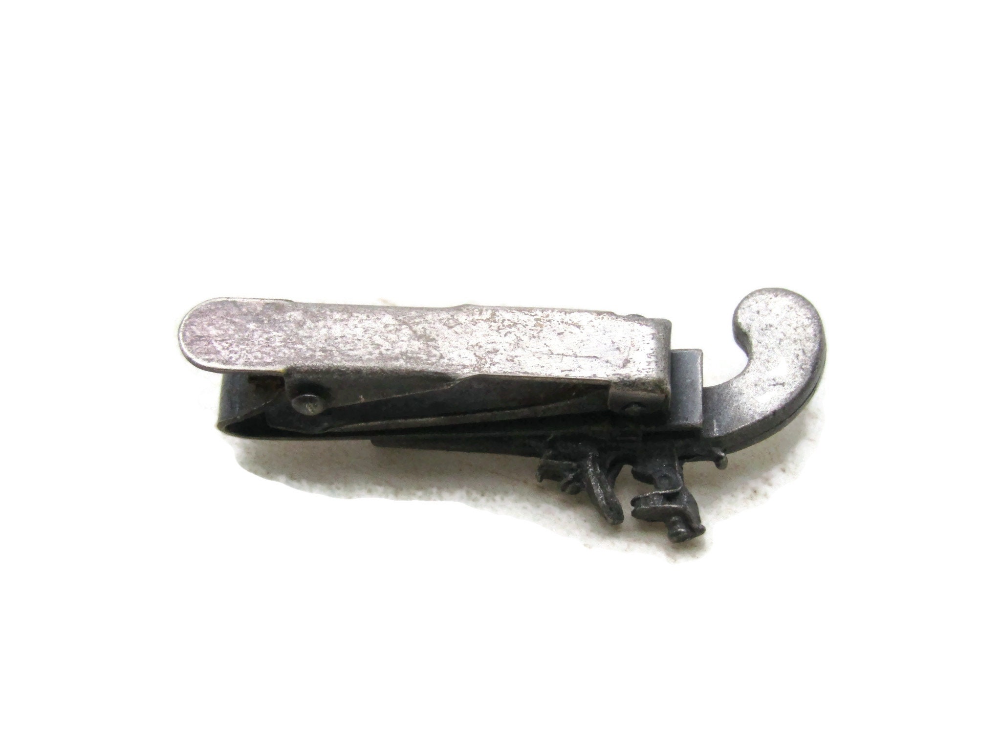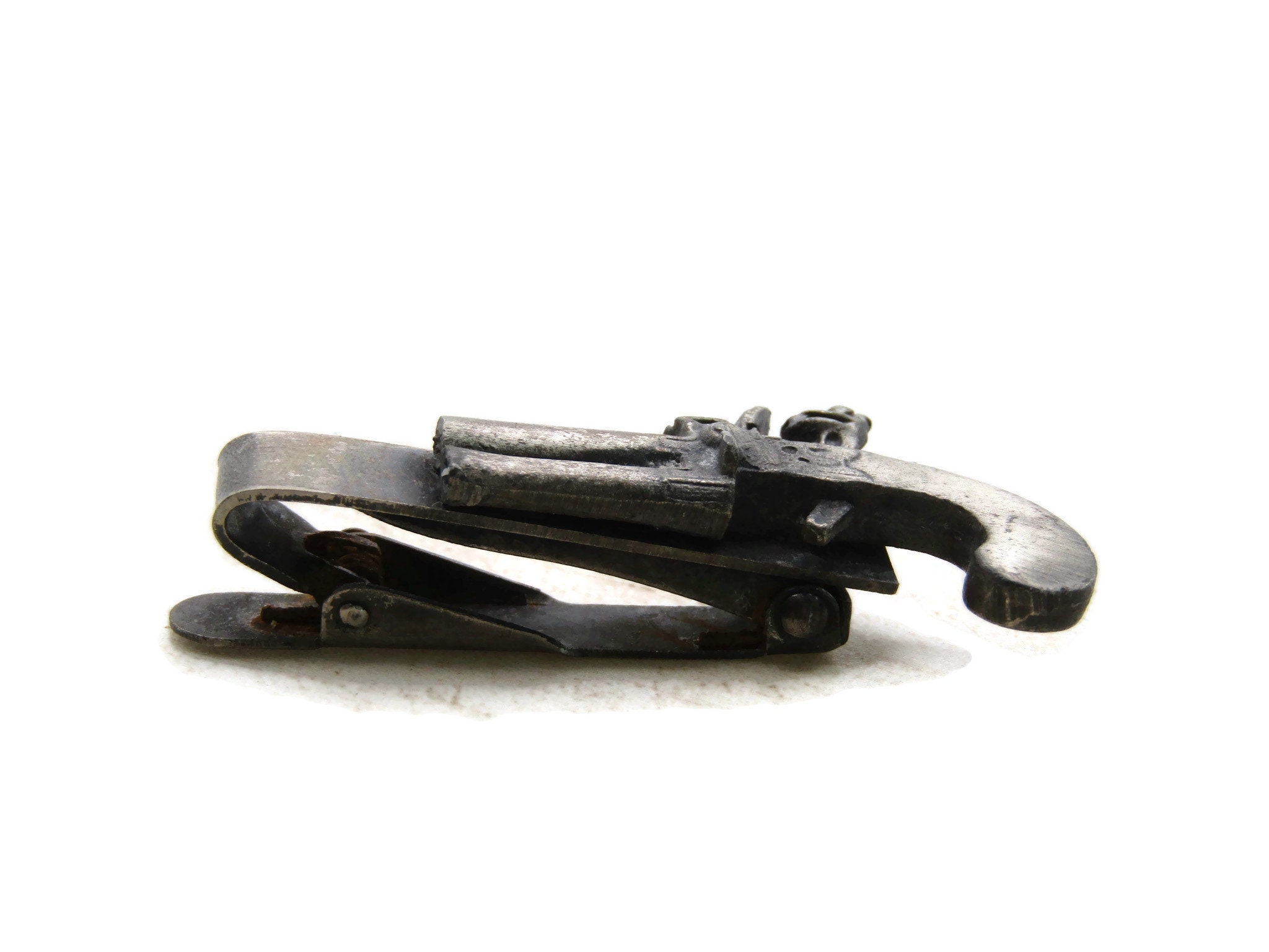 Vintage Pistol Tie Bar Industrial Tie Clip Men's Jewelry Silver Tone