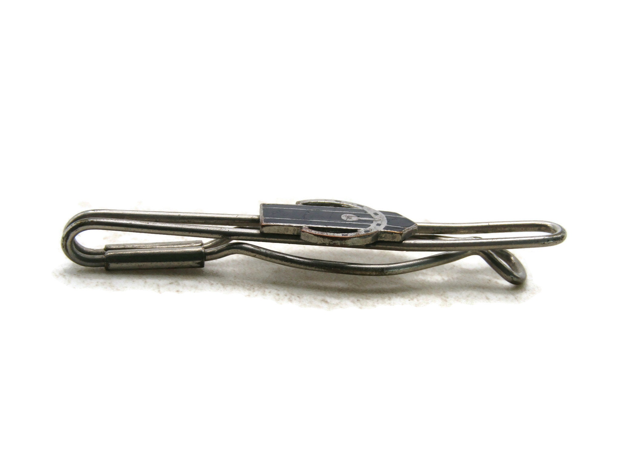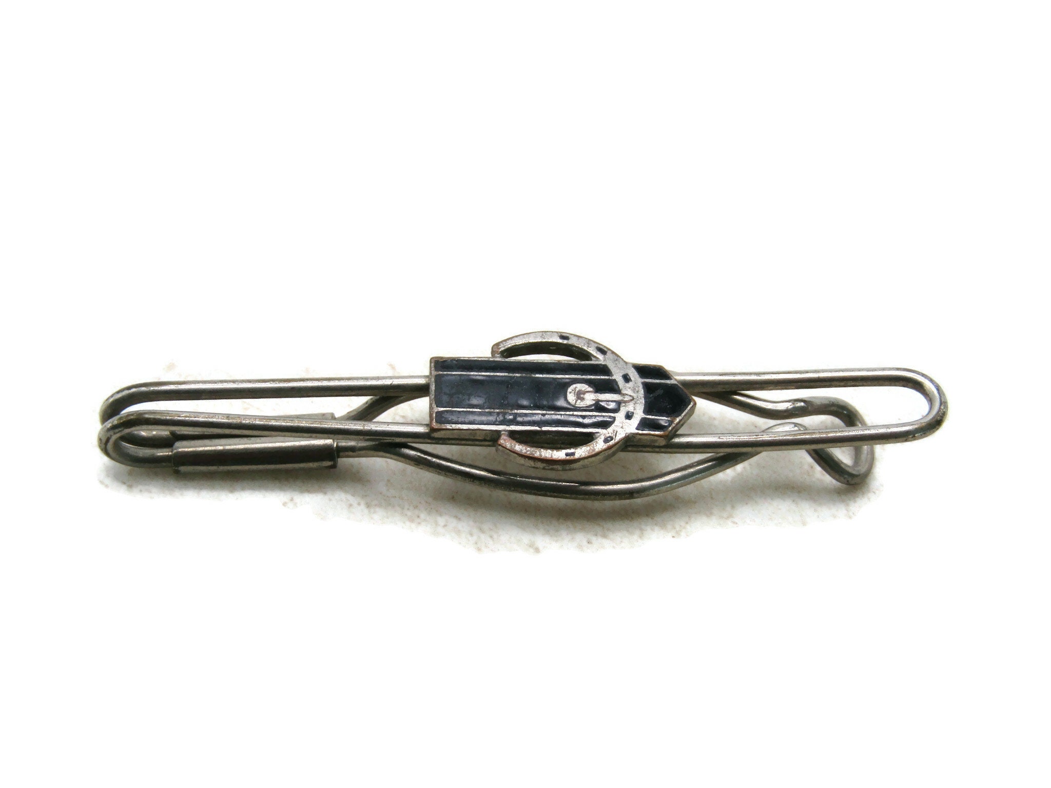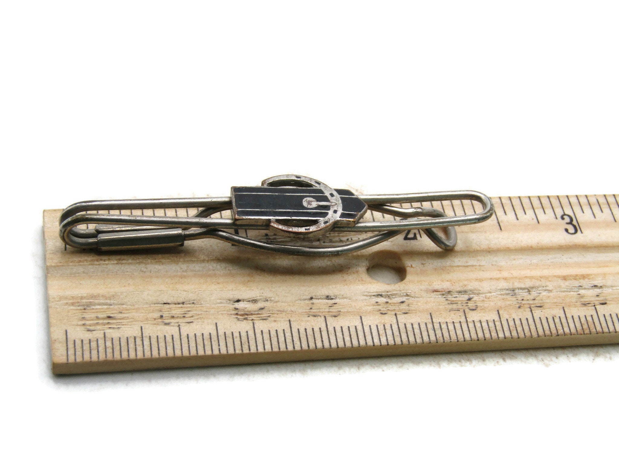 Black Ribbon And Horsehoe Design Tie Clip Tie Bar Men's Jewelry Silver Tone