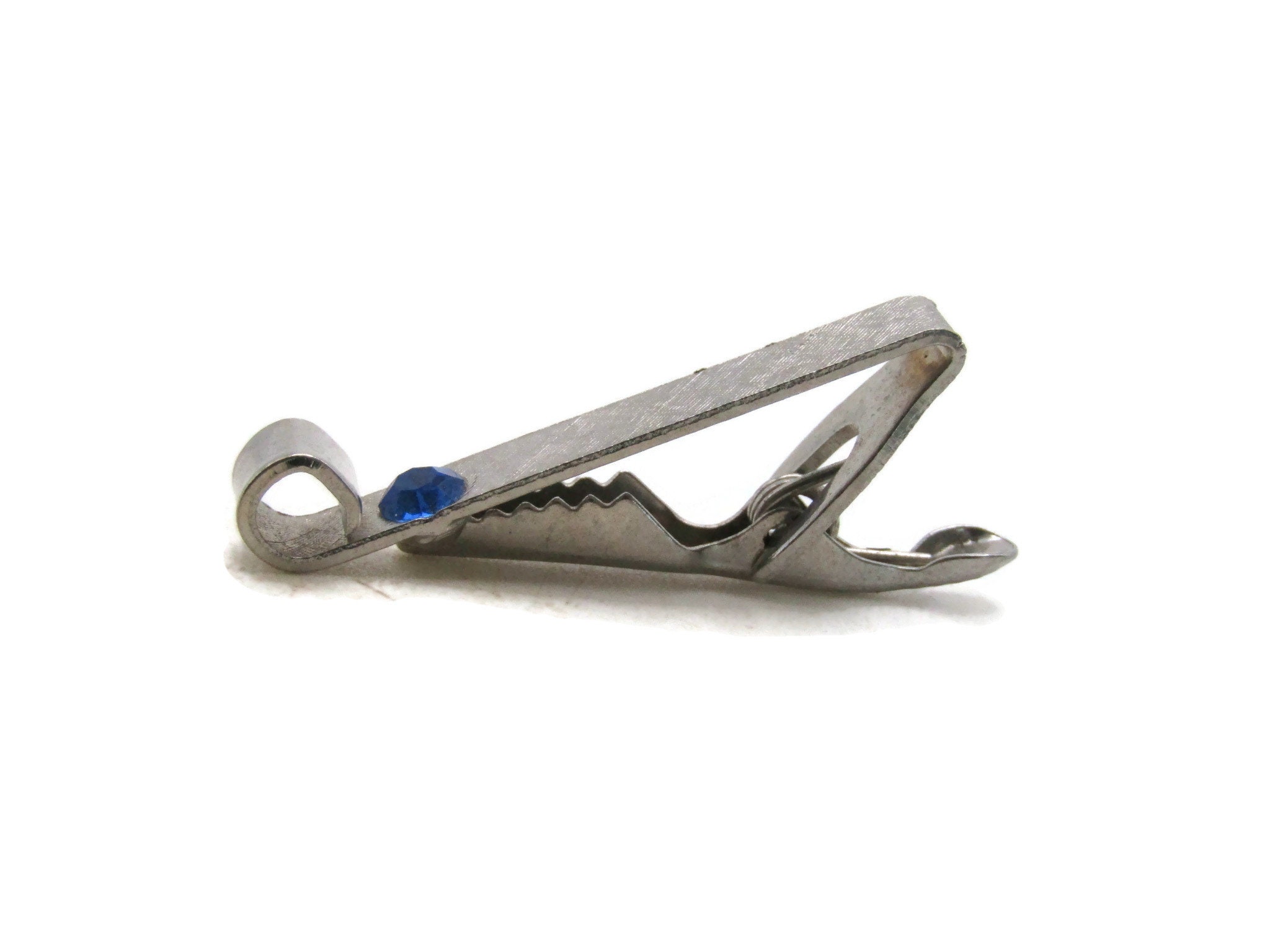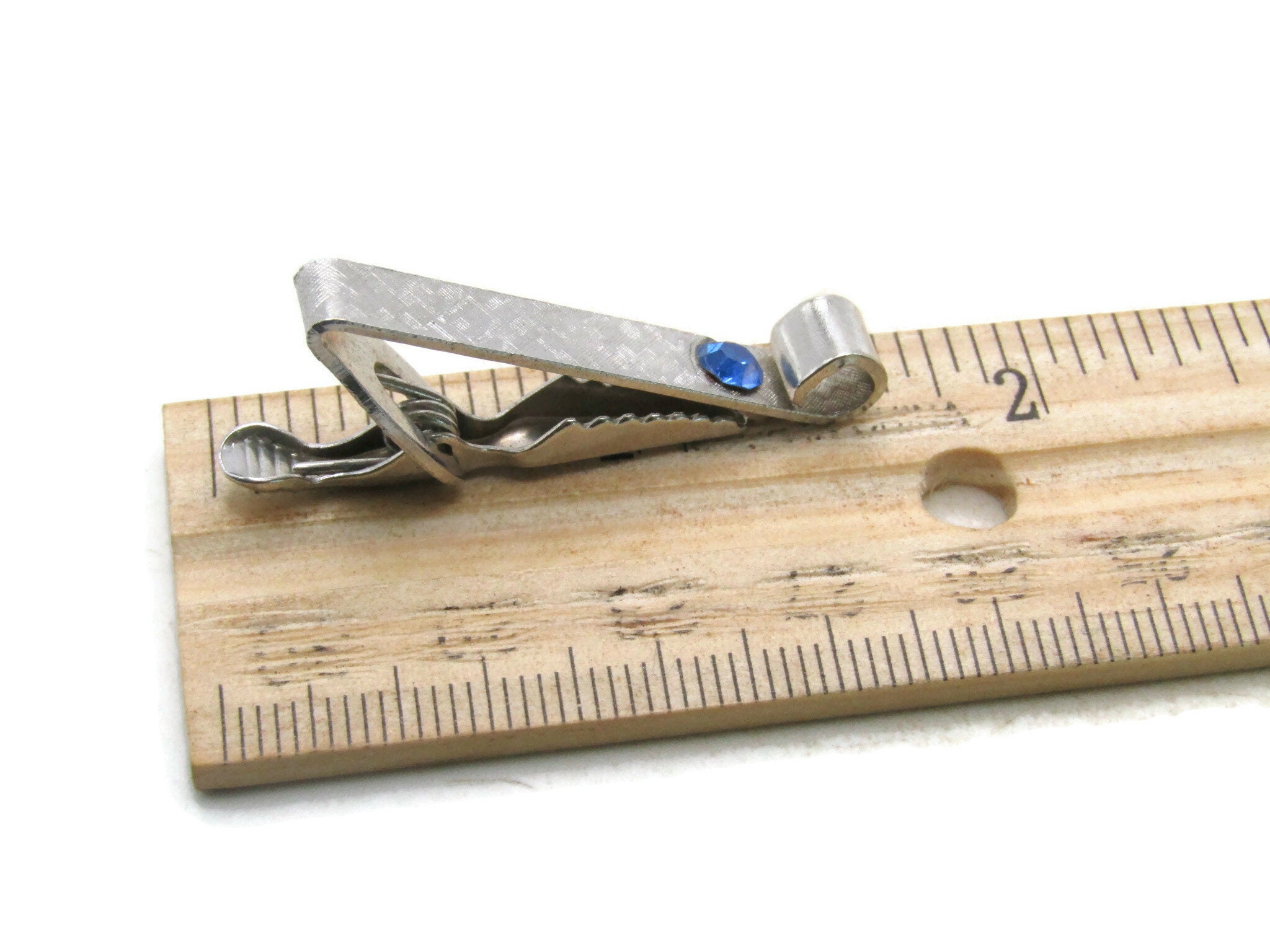 Blue Stone Inlay Curved Edge Brushed Finish Tie Clip Tie Bar Men's Jewelry Silver Tone