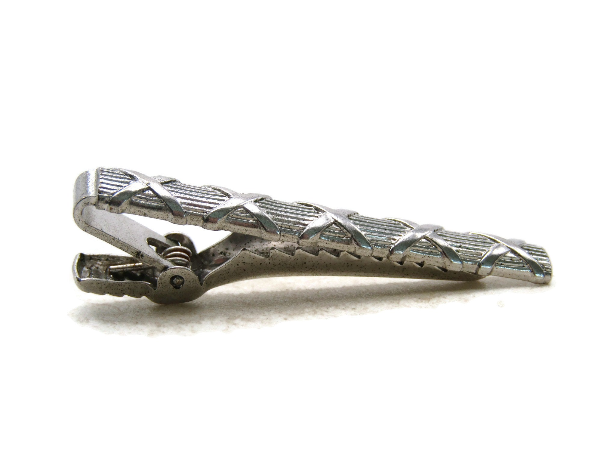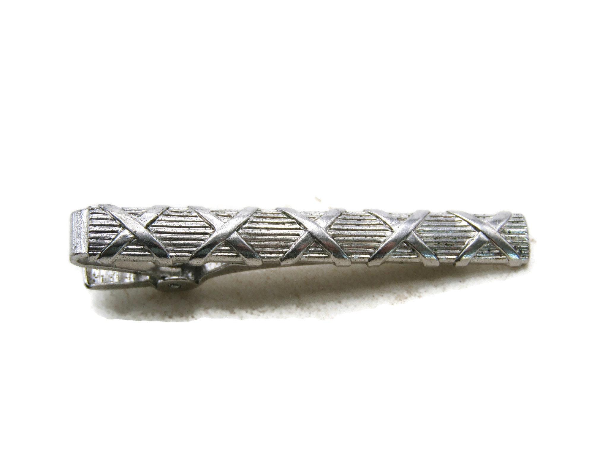 X Pattern And Horizontal Line Design Tie Clip Tie Bar Men's Jewelry Silver Tone