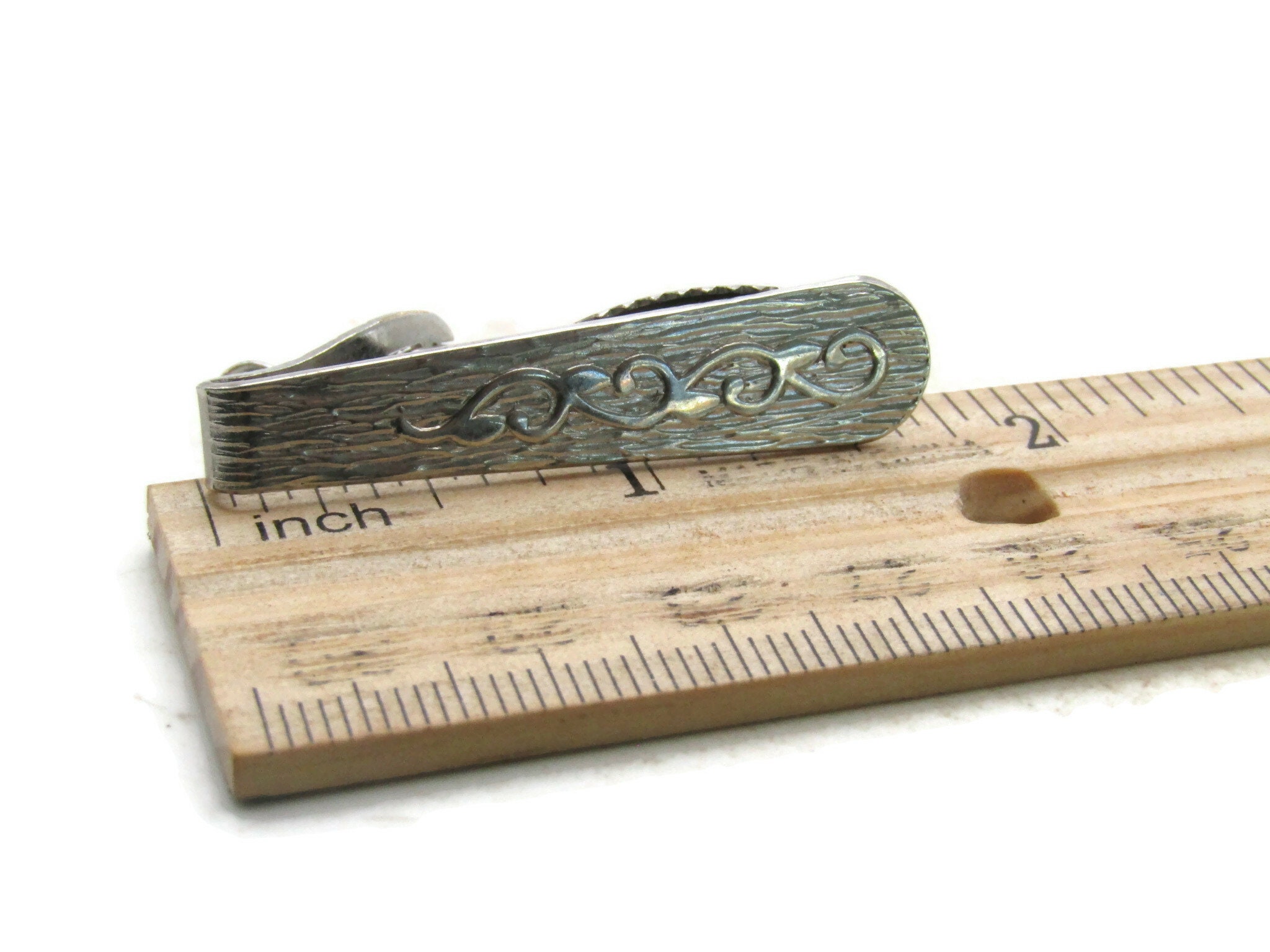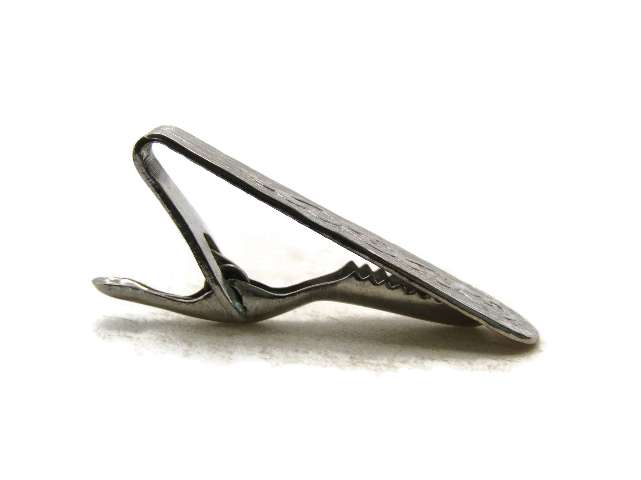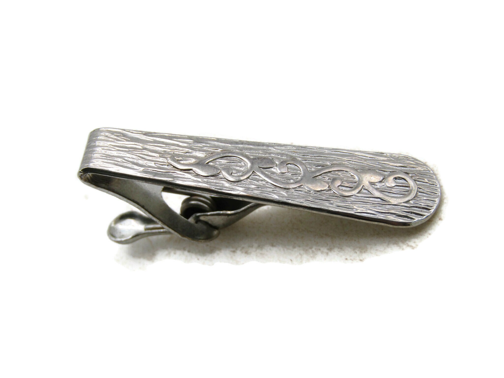 Tapered Tie Clip Decorative Lines Tie Bar Men's Jewelry Silver Tone