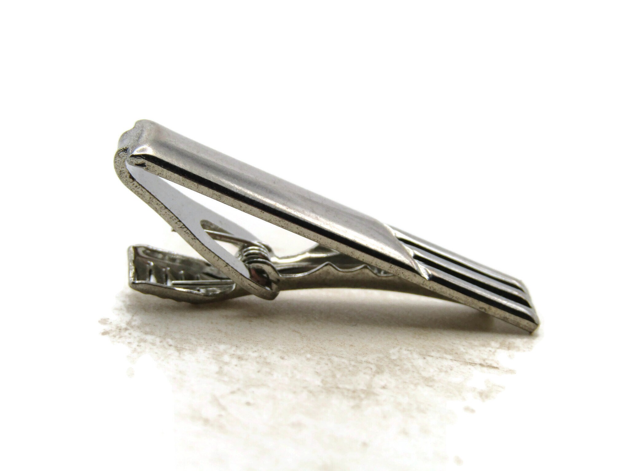 Lined Edge Design Tie Clip Classic Tie Bar Men's Jewelry Silver Tone