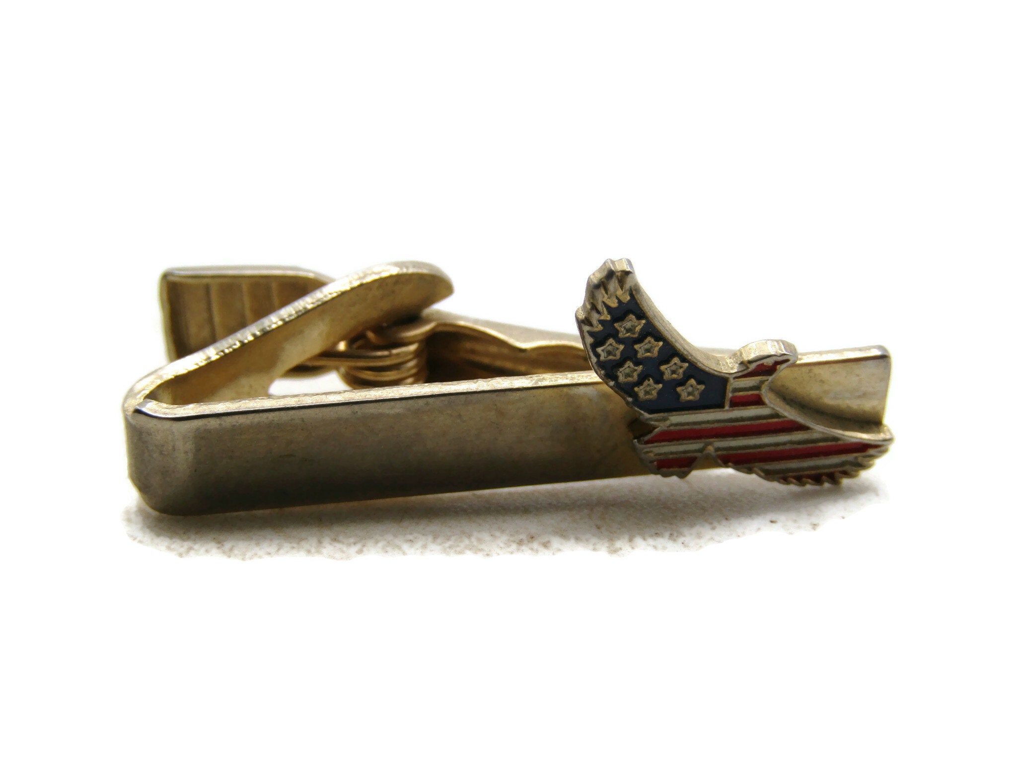 USA Flag Eagle Tie Clip Tie Bar Men's Modern Jewelry Gold Tone