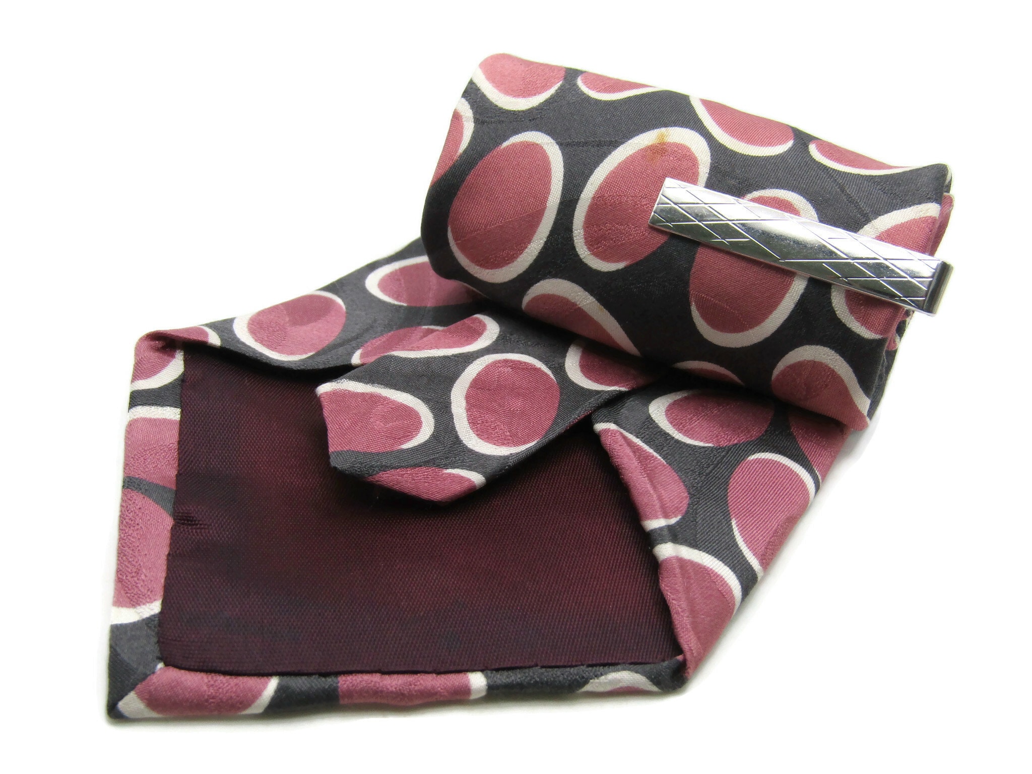 Pink Dots Grey And White Tie With Diamond Hatched Tie Clip Tie Bar Silver Tone