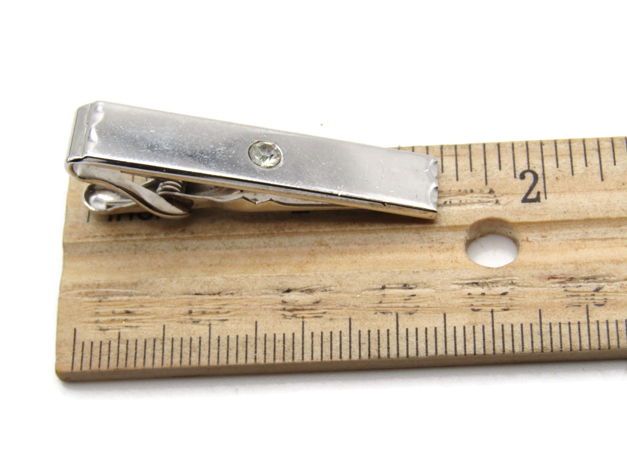 Rhinestone Inlay Modernist Tie Clip Tie Bar Men's Jewelry Silver Tone