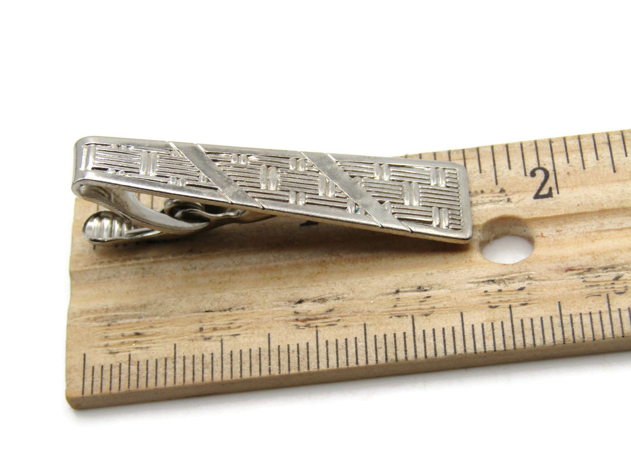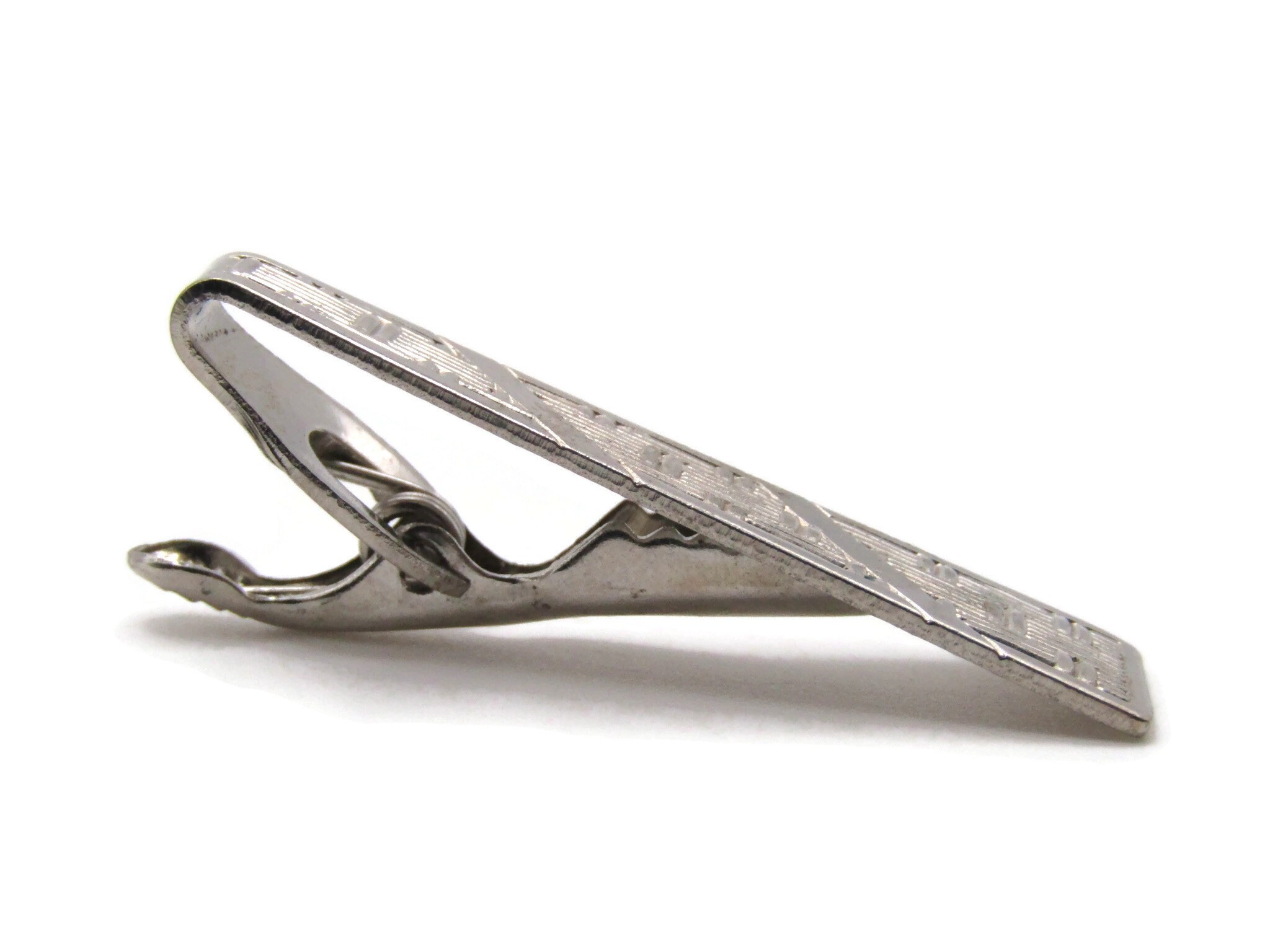Tapered And Geometric Line Pattern Tie Clip Tie Bar Men's Jewelry Silver Tone
