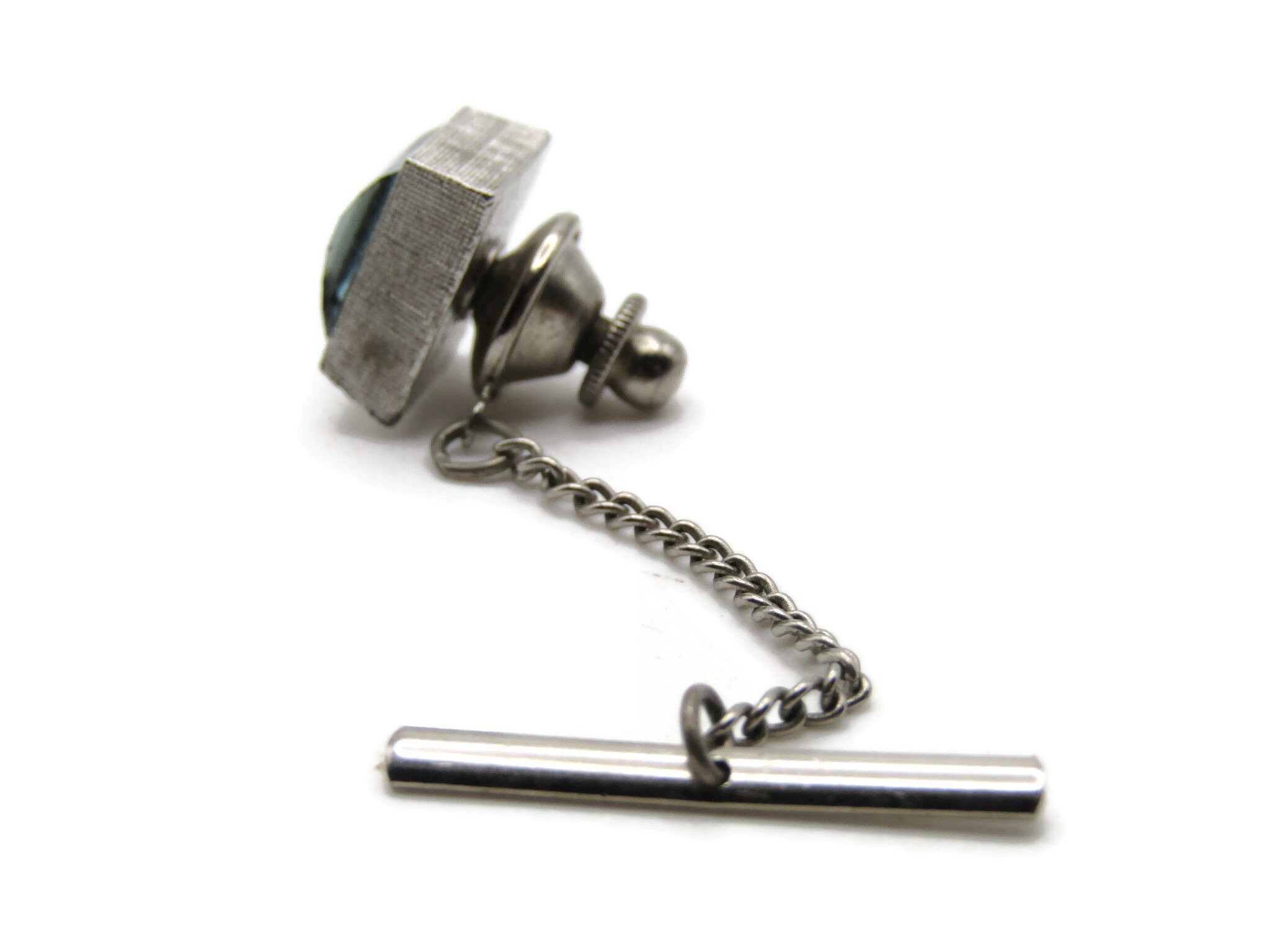 Light Blue Rectangle Stone Tie Pin And Chain Men's Jewelry Silver Tone