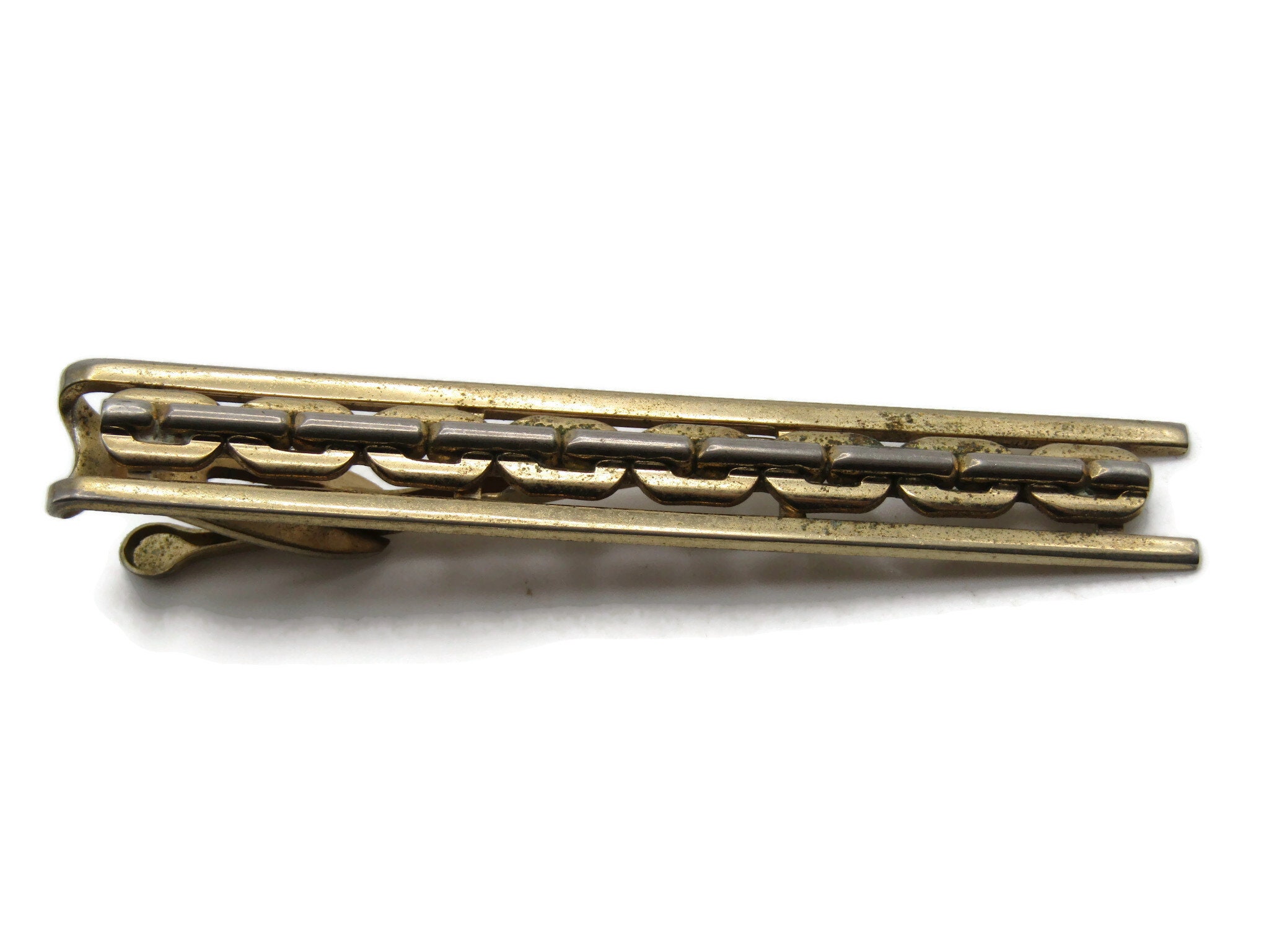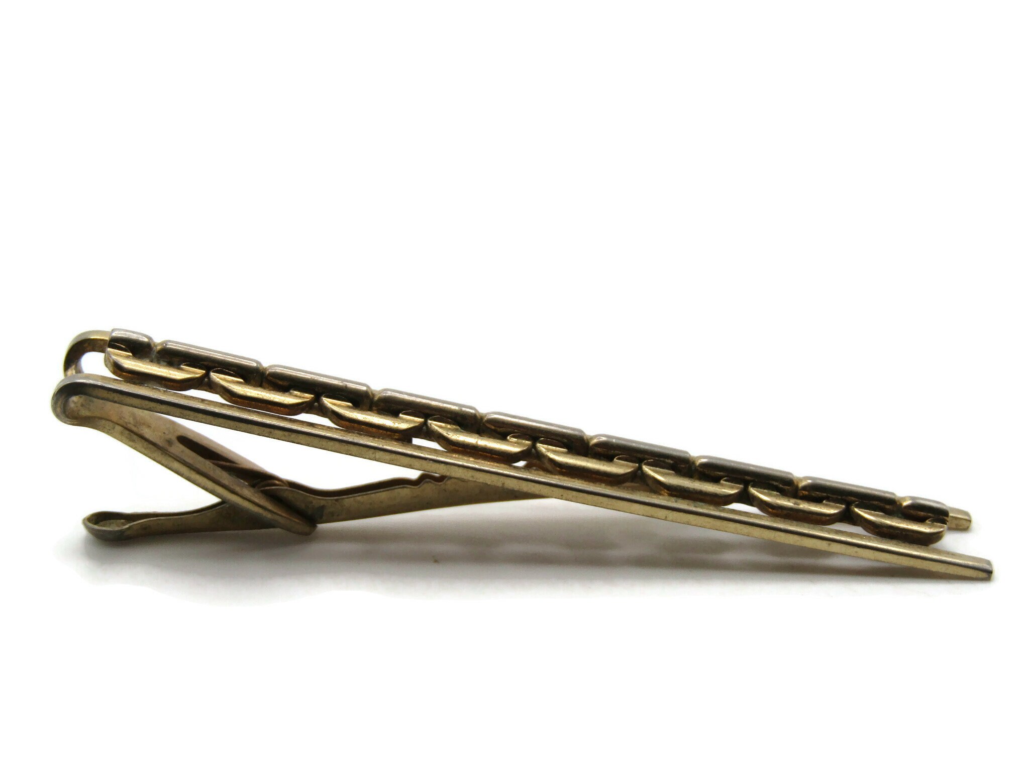 Chain Center Tie Clip Tie Bar Industrial Men's Jewelry Gold Tone