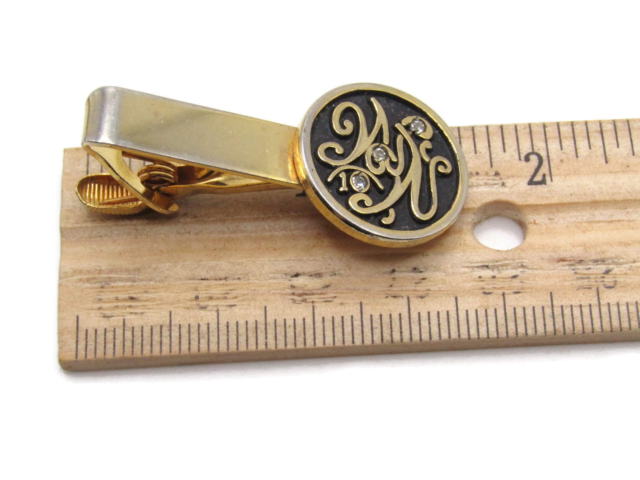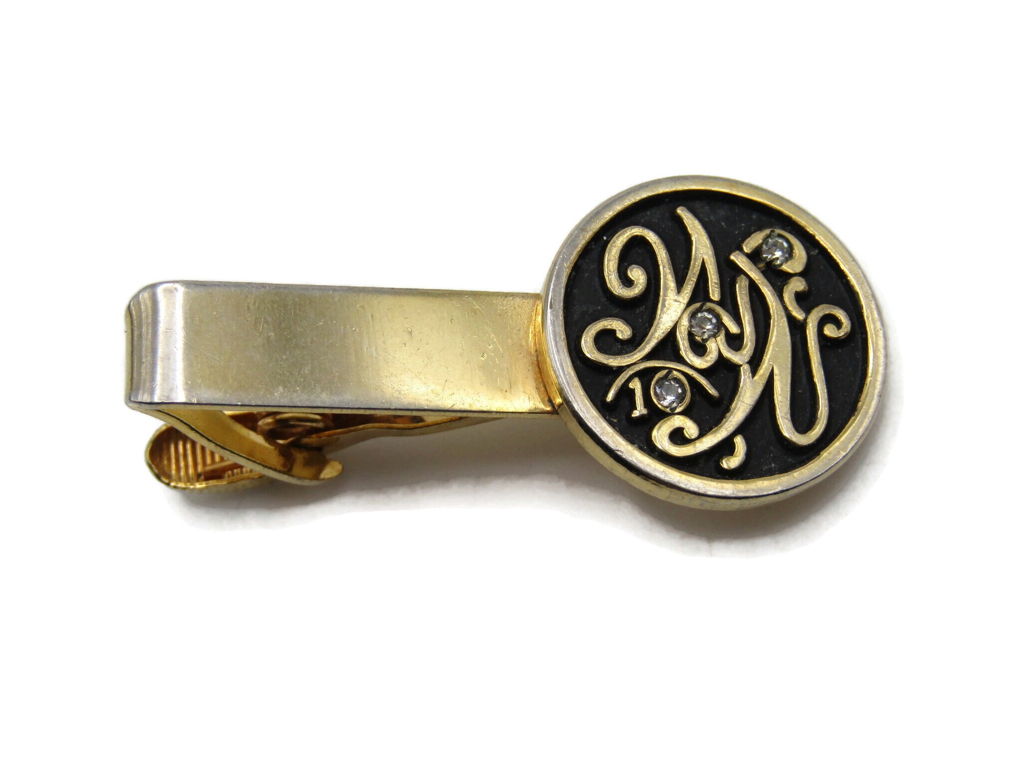 MW 10 Lettered Rhinestone Inlay Tie Clip Tie Bar Men's Jewelry Gold Tone