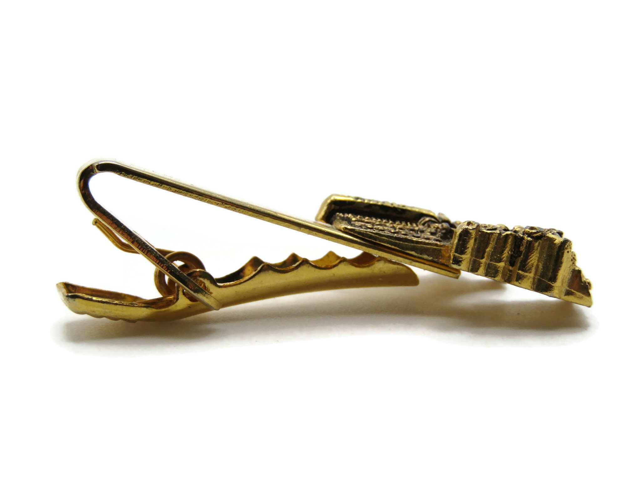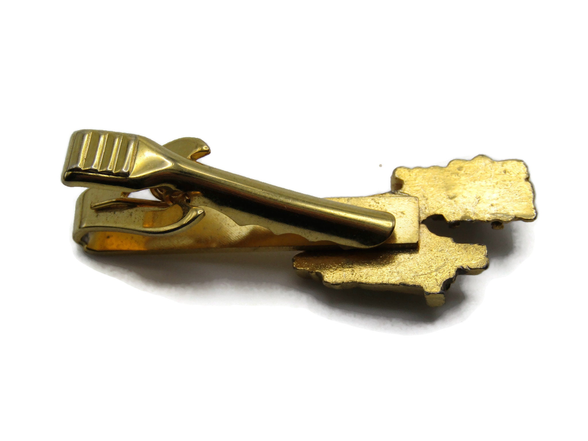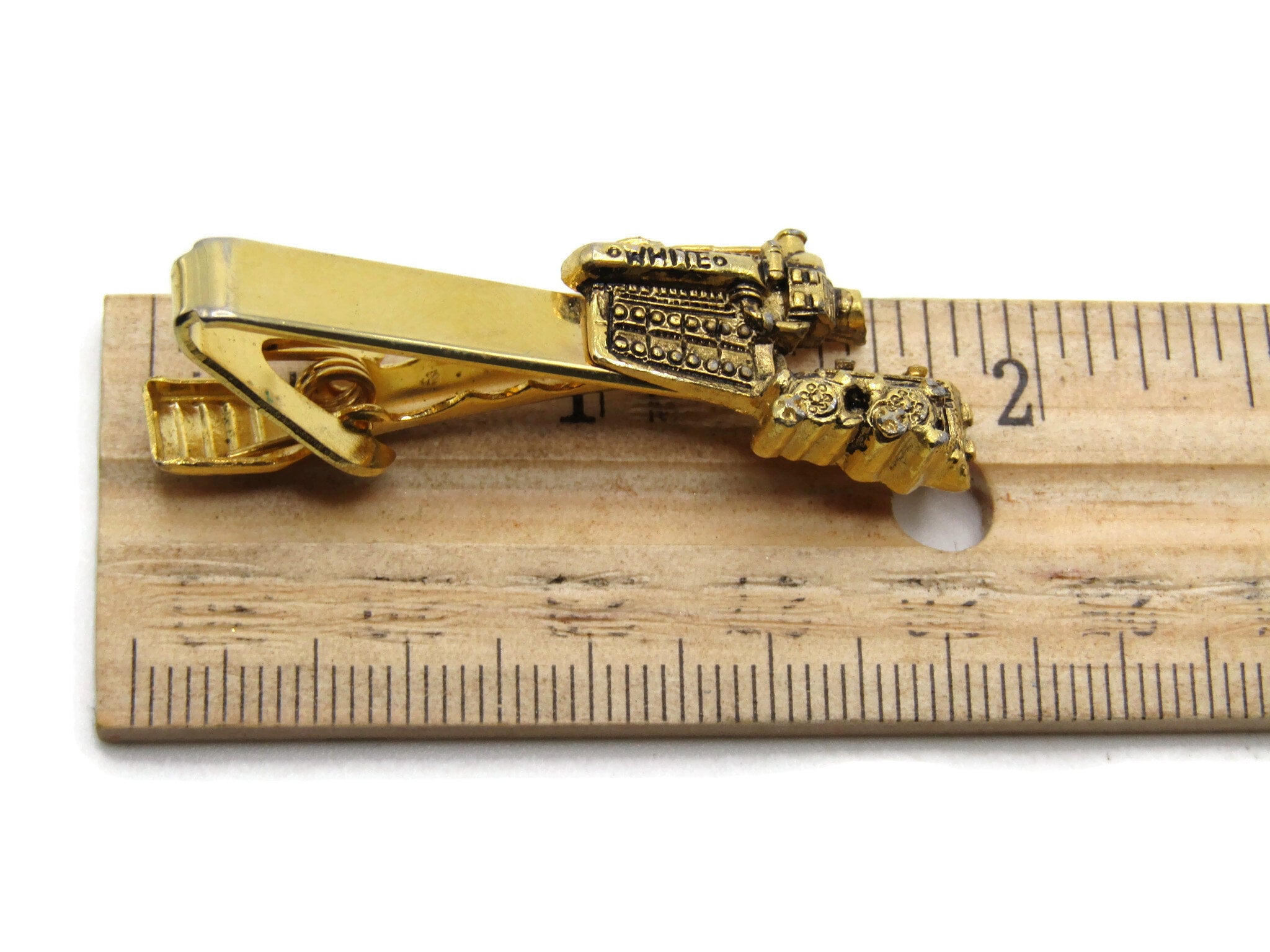 White Lettered Machine Tie Clip Tie Bar Men's Jewelry Gold Tone