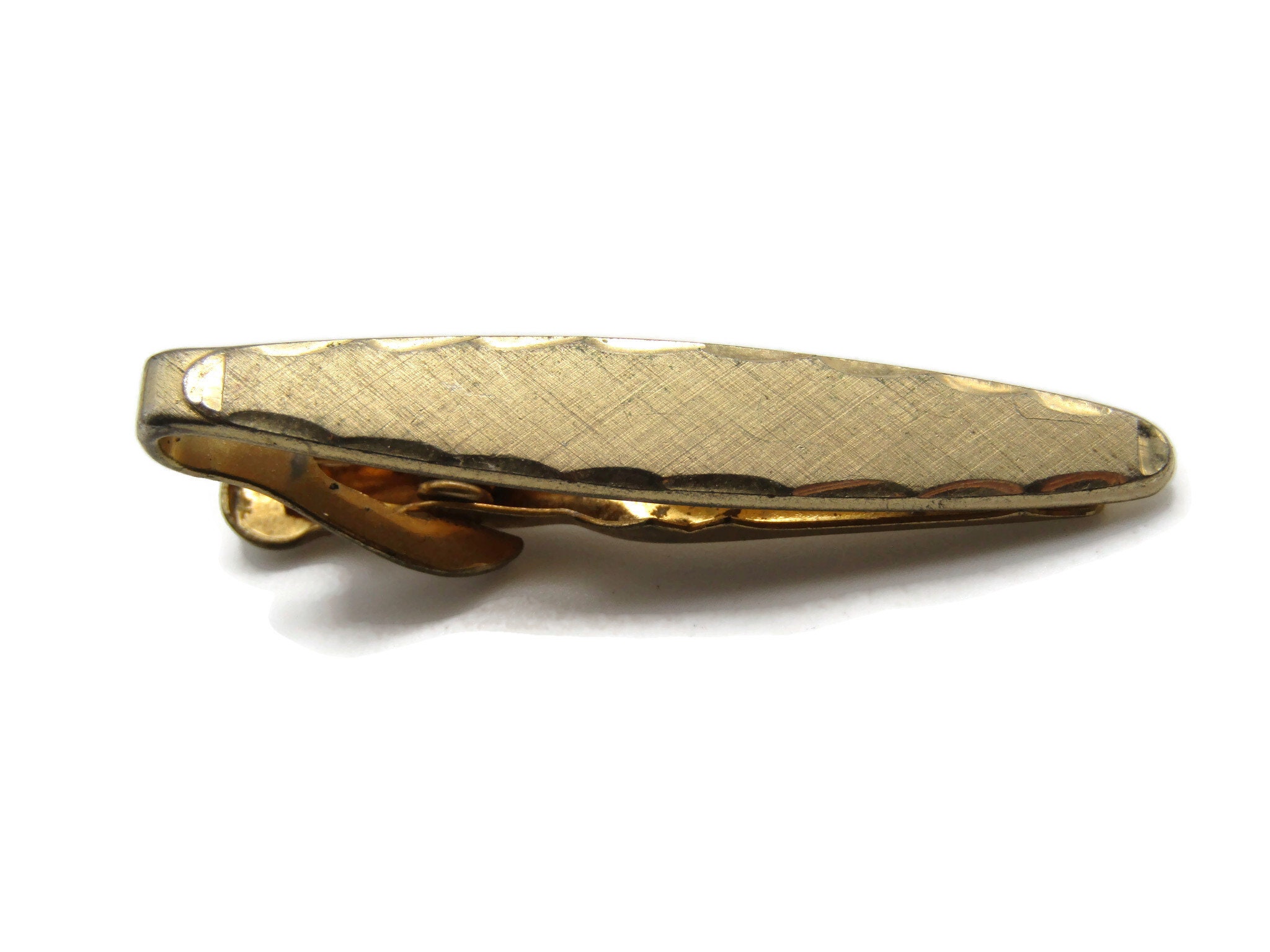 Oval Beveled And Brushed Finish Tie Clip Modernist Tie Bar Me's Jewelry Gold Tone