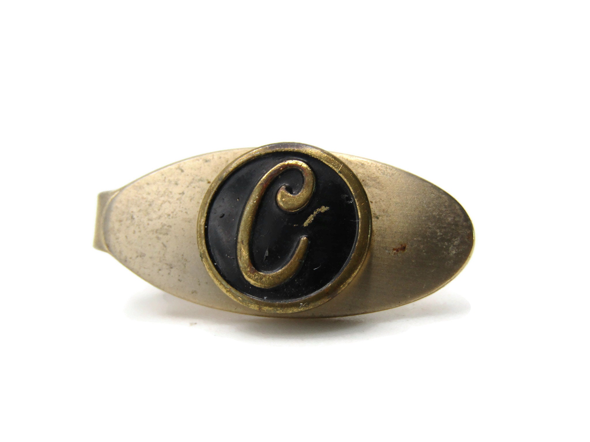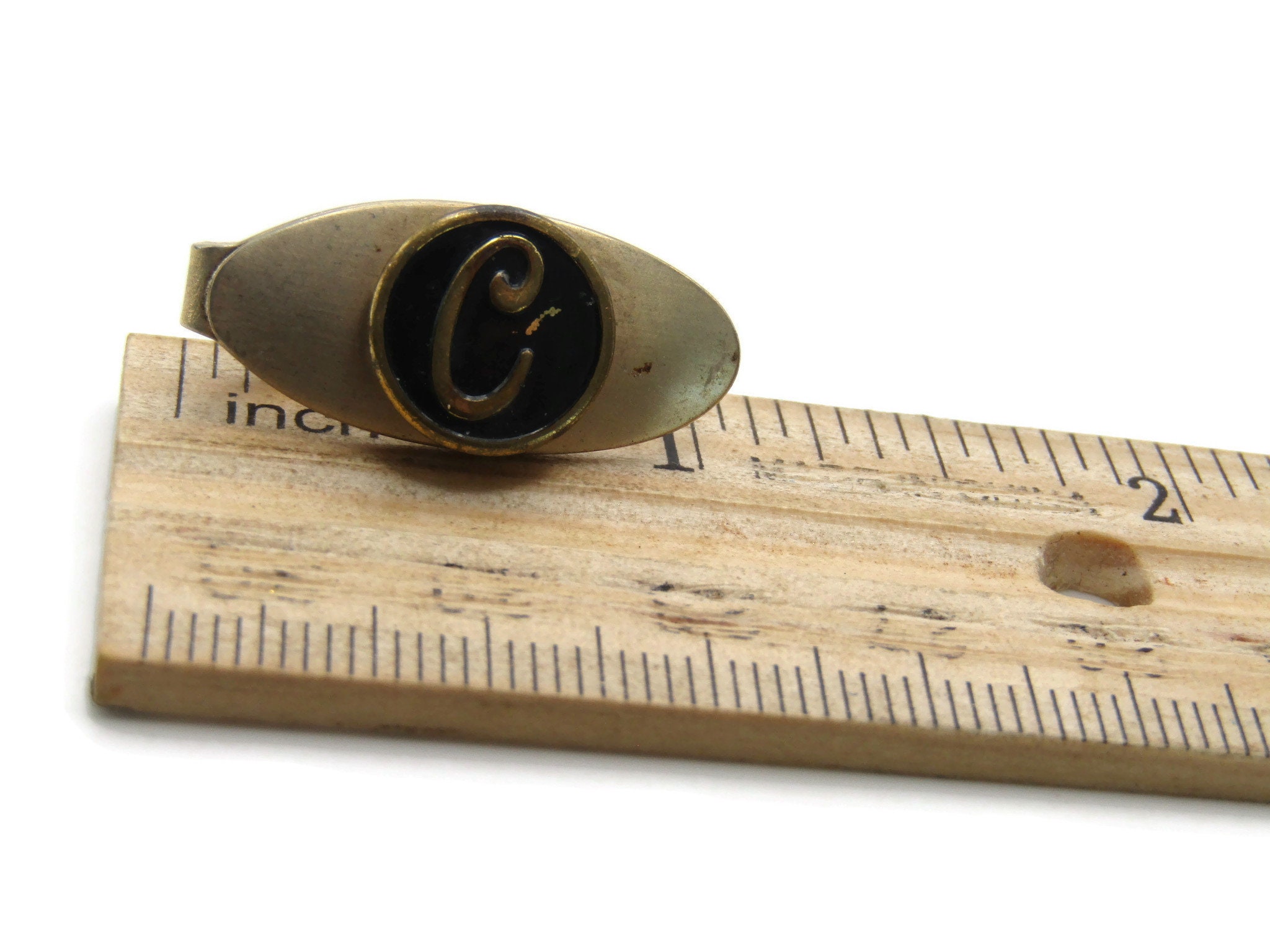 Oval C Letter Initial Monogram Tie Clip Tie Bar Men's Jewelry Gold Tone