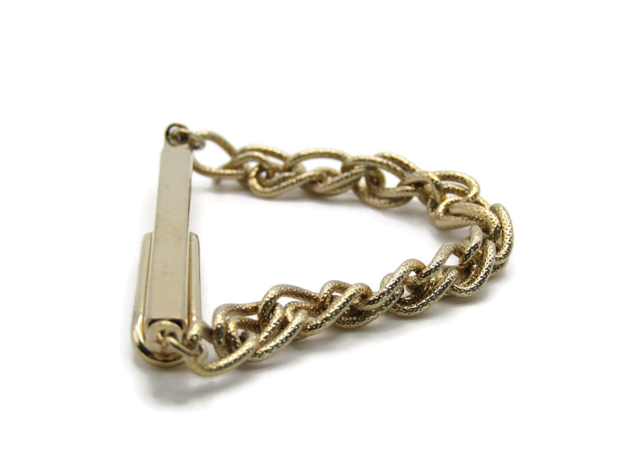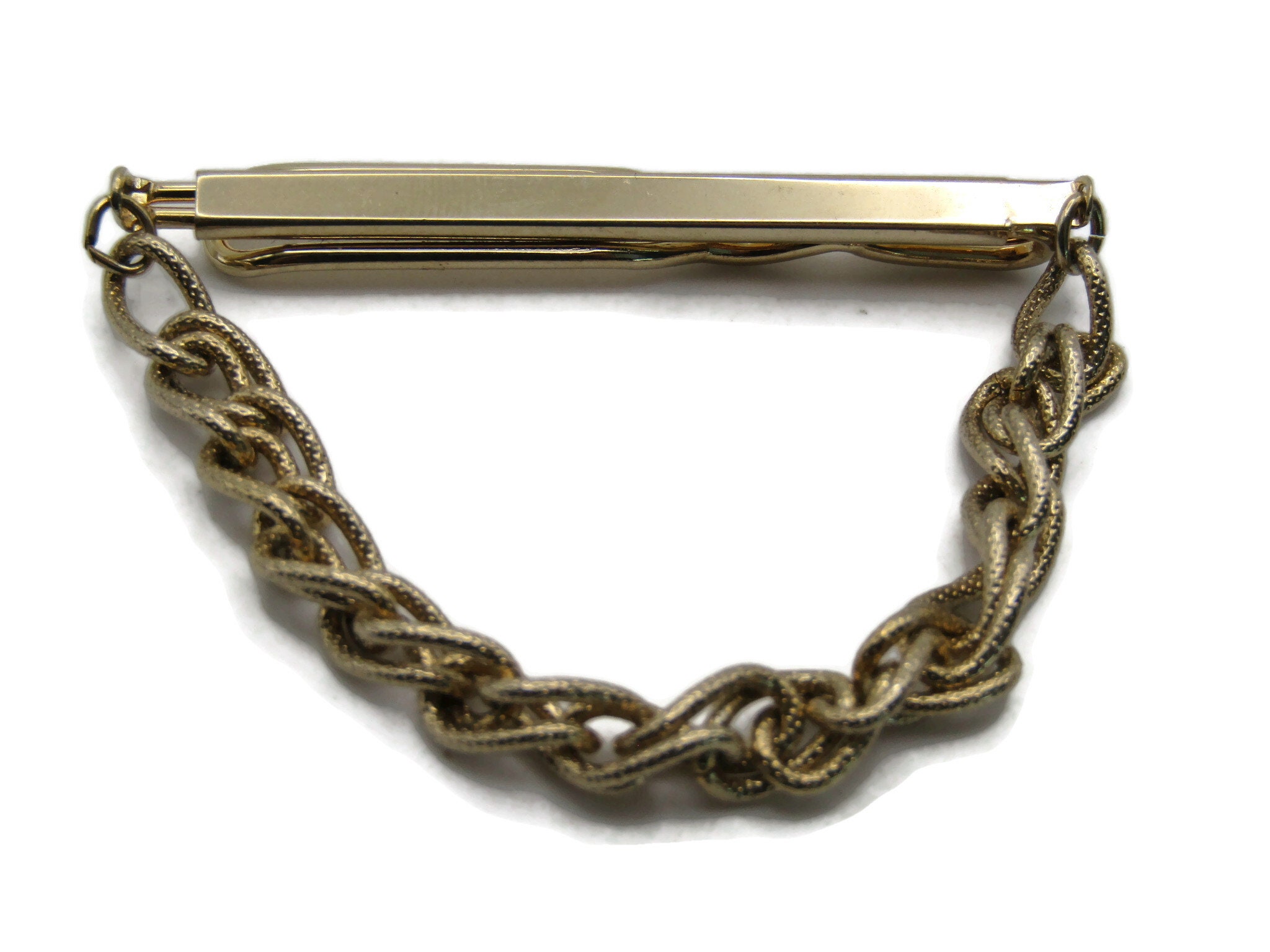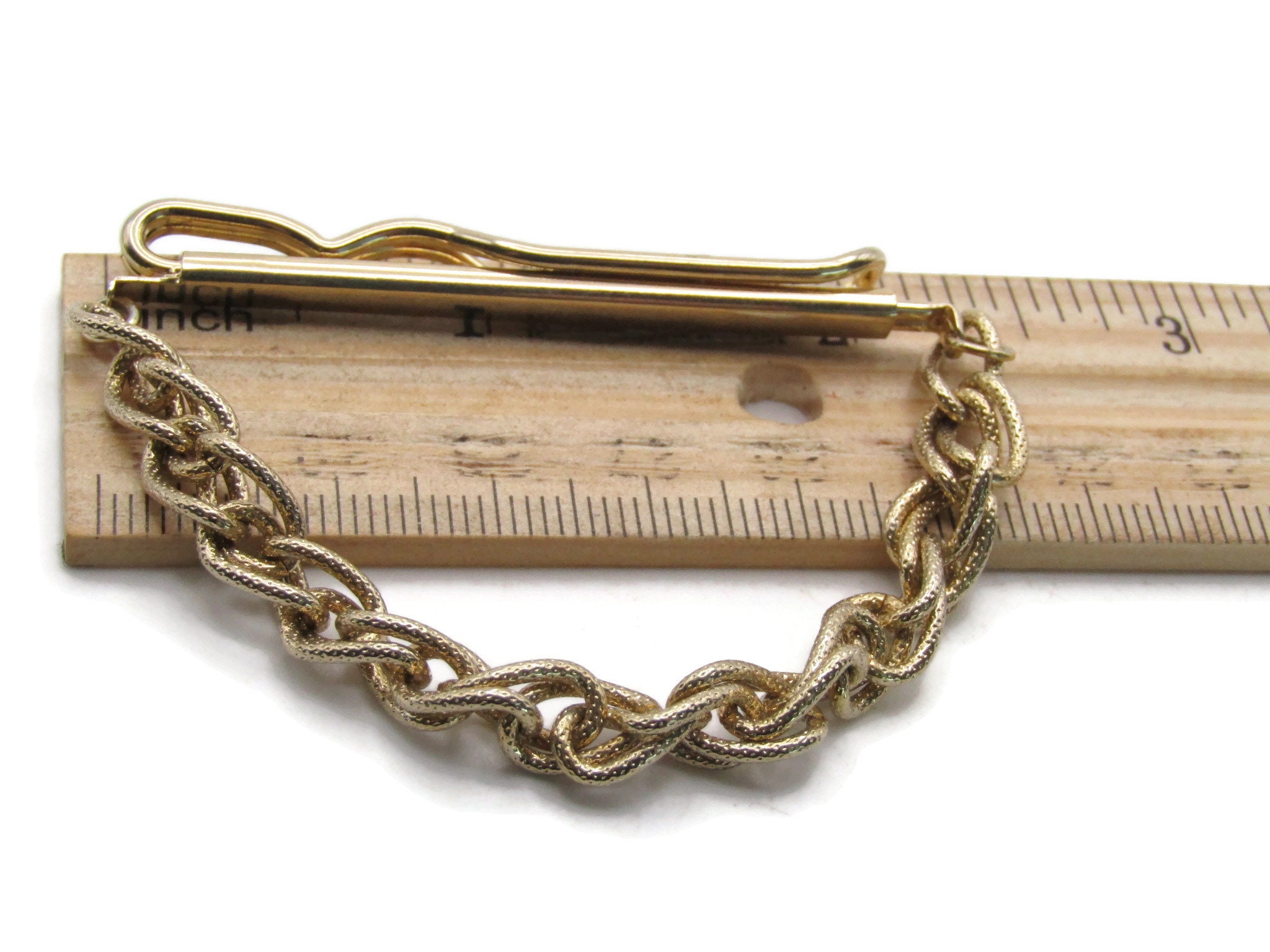 Smooth Finish Tie Bar And Chain Tie Clip Men's Jewelry Gold Tone