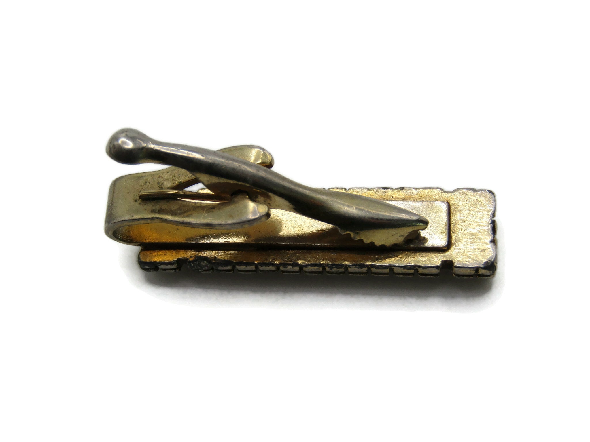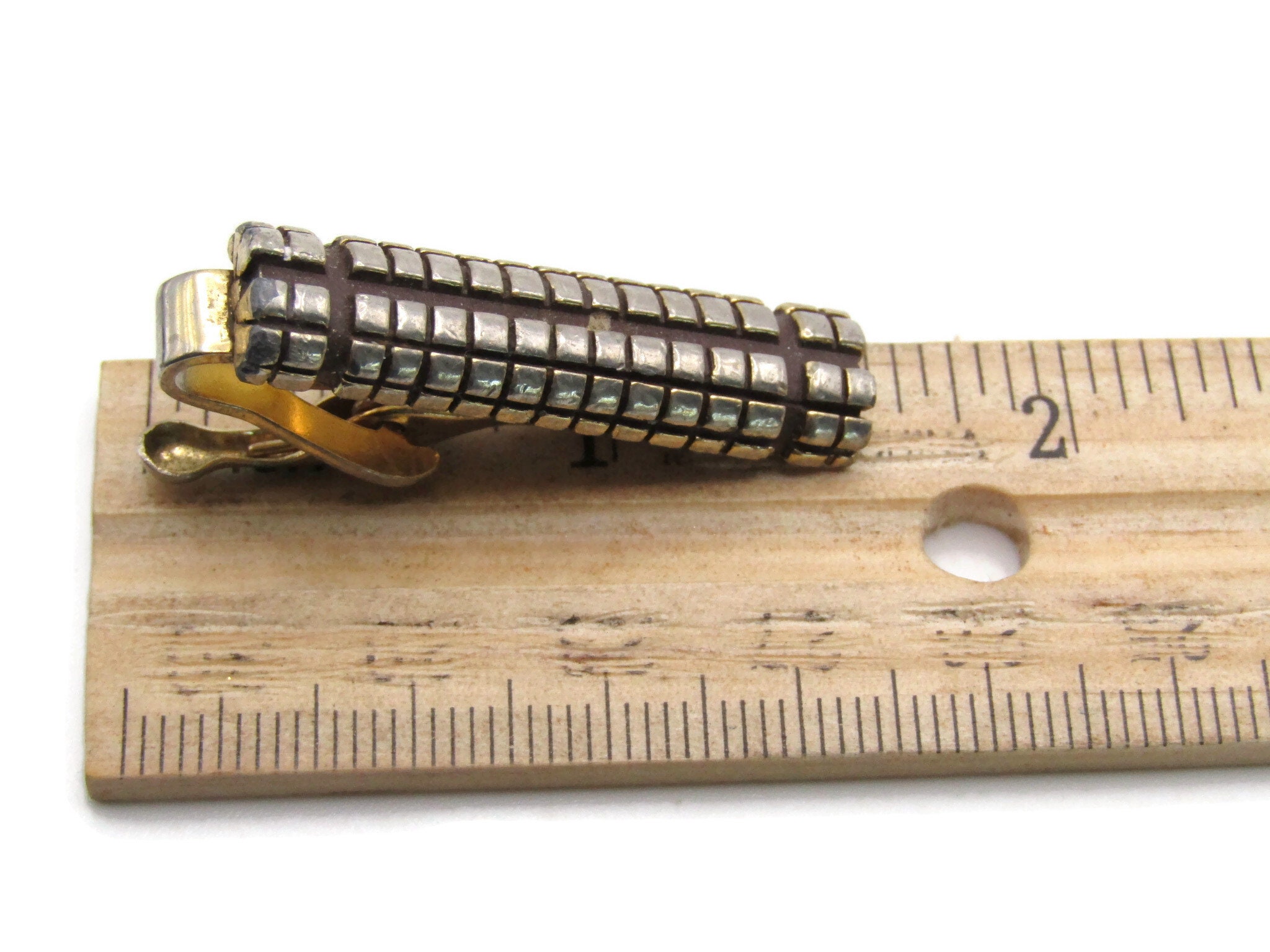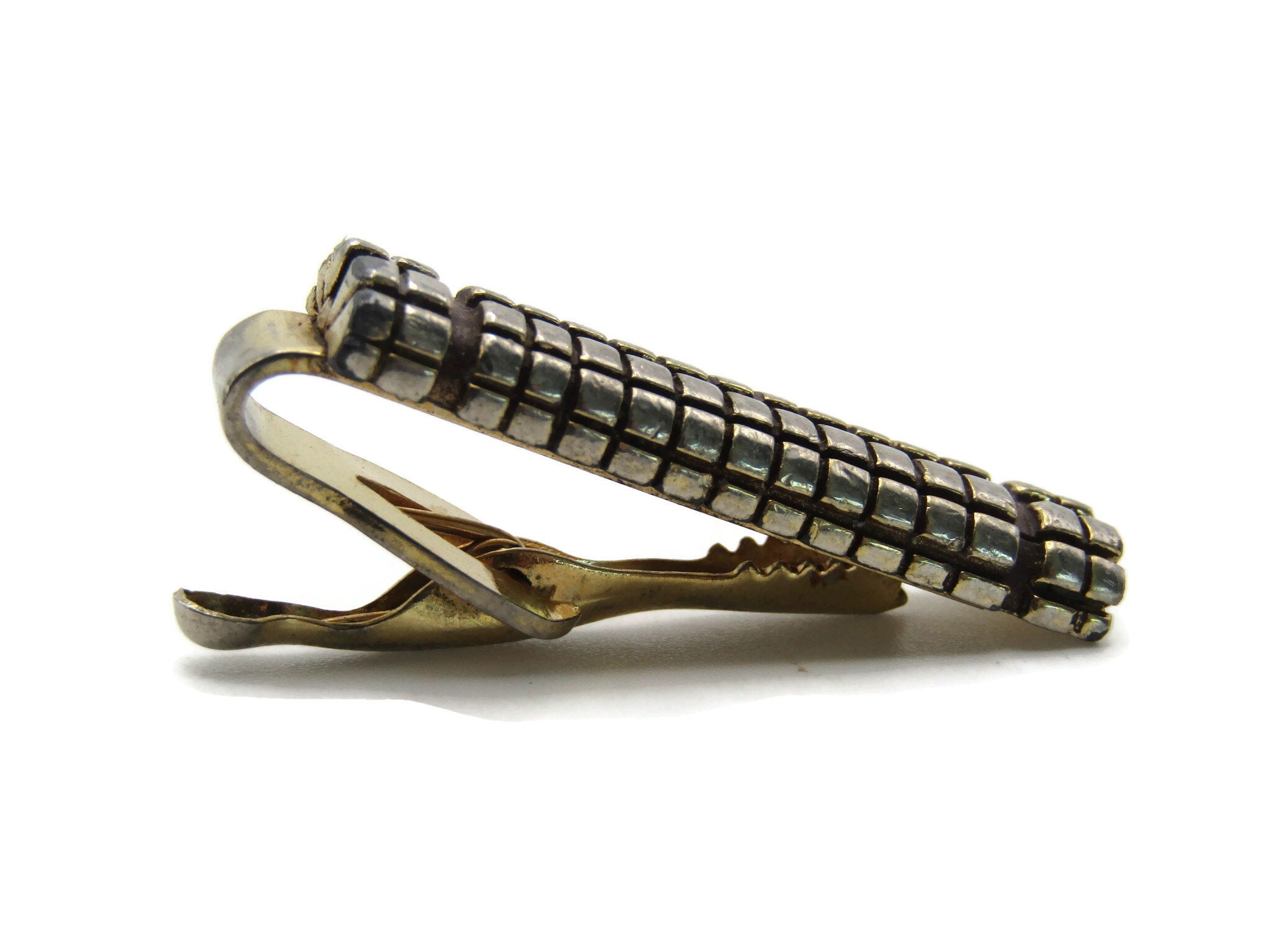 Textured Square Pattern Tie Clip Tie Bar Men's Jewelry Silver And Gold Tone