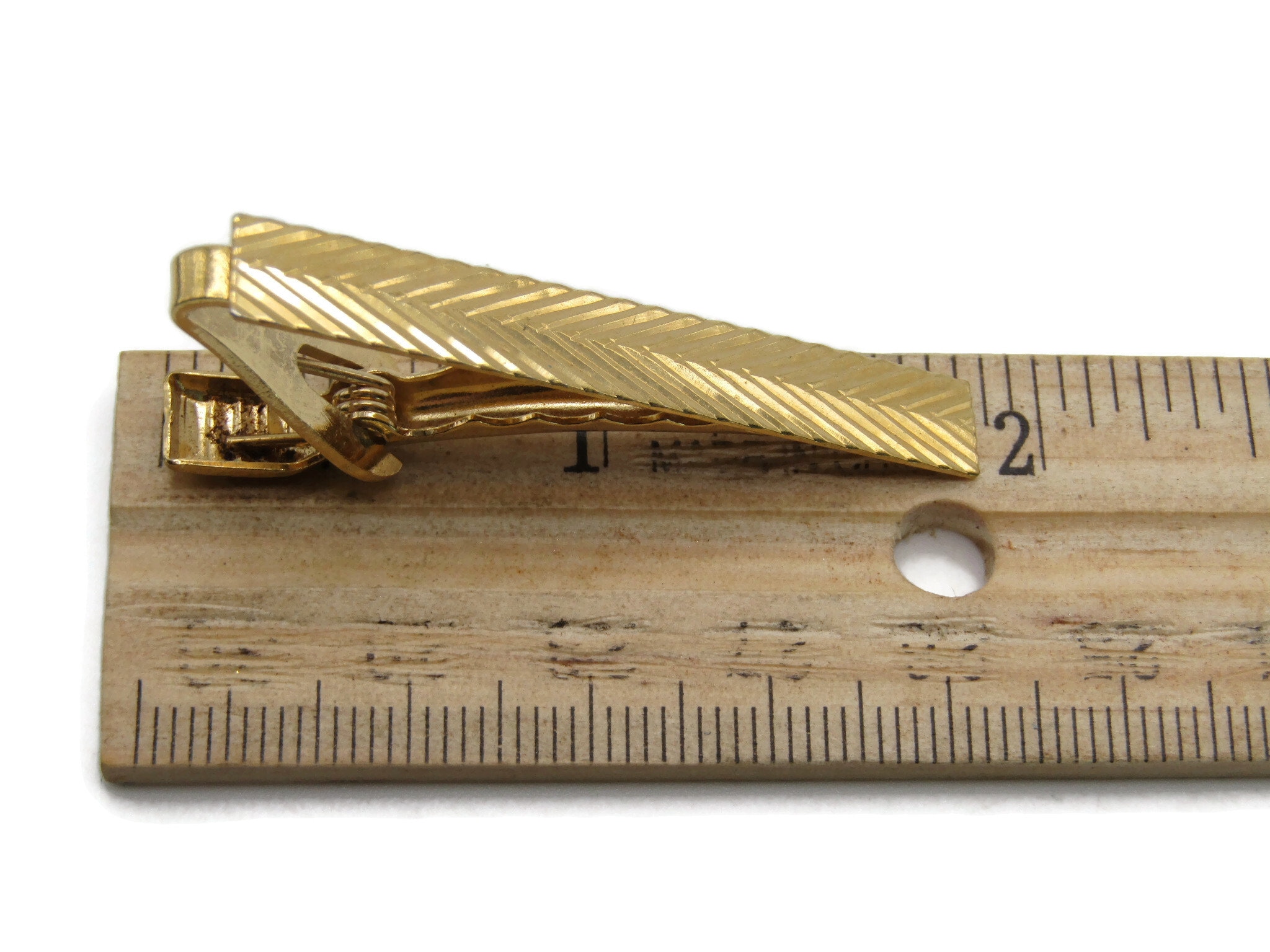 Diagonal Line Pattern Tie Bar Tie Clip Men's Jewelry Gold Tone