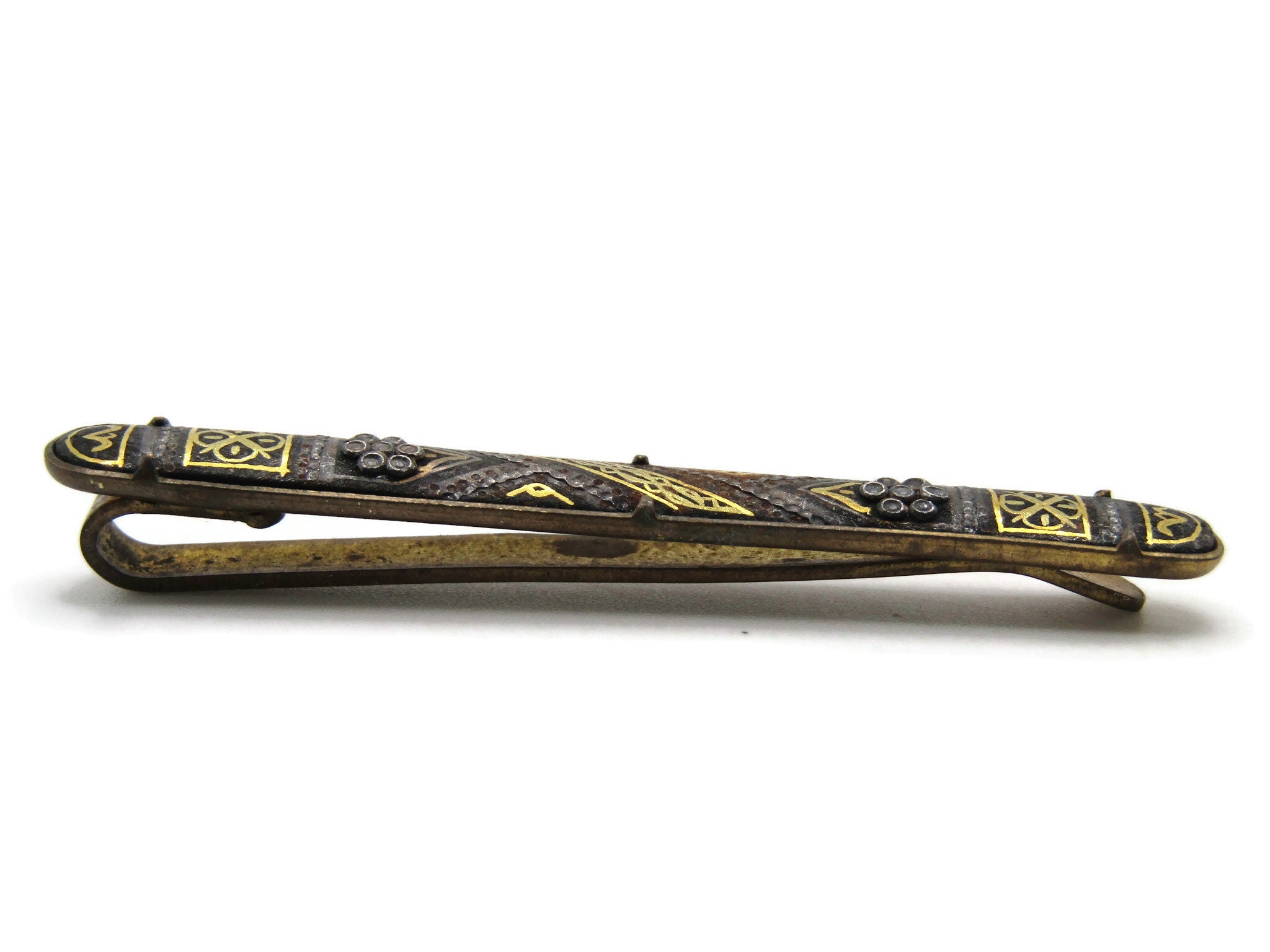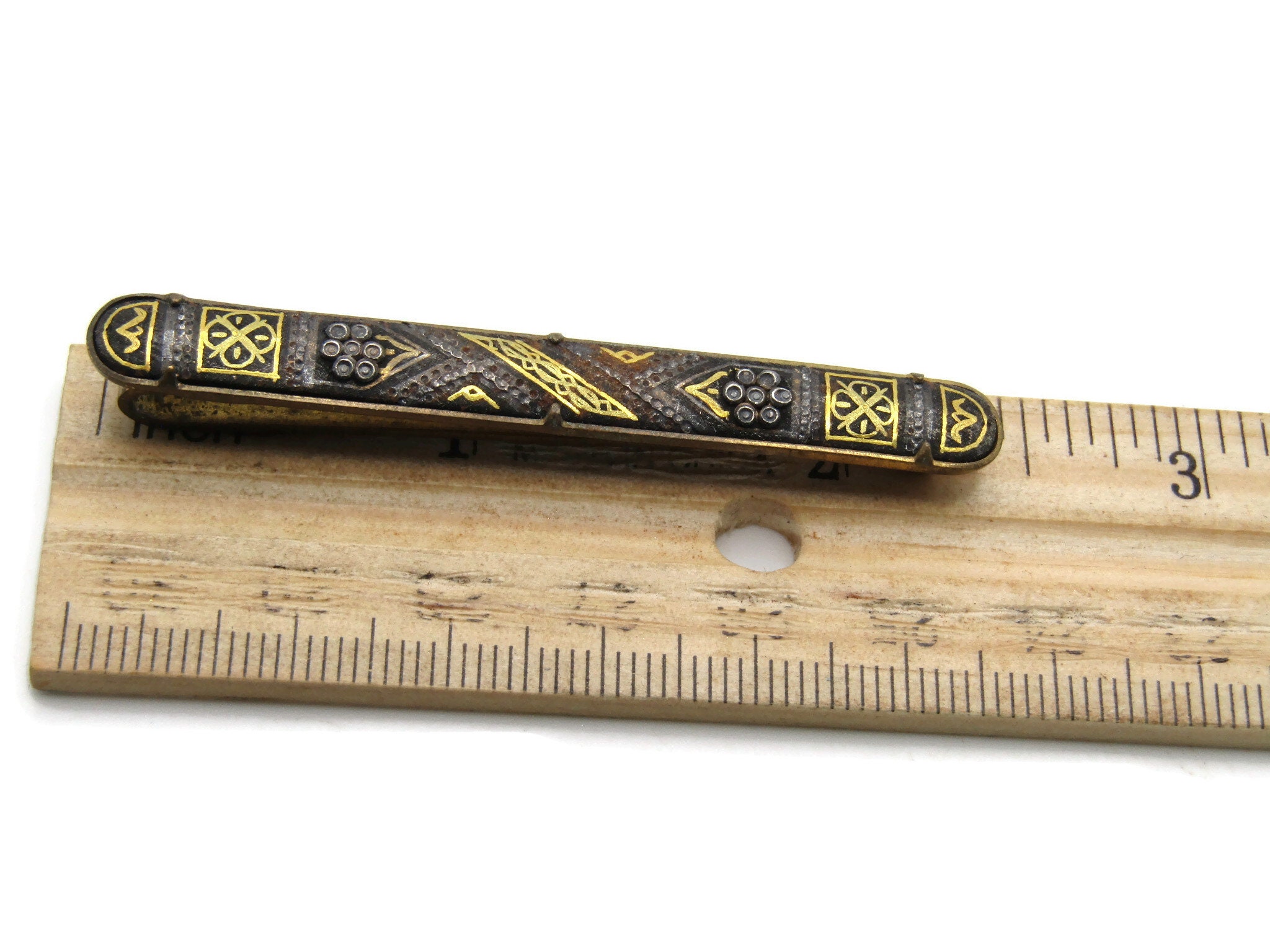 Intricate Pattern Front Tie Bar Tie Clip Men's Jewelry Gold Tone
