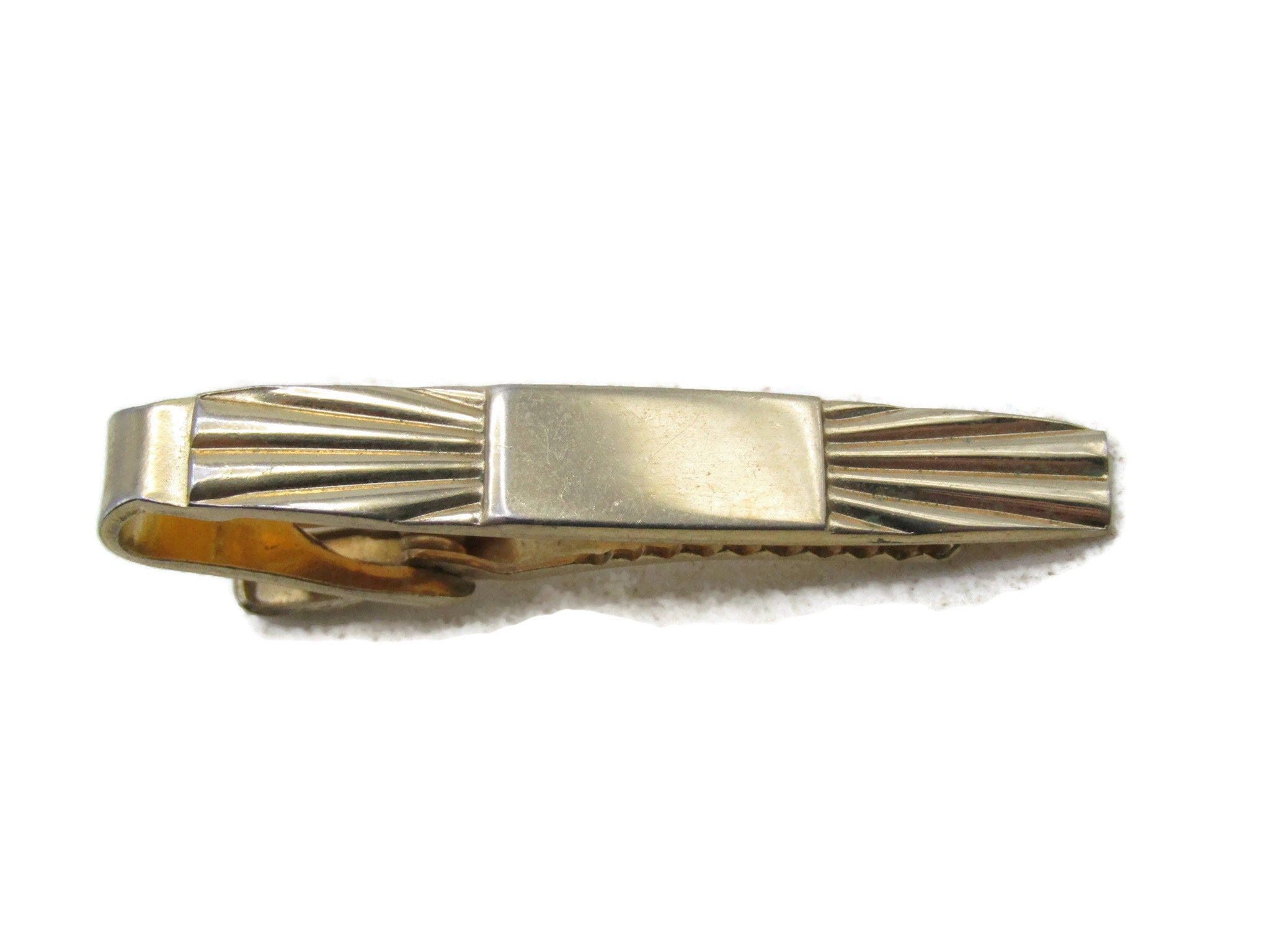 Rectangle Sunburst Tie Clip Tie Bar Men's Jewelry Gold Tone