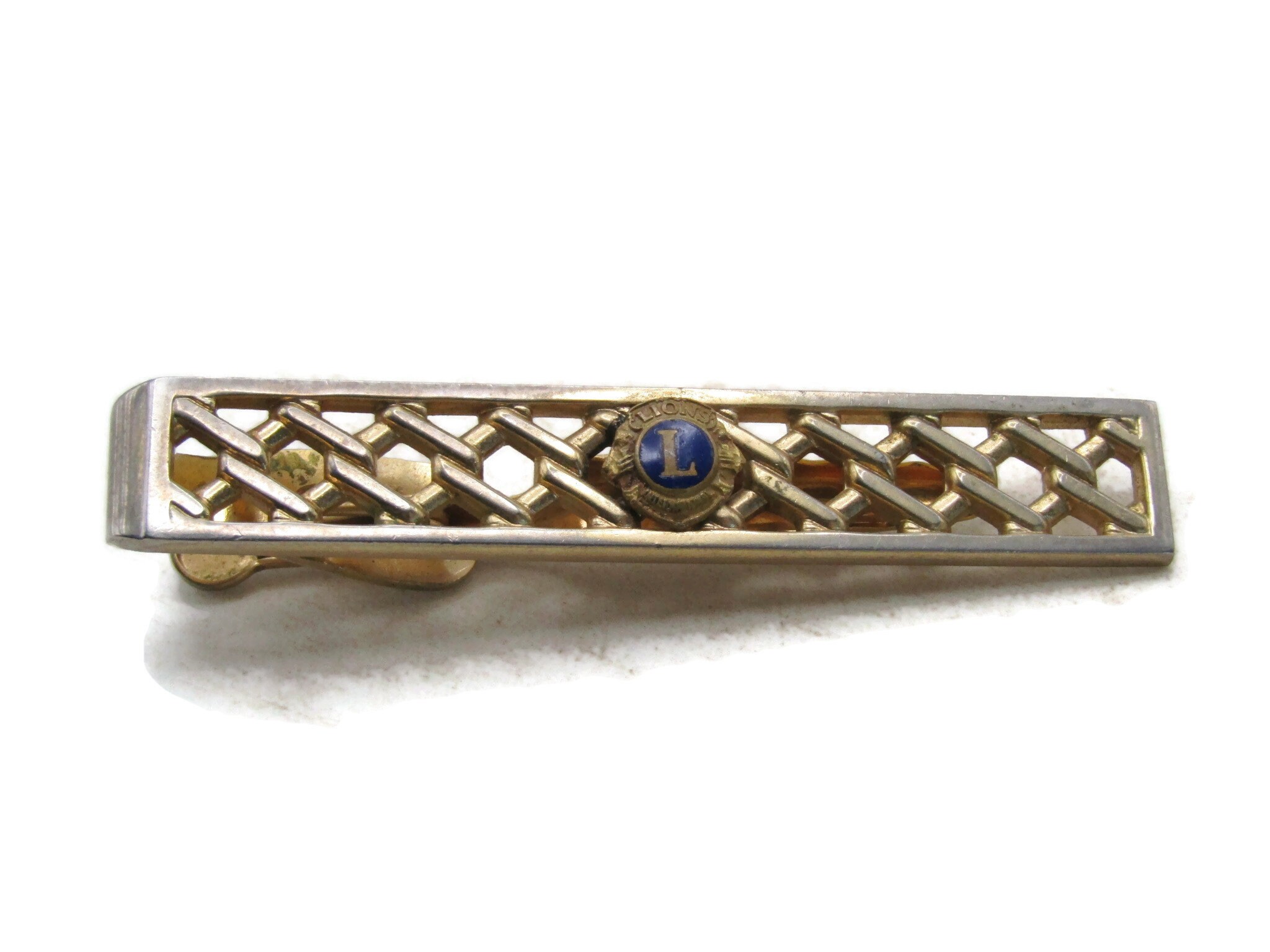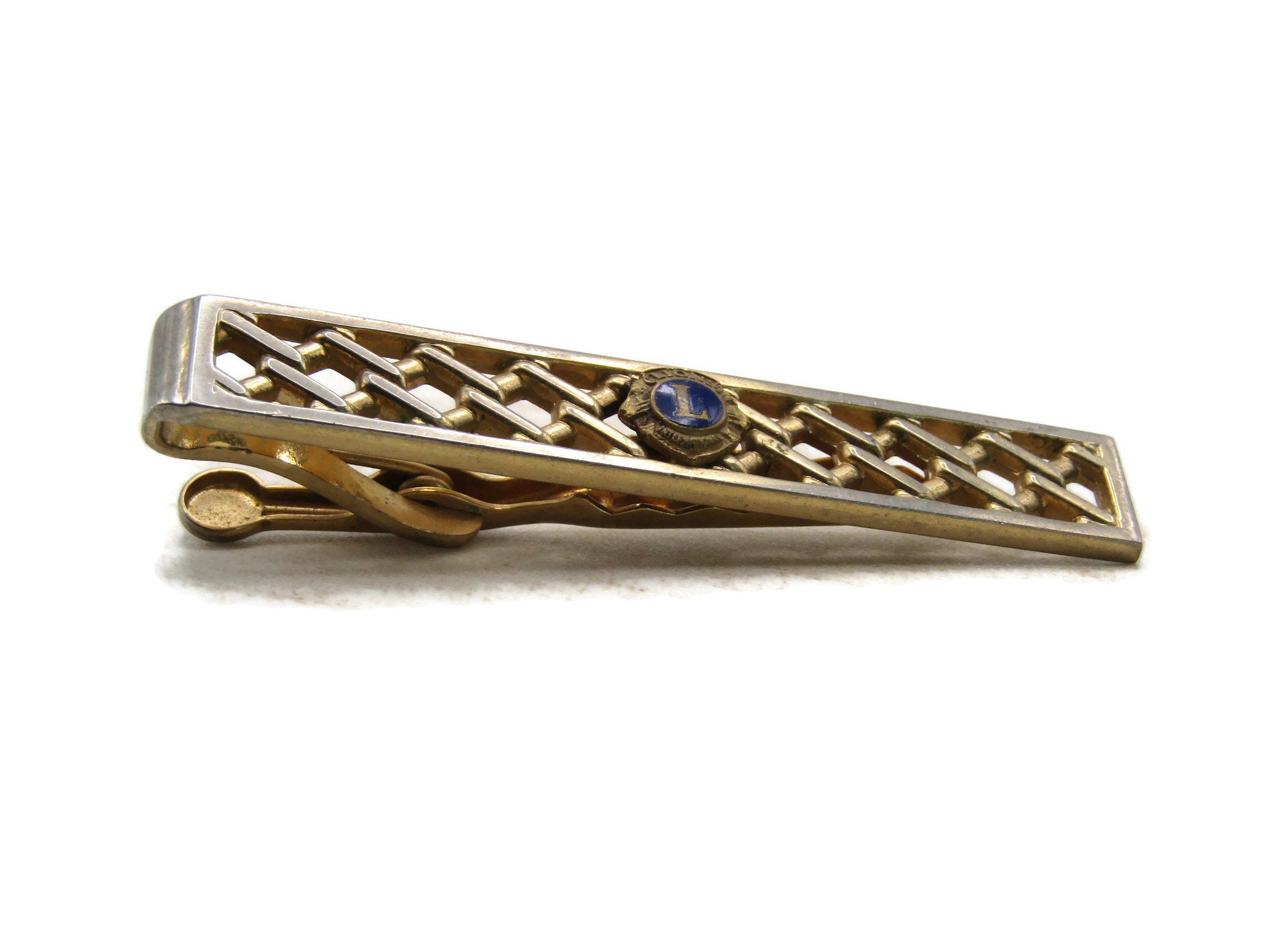 Lions International Crossed Lines Tie Clip Tie Bar Men's Jewelry Gold Tone
