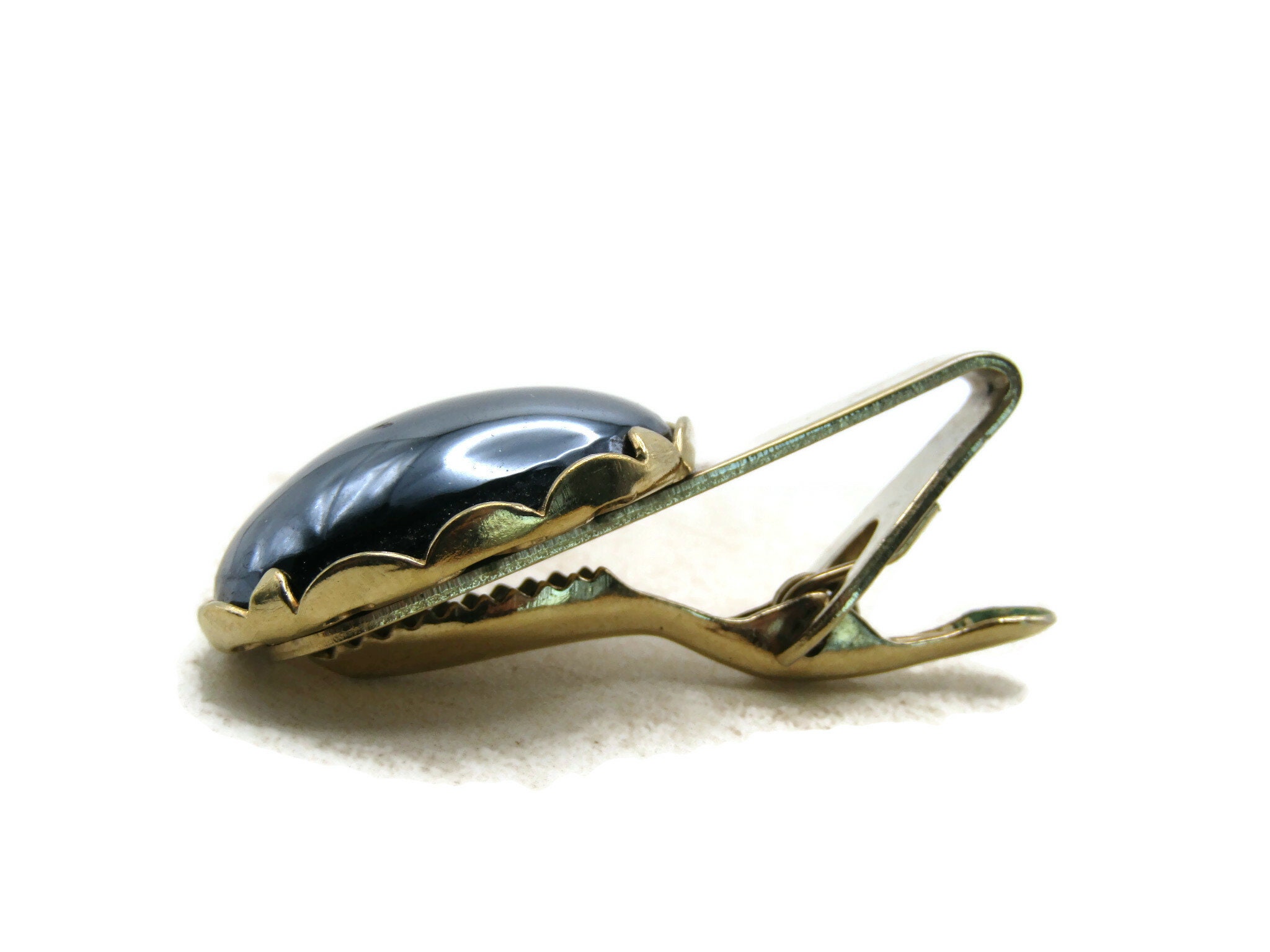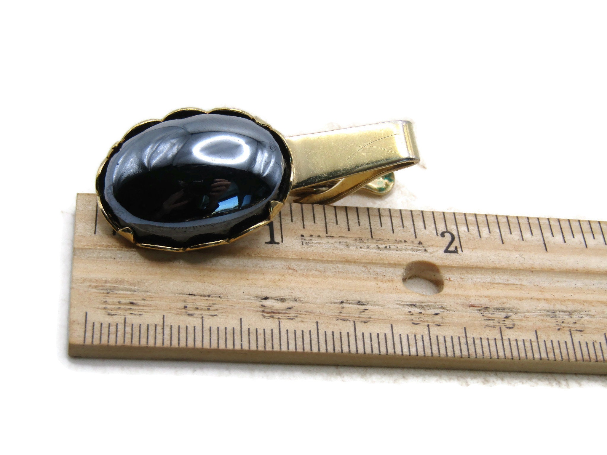 Shiny Black Stone Inlay Tie Clip Tie Bar Men's Jewelry Gold Tone