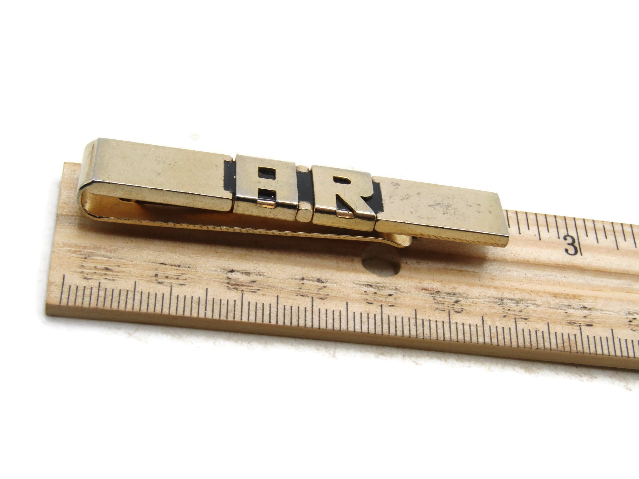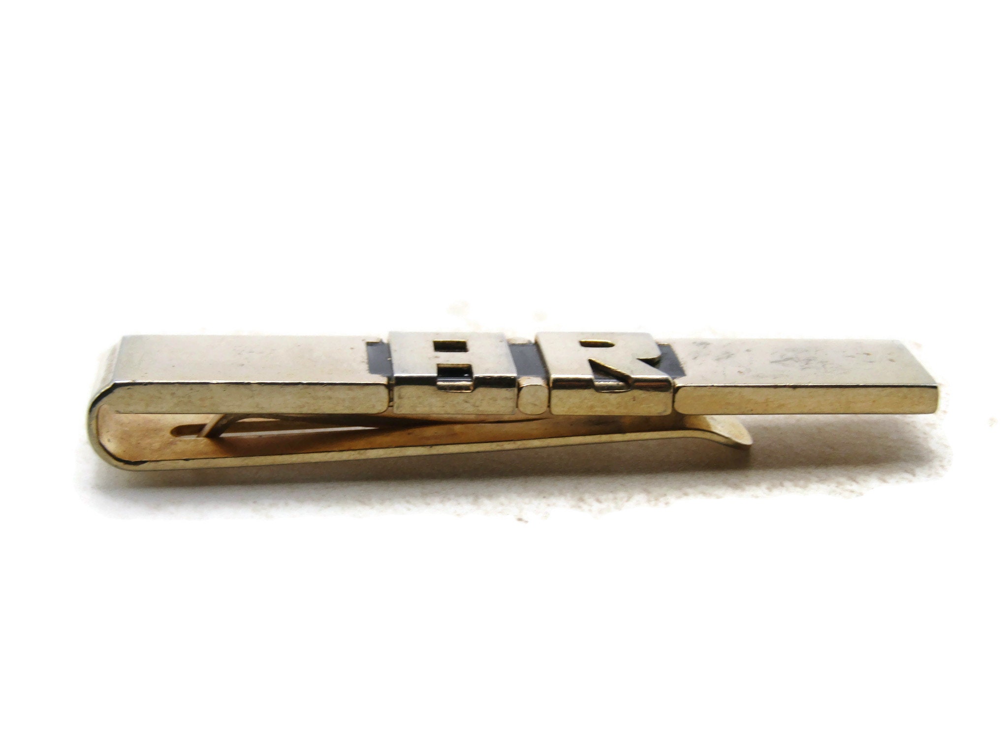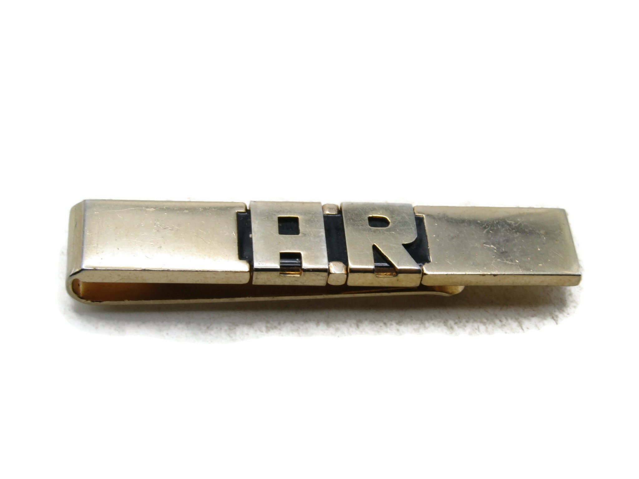 A.R. Letter Initial Monogram Tie Clip Tie Bar Men's Jewelry Gold Tone