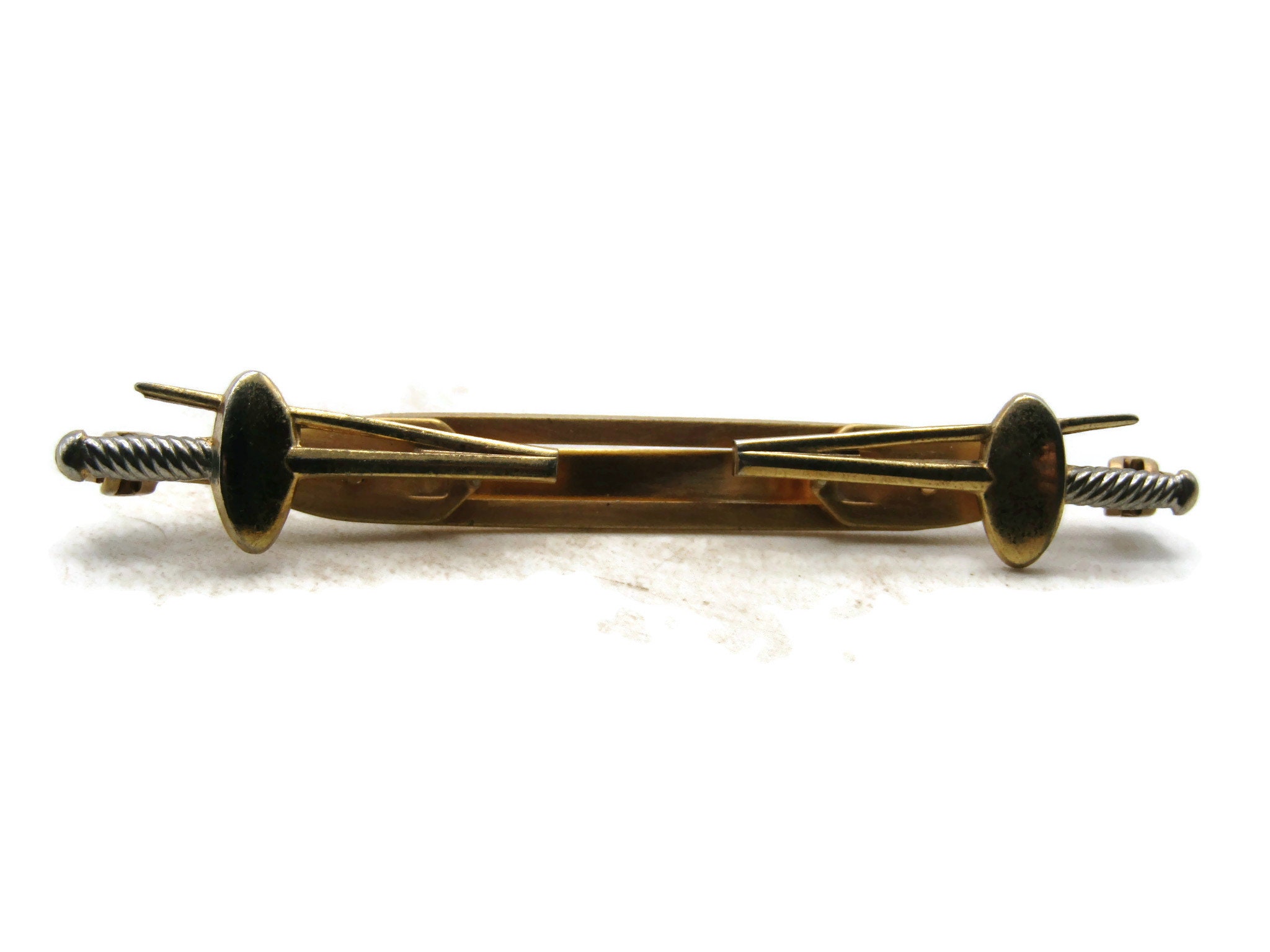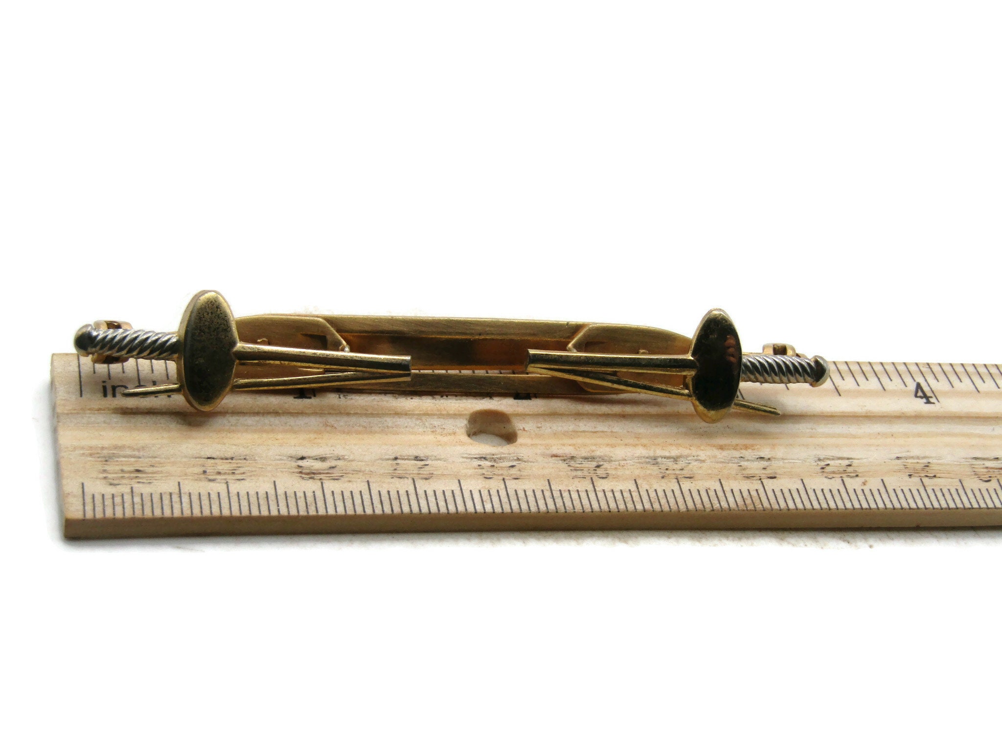 Two Swords Tie Clip Open Design Tie Bar Men's Jewelry Gold Tone