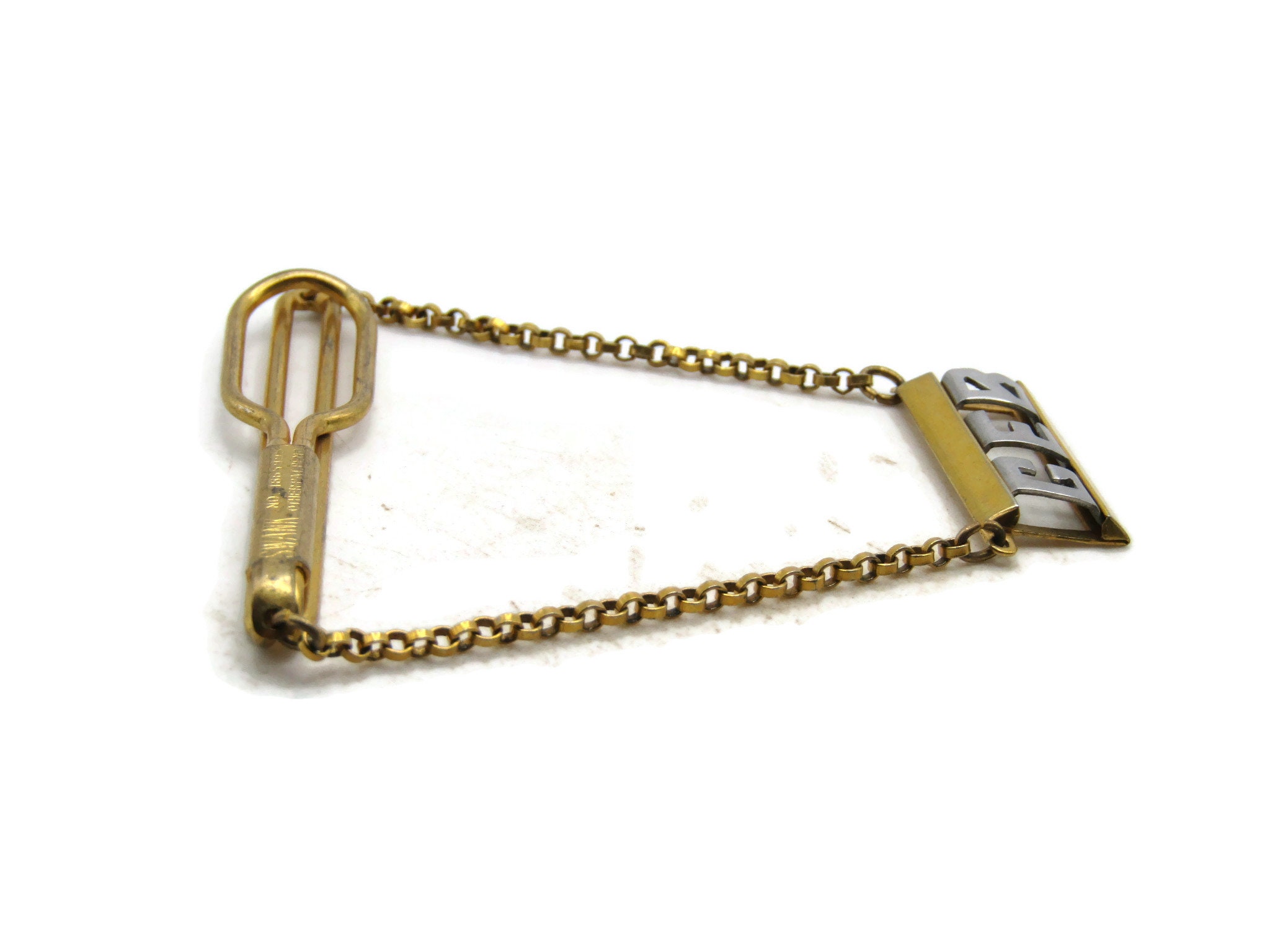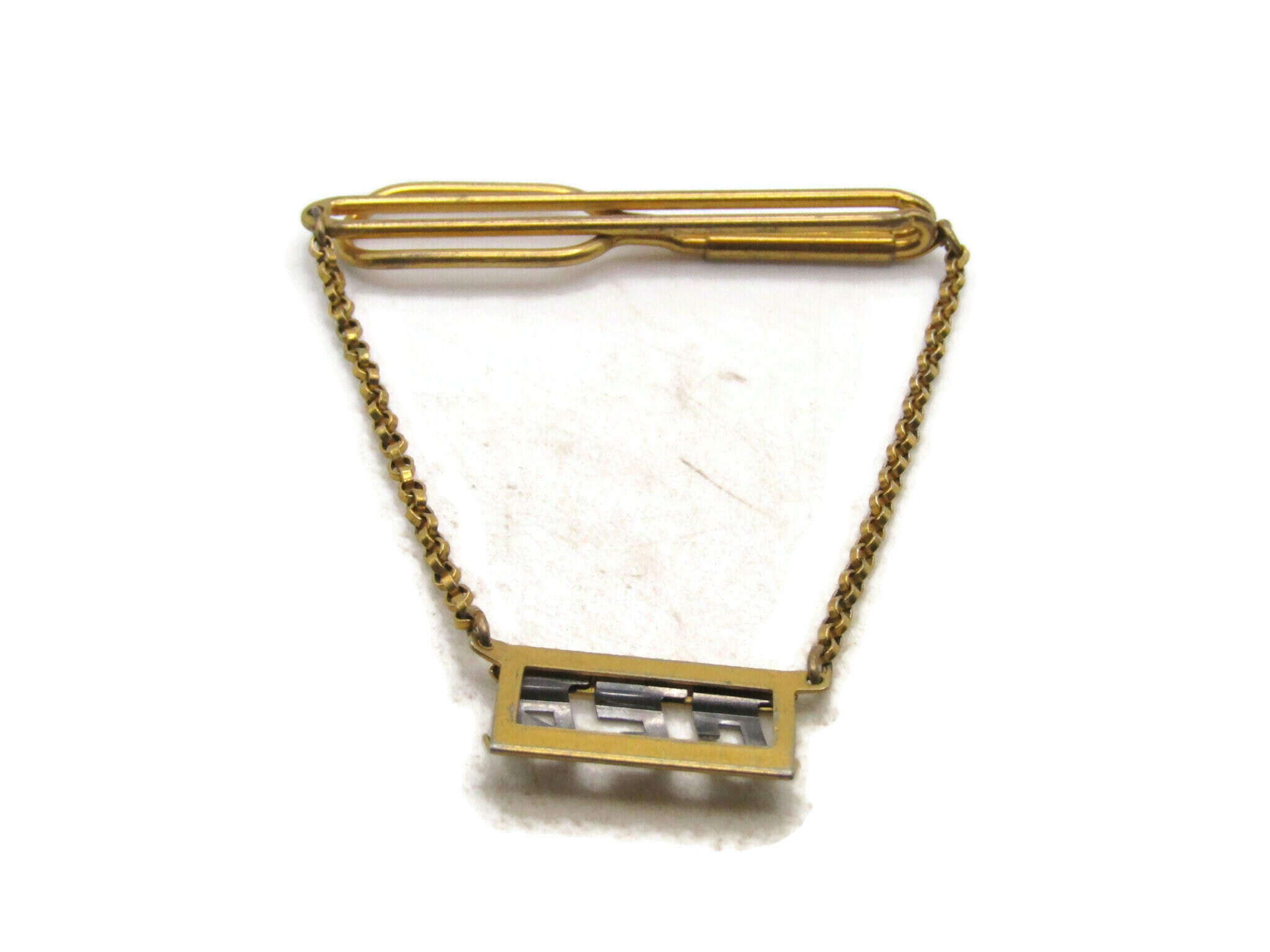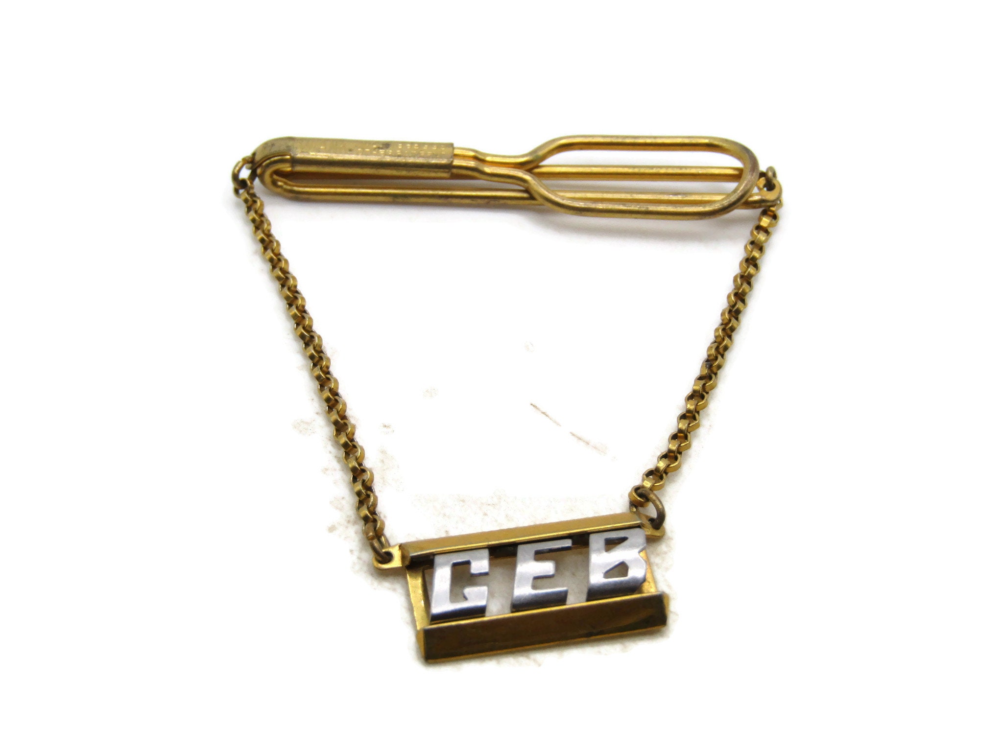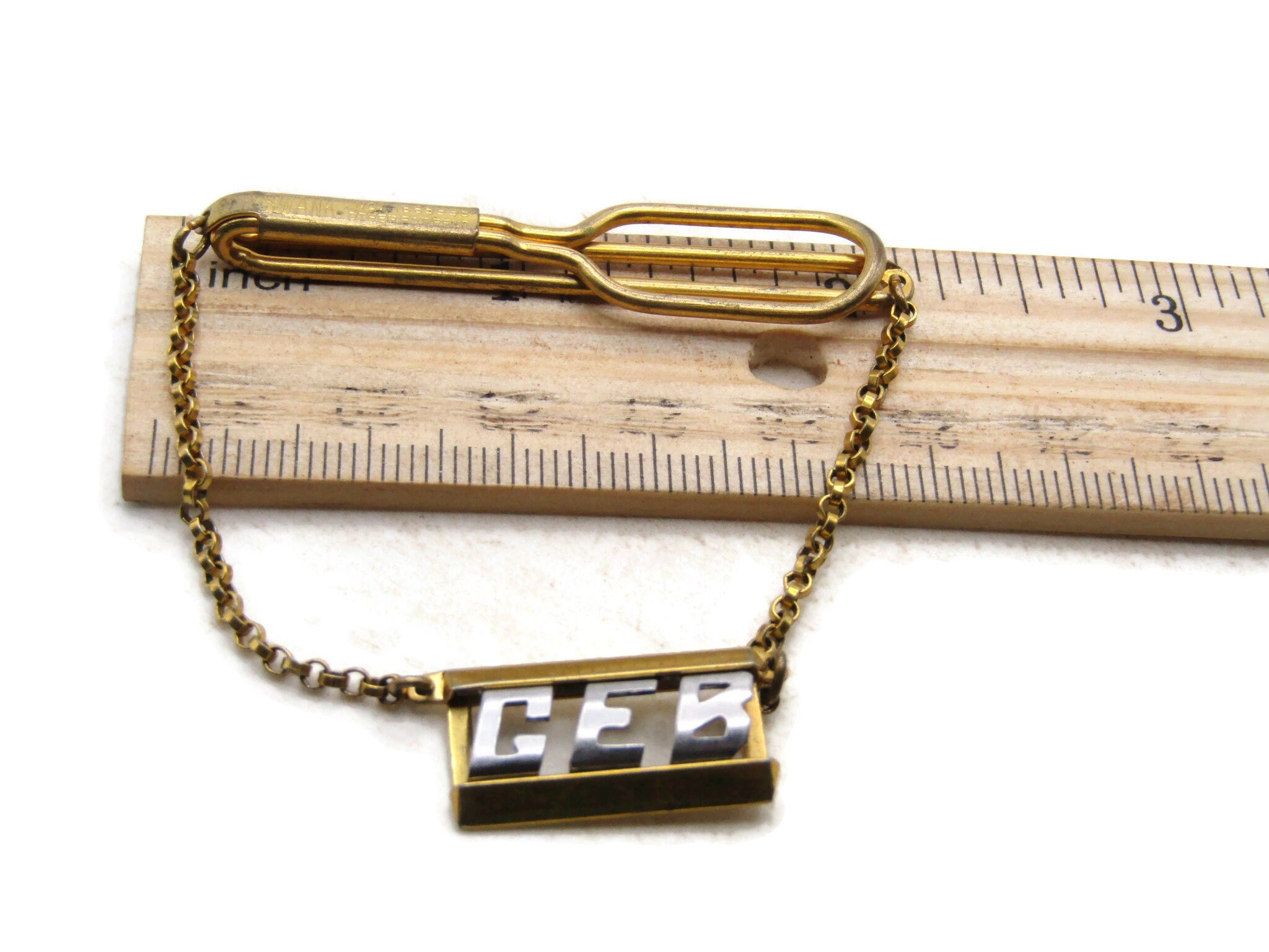 GEB Letter Initial Monogram Tie Clip & Chain Tie Bar Men's Jewelry Gold Tone