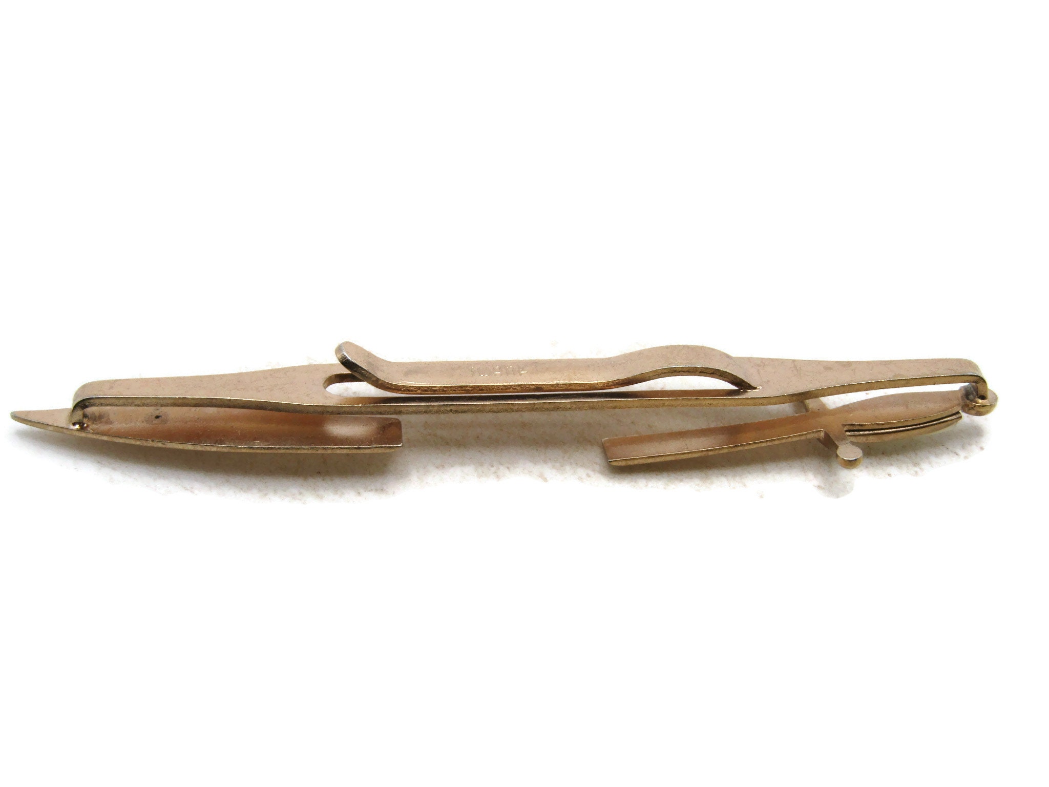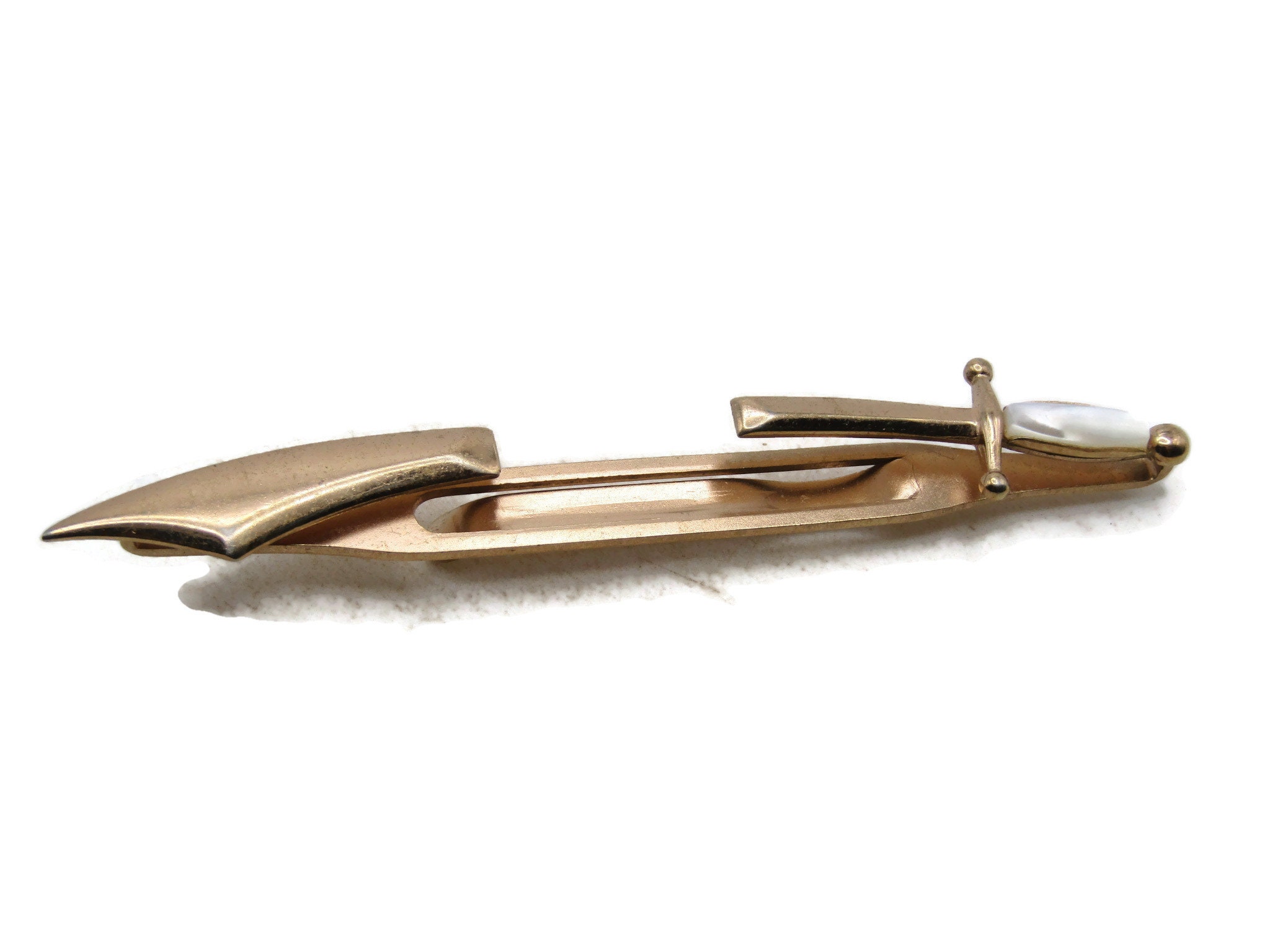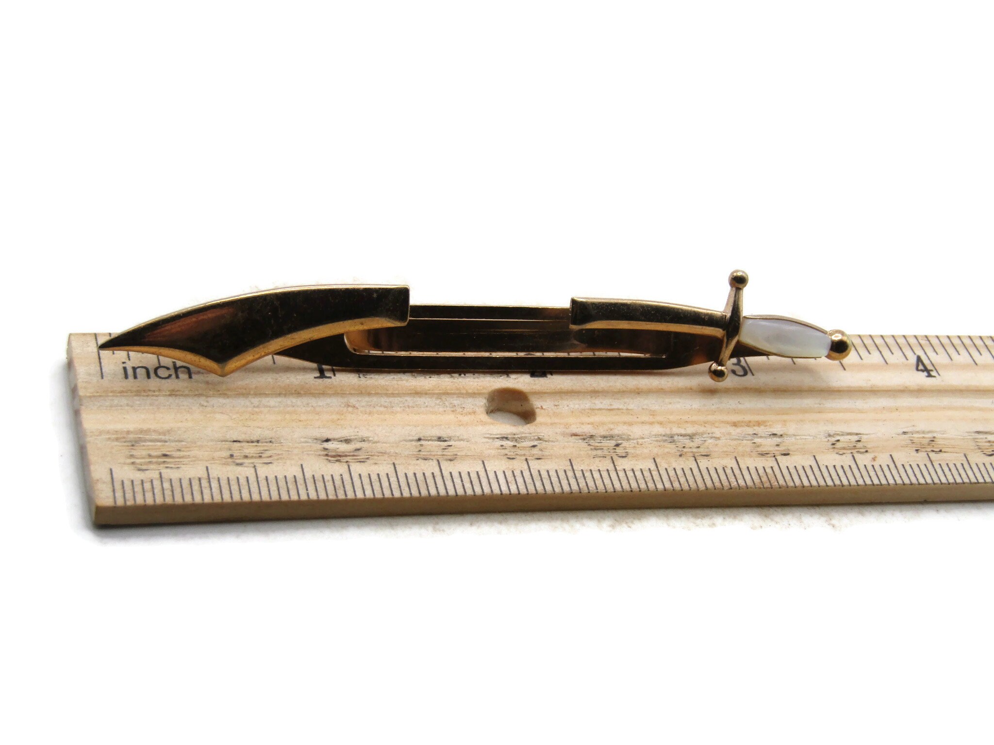 Mother Of Pearl Inlay Sword Tie Clip Tie Bar Open Design Men's Jewelry Gold Tone