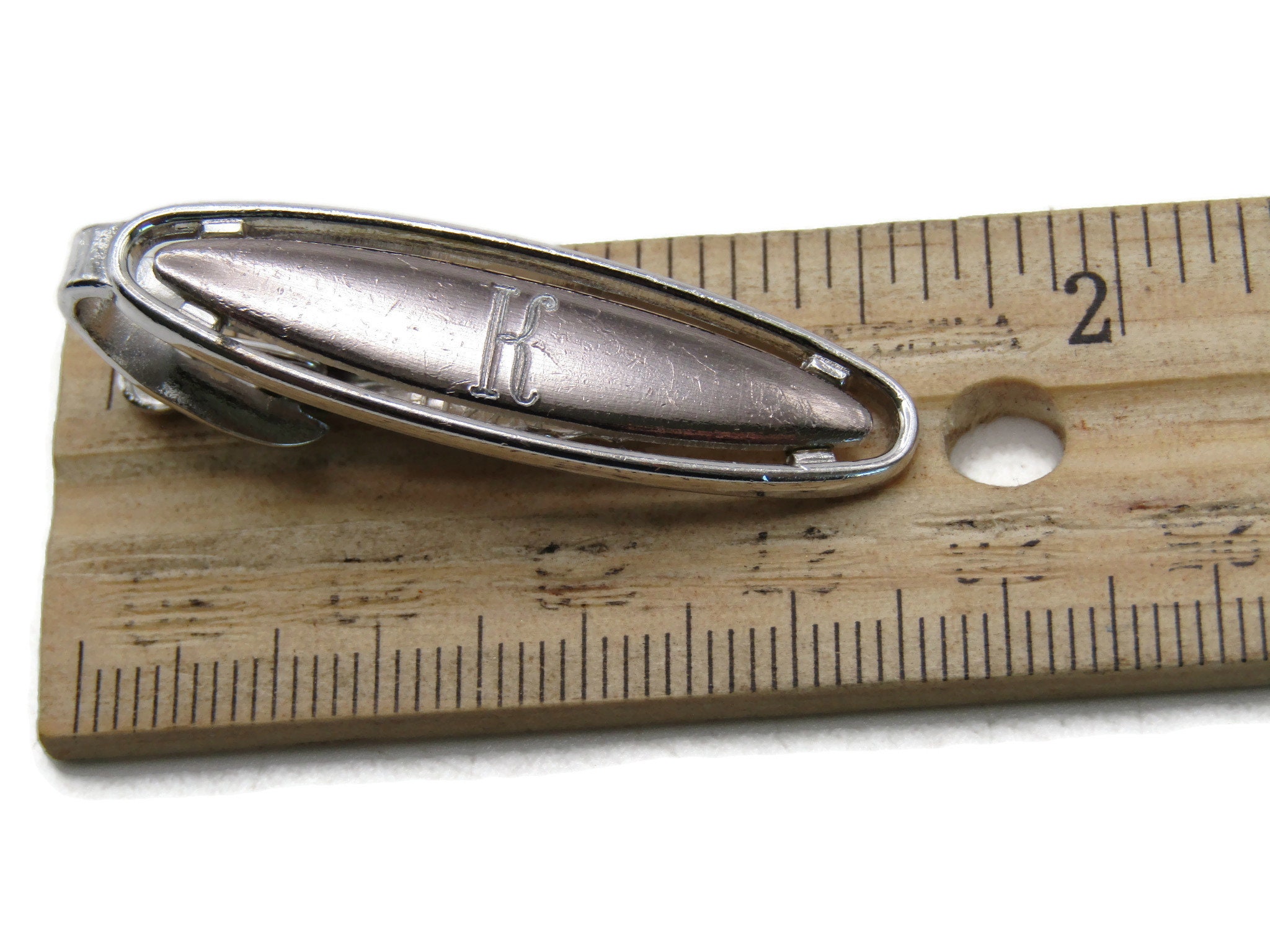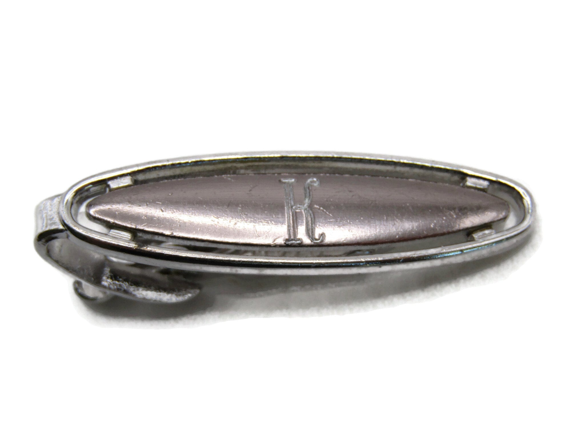 Oval K Letter Initial Monogram Tie Clip Tie Bar Men's Jewelry Silver Tone