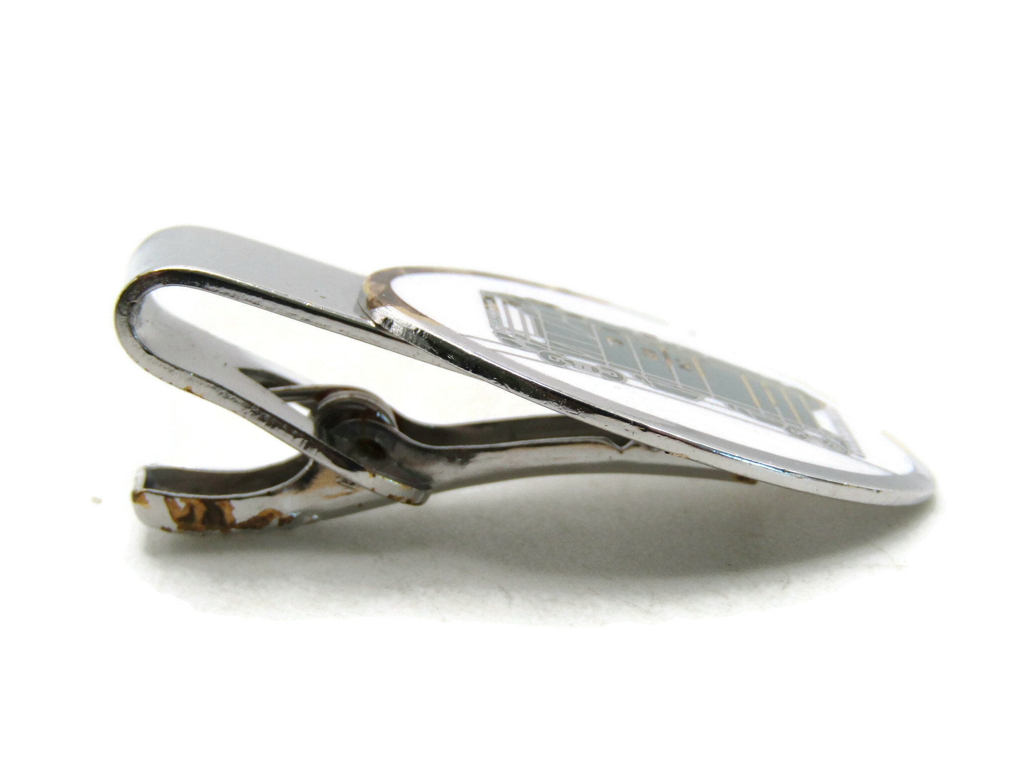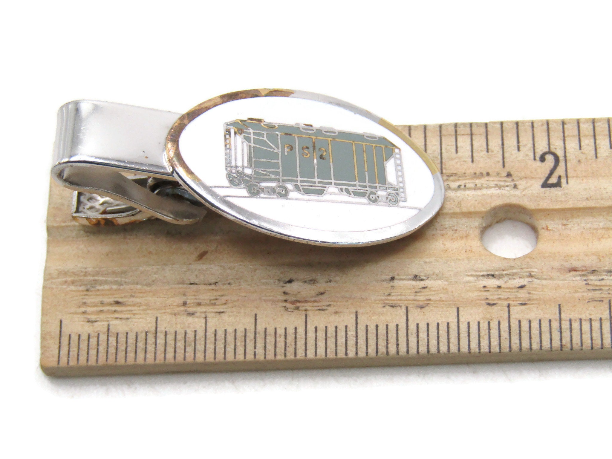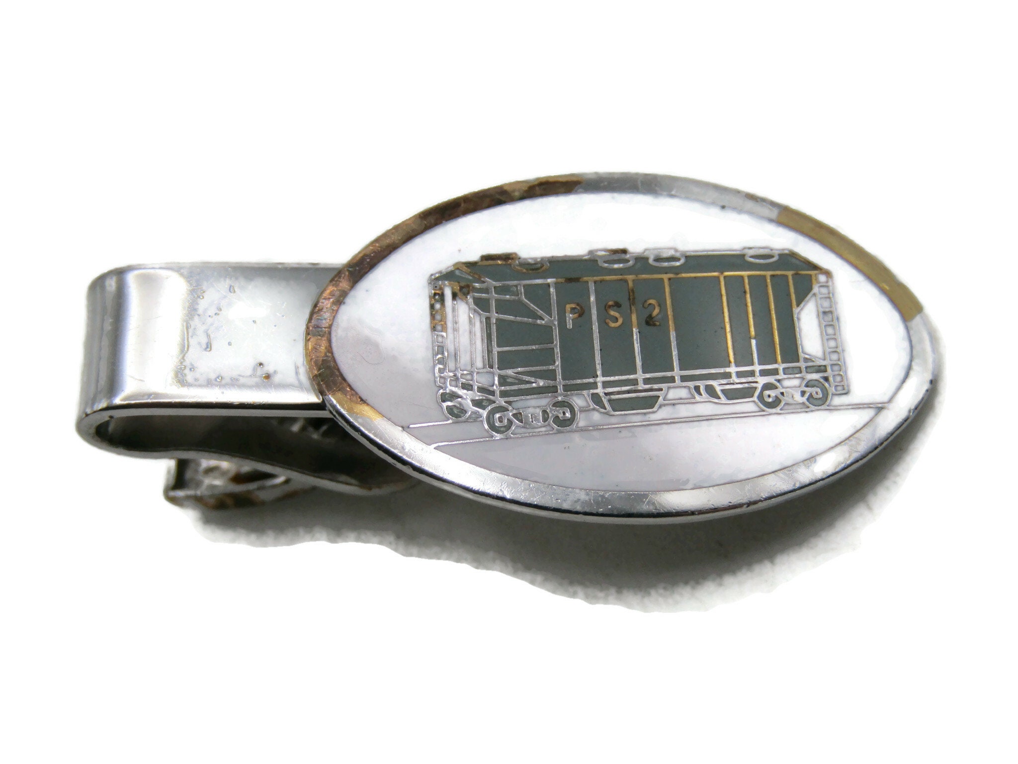 PS2 Blue Train Car Tie Clip White Background Tie Bar Men's Jewelry Silver Tone