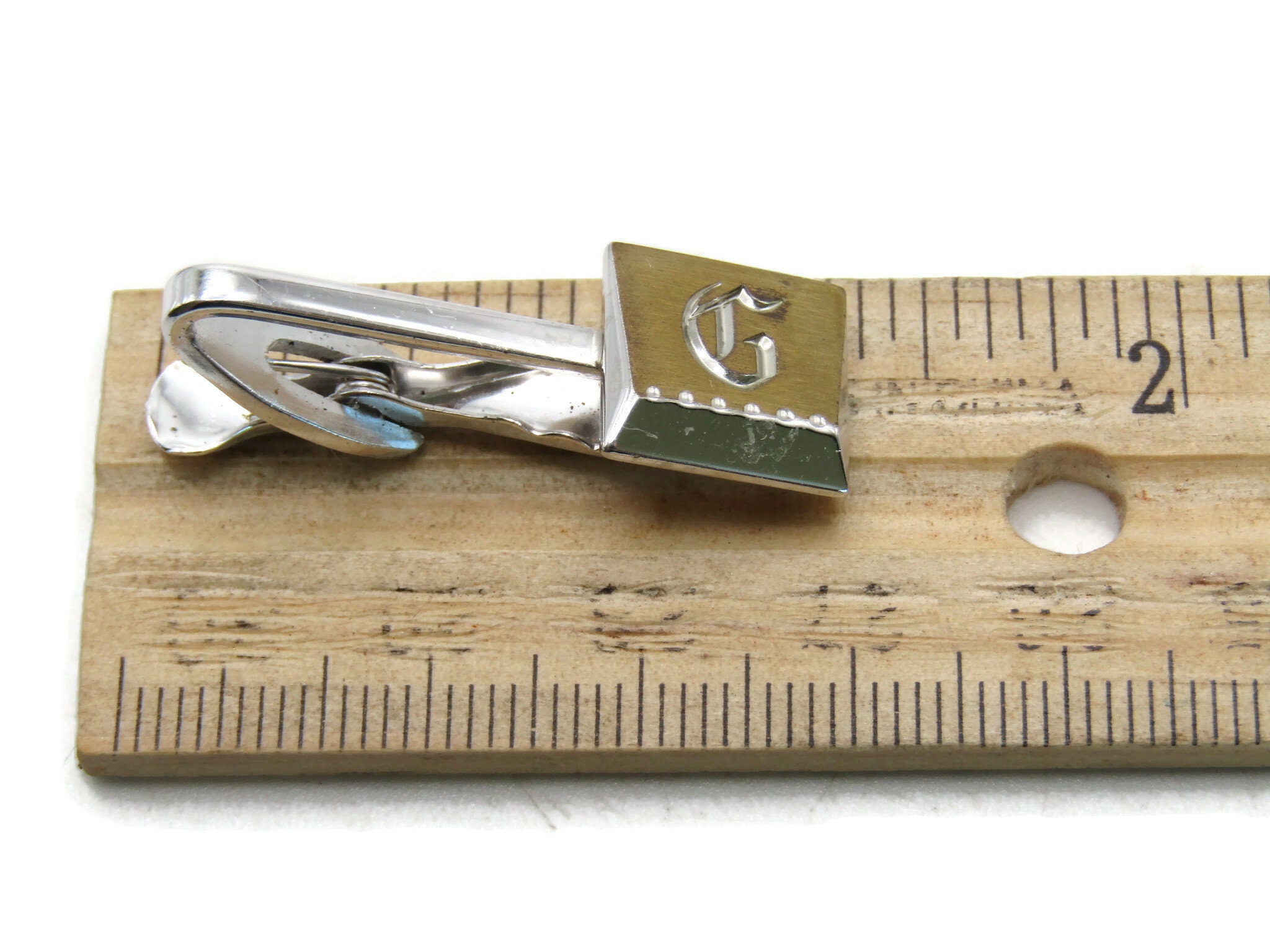 G Letter Initial Monogram Tie Clip Tie Bar Men's Jewelry Silver Tone