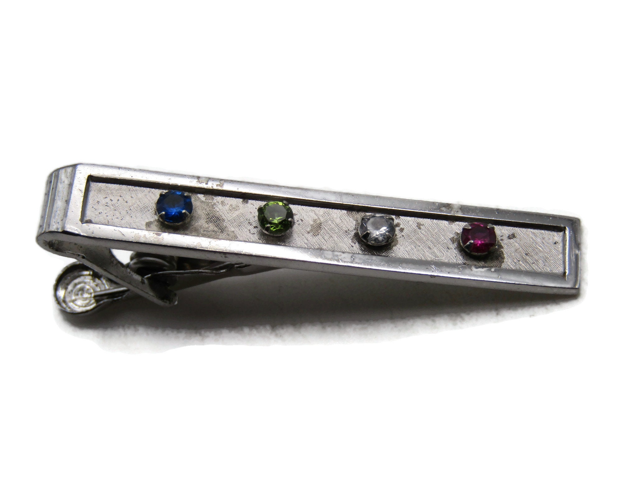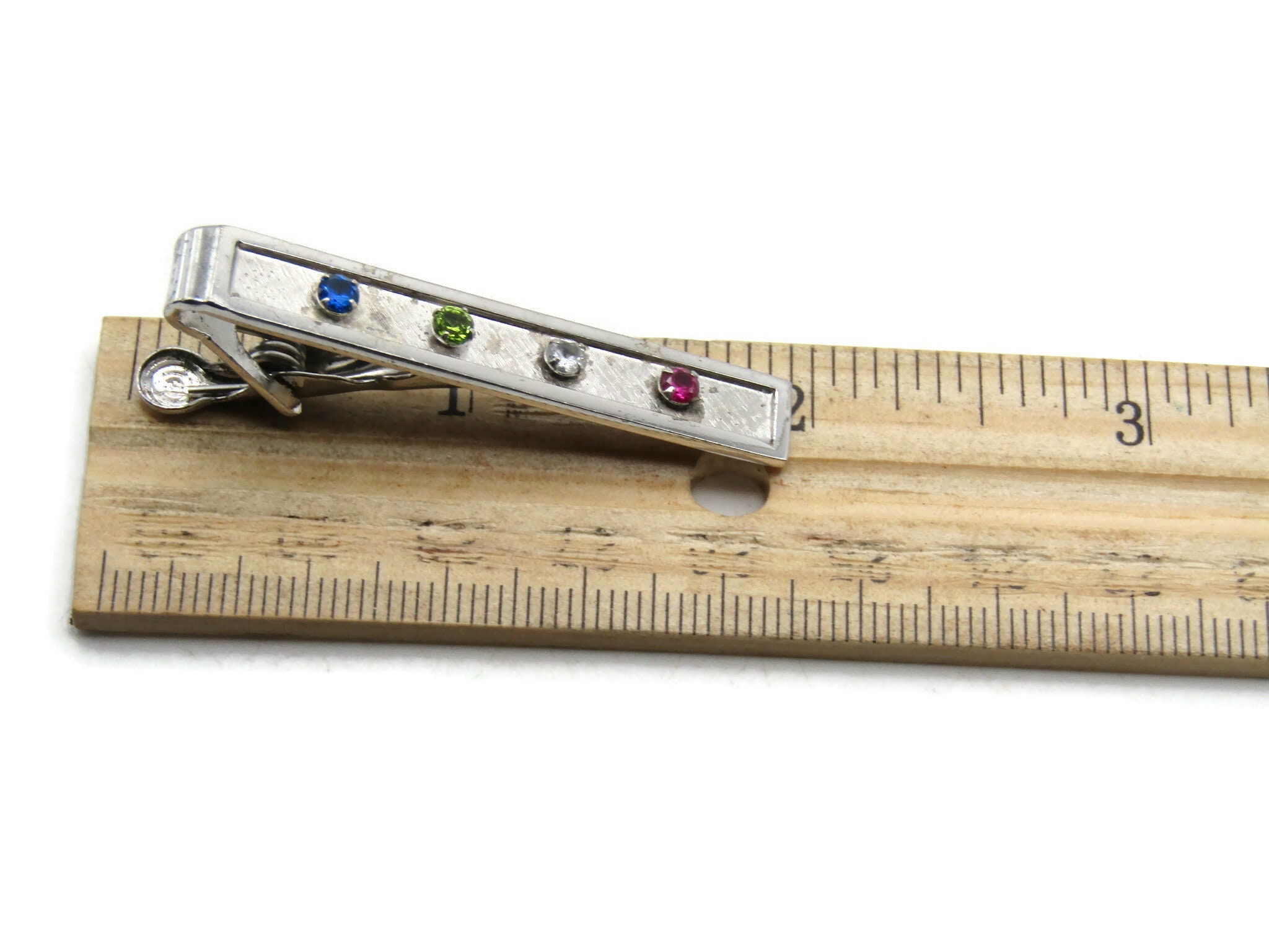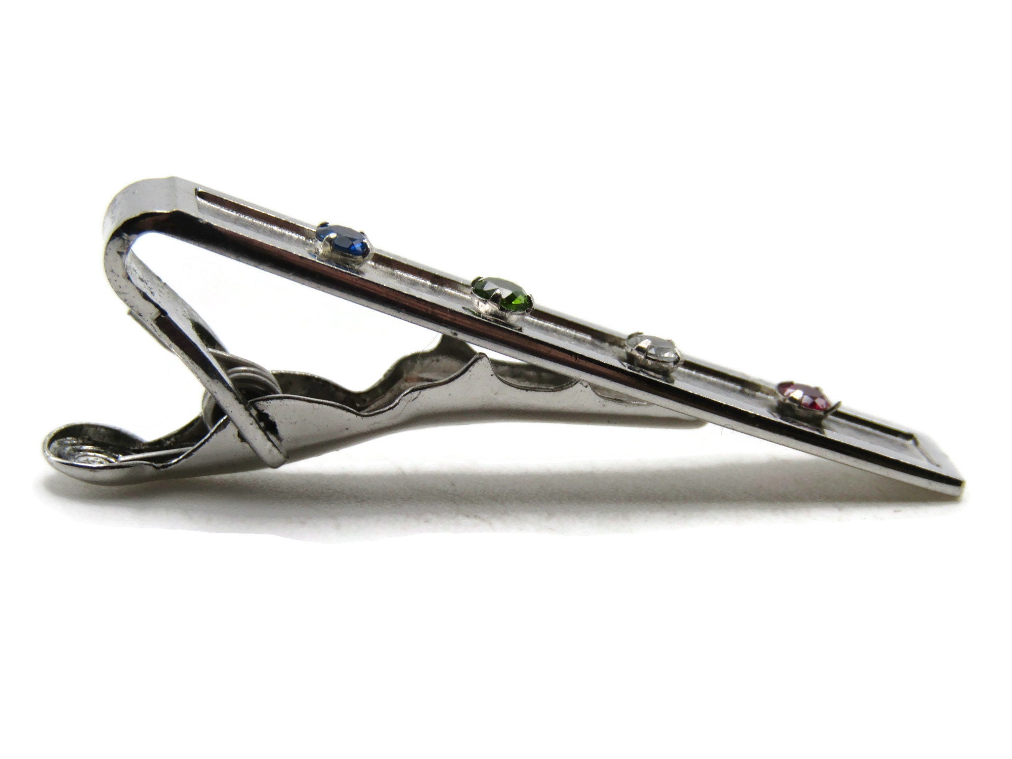 Multicolored Rhinestone Inlay Tie Bar Tie Clip Men's Jewelry Silver Tone