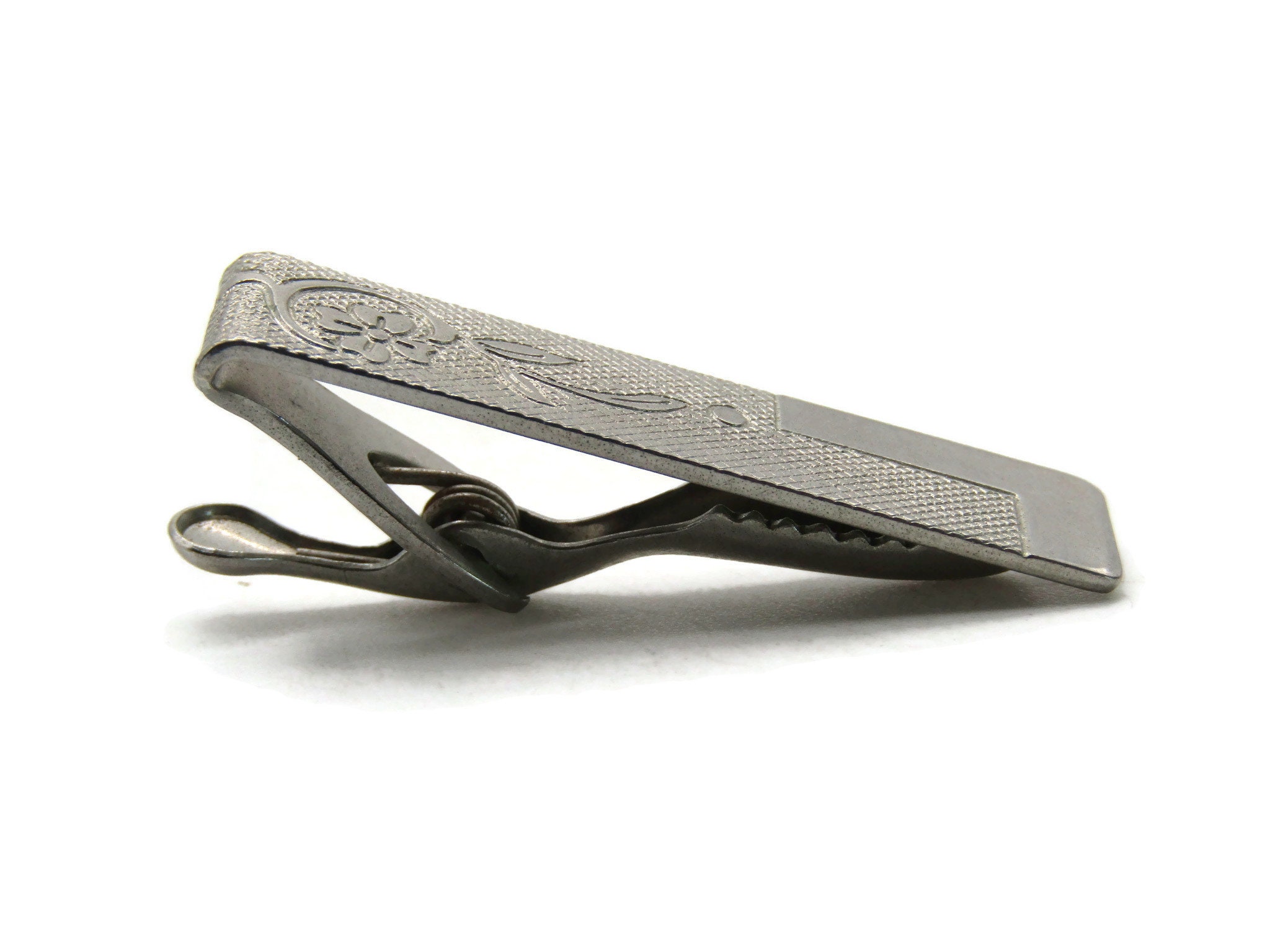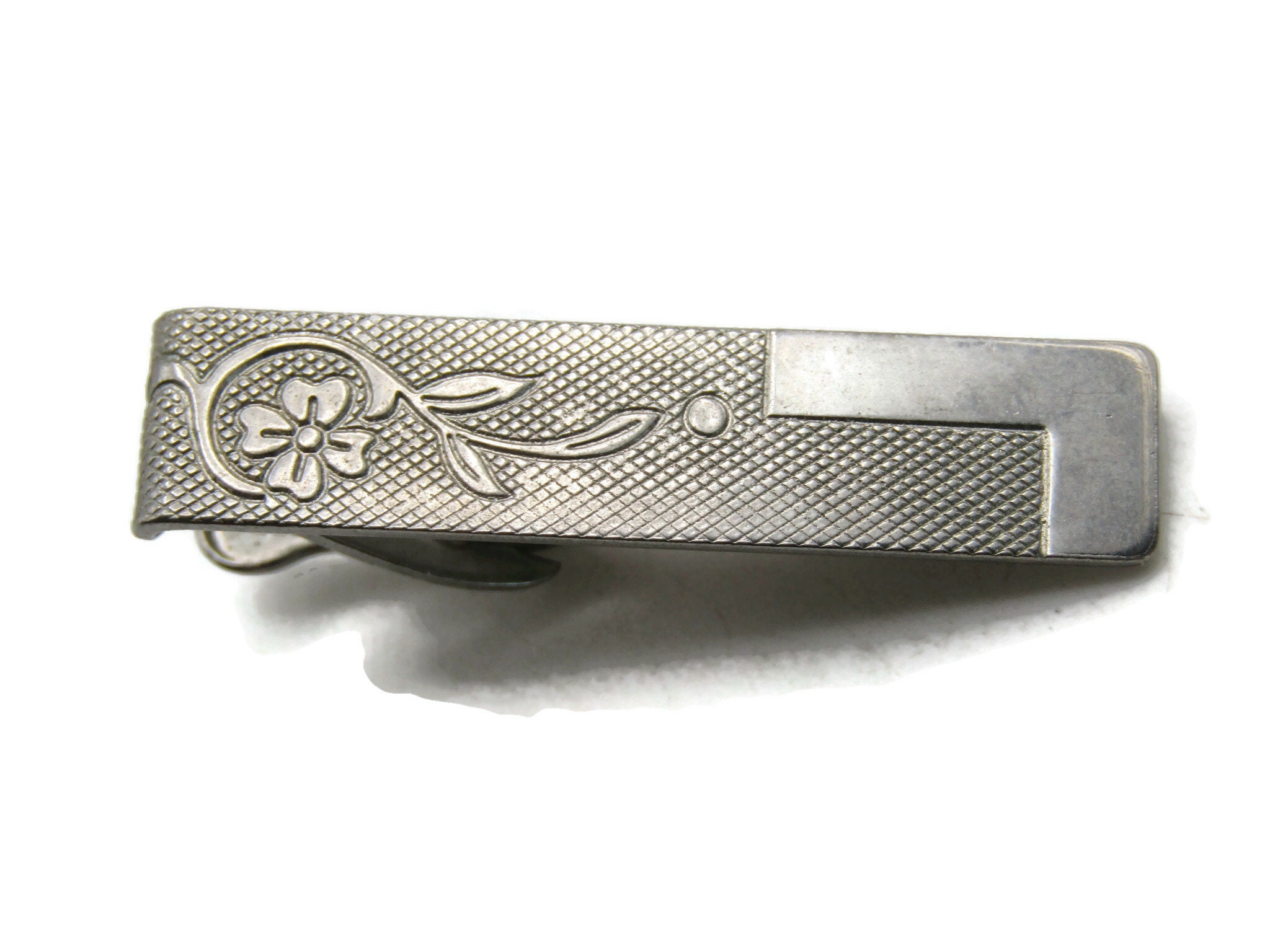 Floral Motif Textured Tie Bar Tie Clip Men's Jewelry Silver Tone