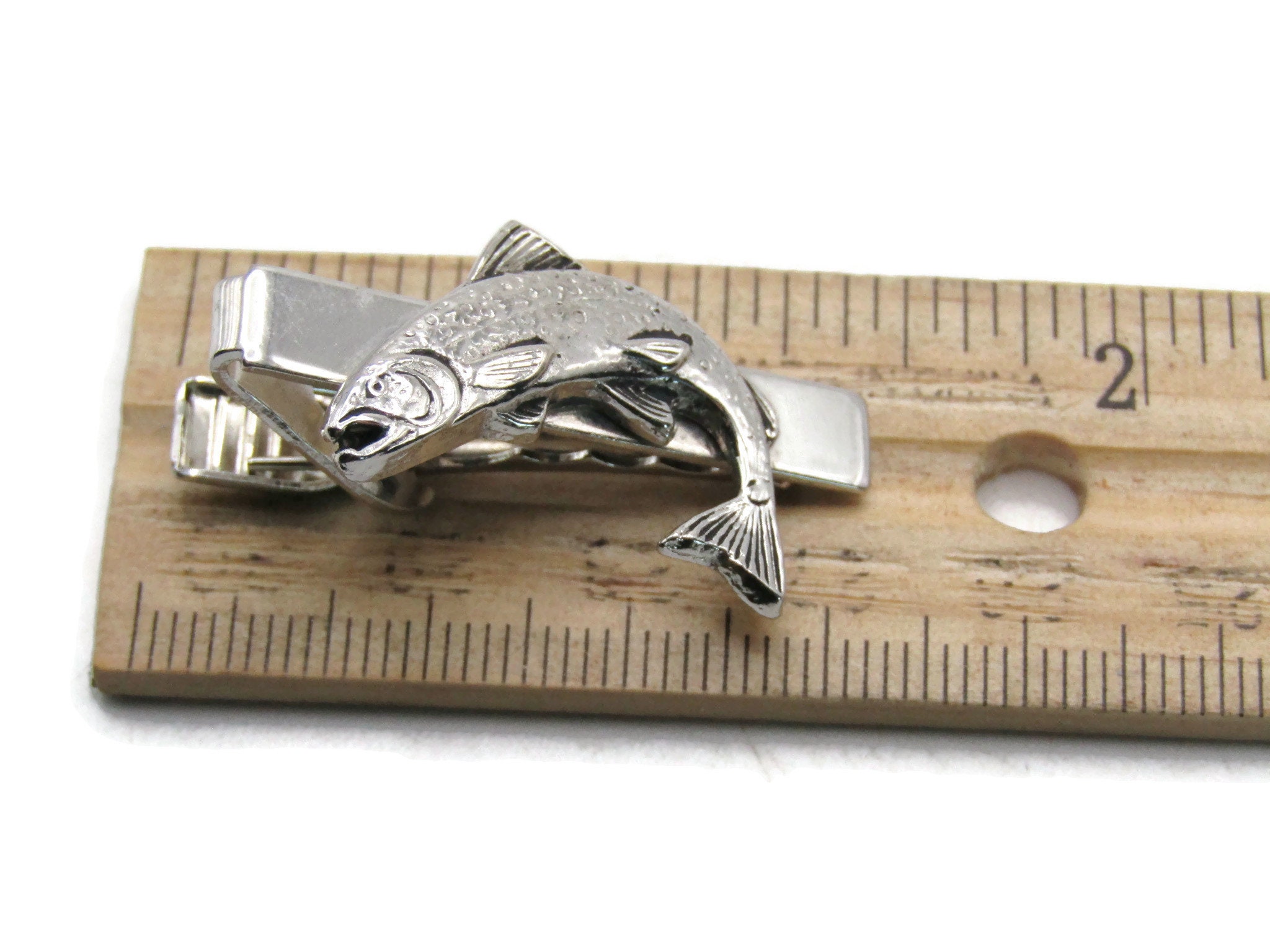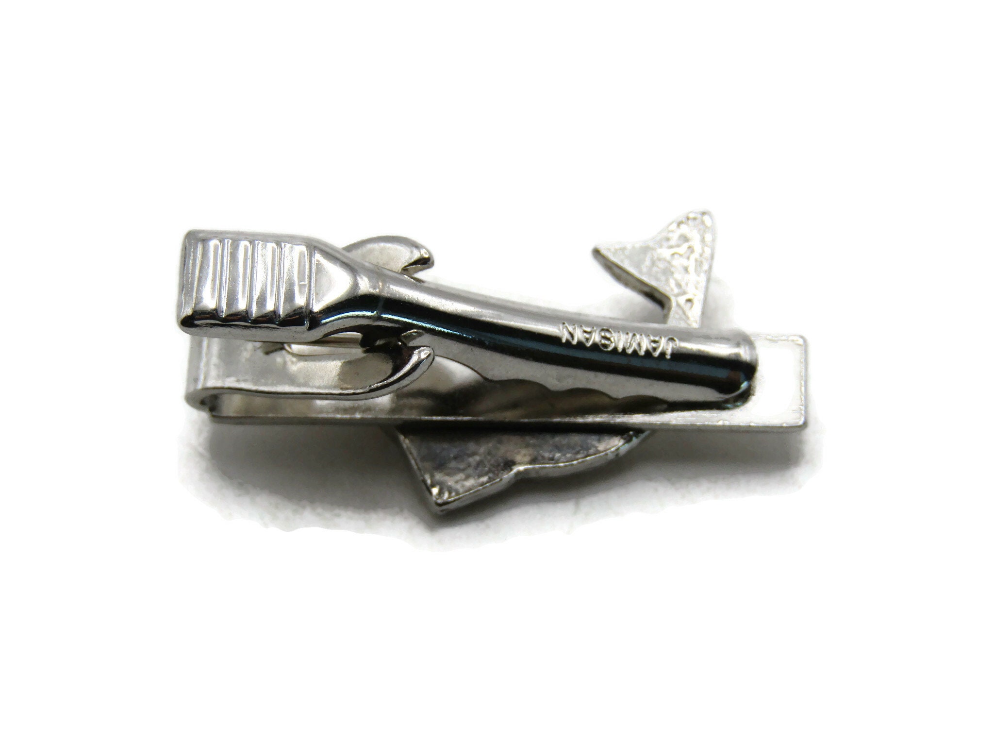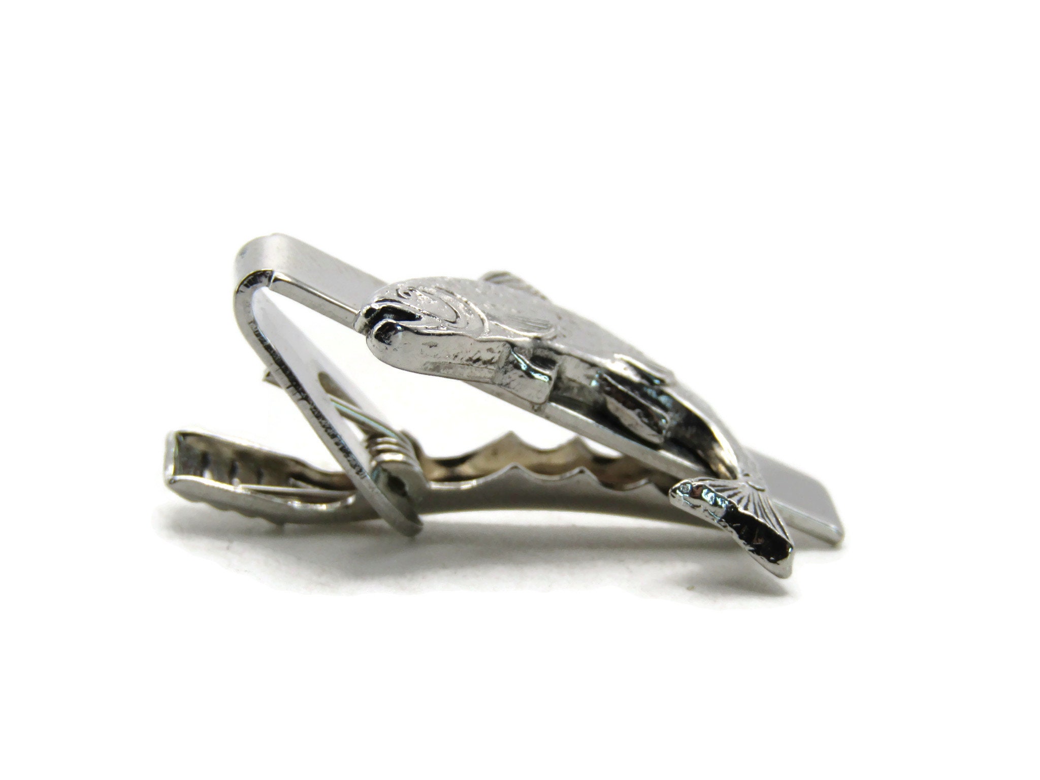 Large Fish Tie Clip Modernist Tie Bar Men's Jewelry Silver Tone