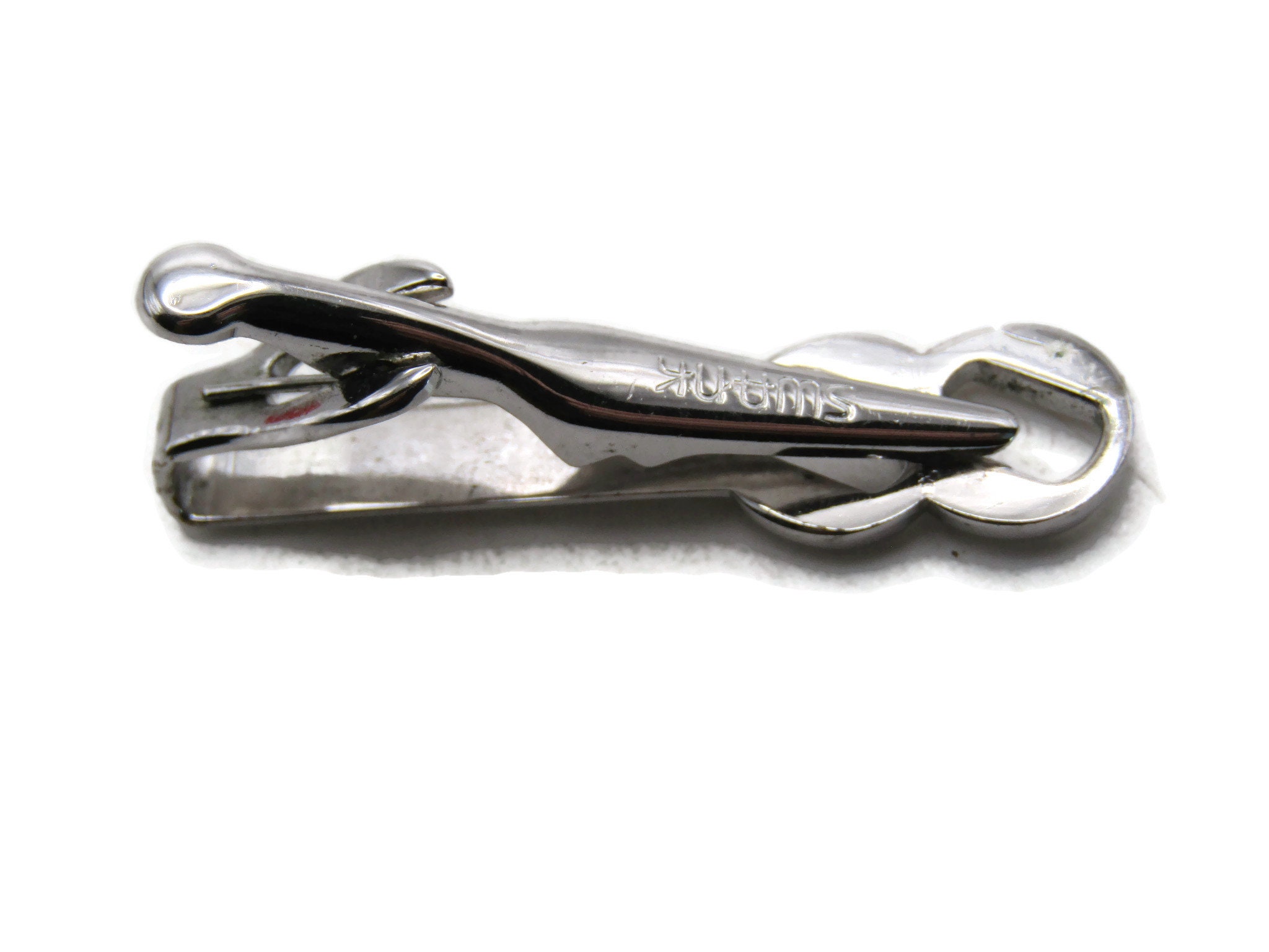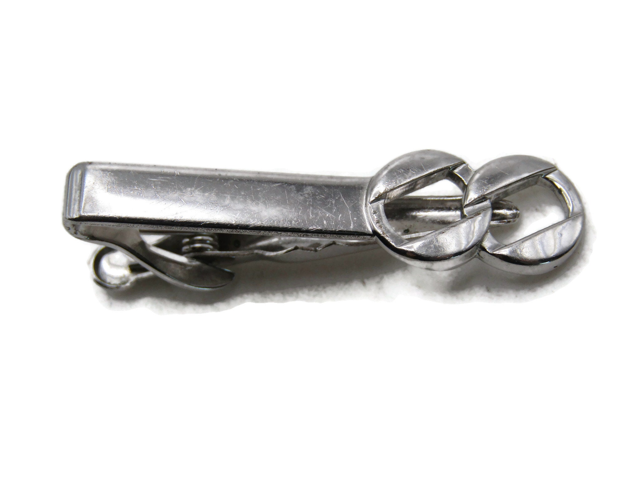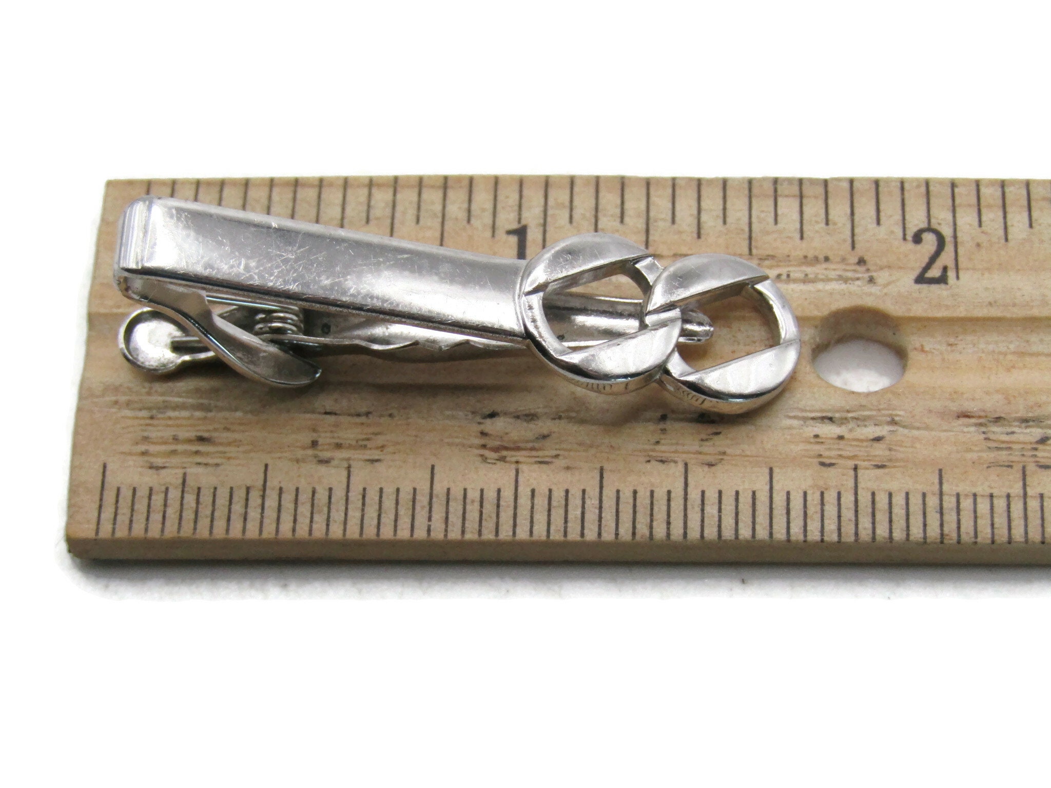 Linked Circles Tie Clip Modernist Tie Bar Men's Jewelry Silver Tone