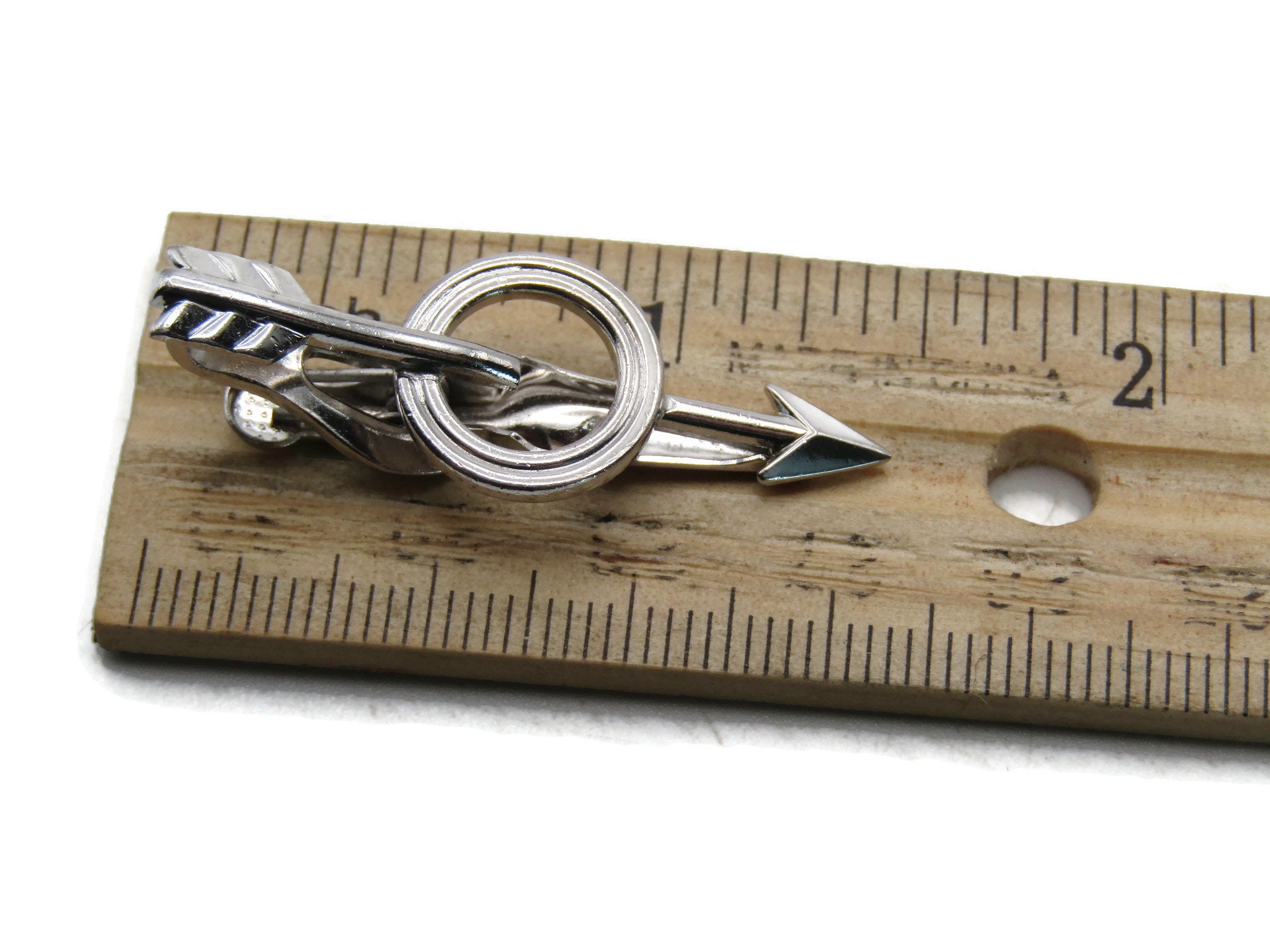 Arrow And Circle Tie Clip Modernist Tie Bar Men's Jewelry Silver Tone