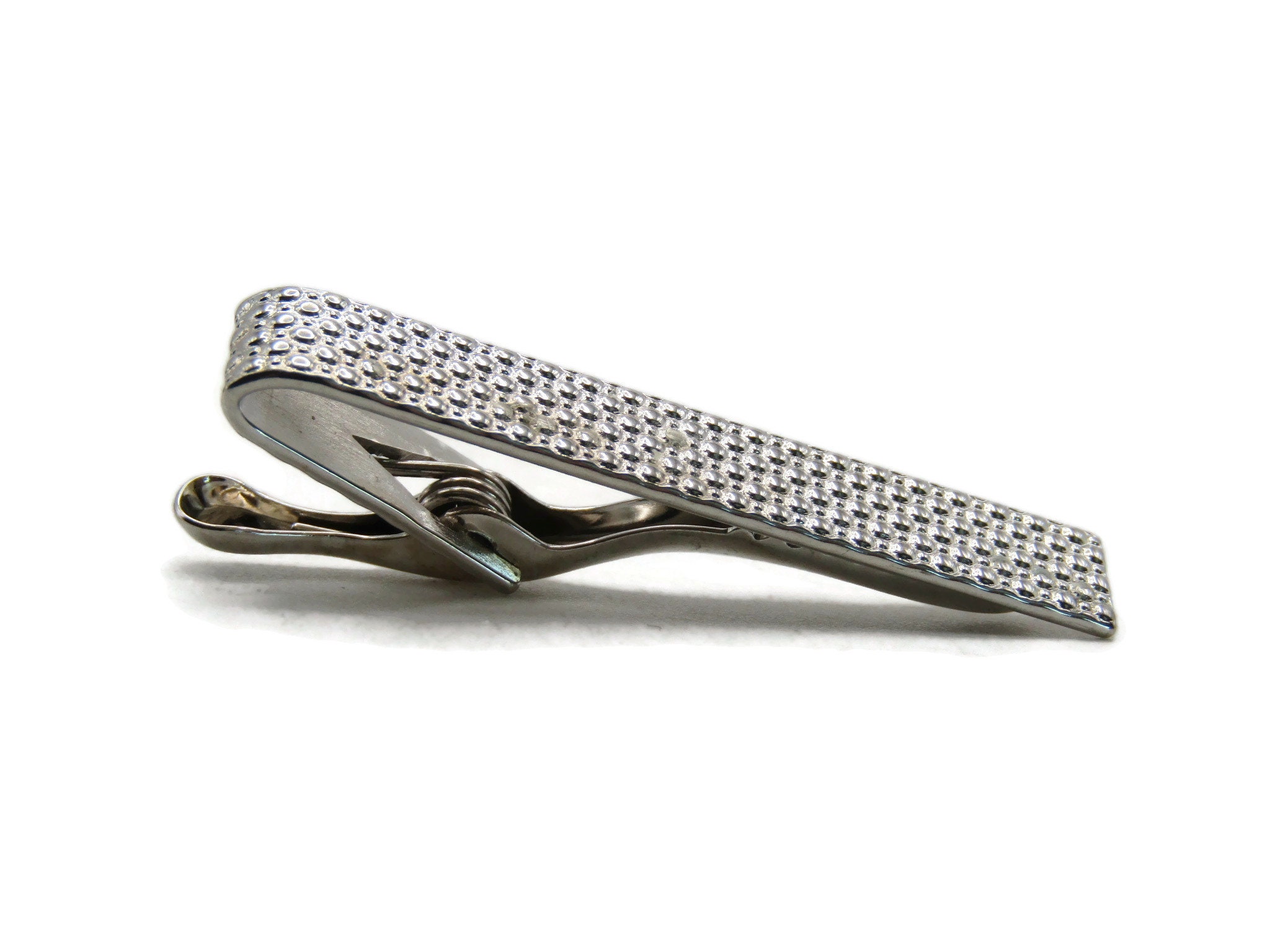 Circle Texture Tie Clip Modernist Tie Bar Men's Jewelry Silver Tone