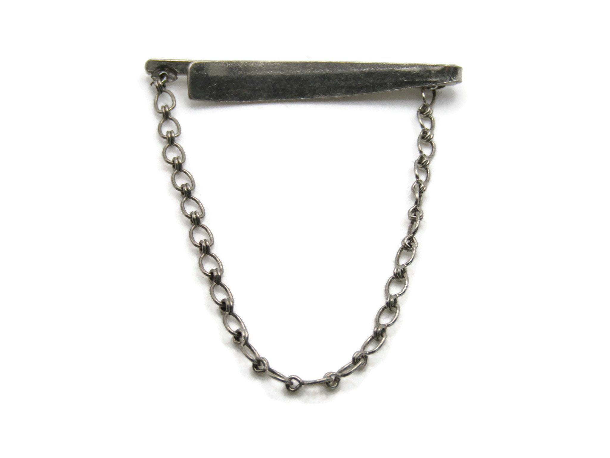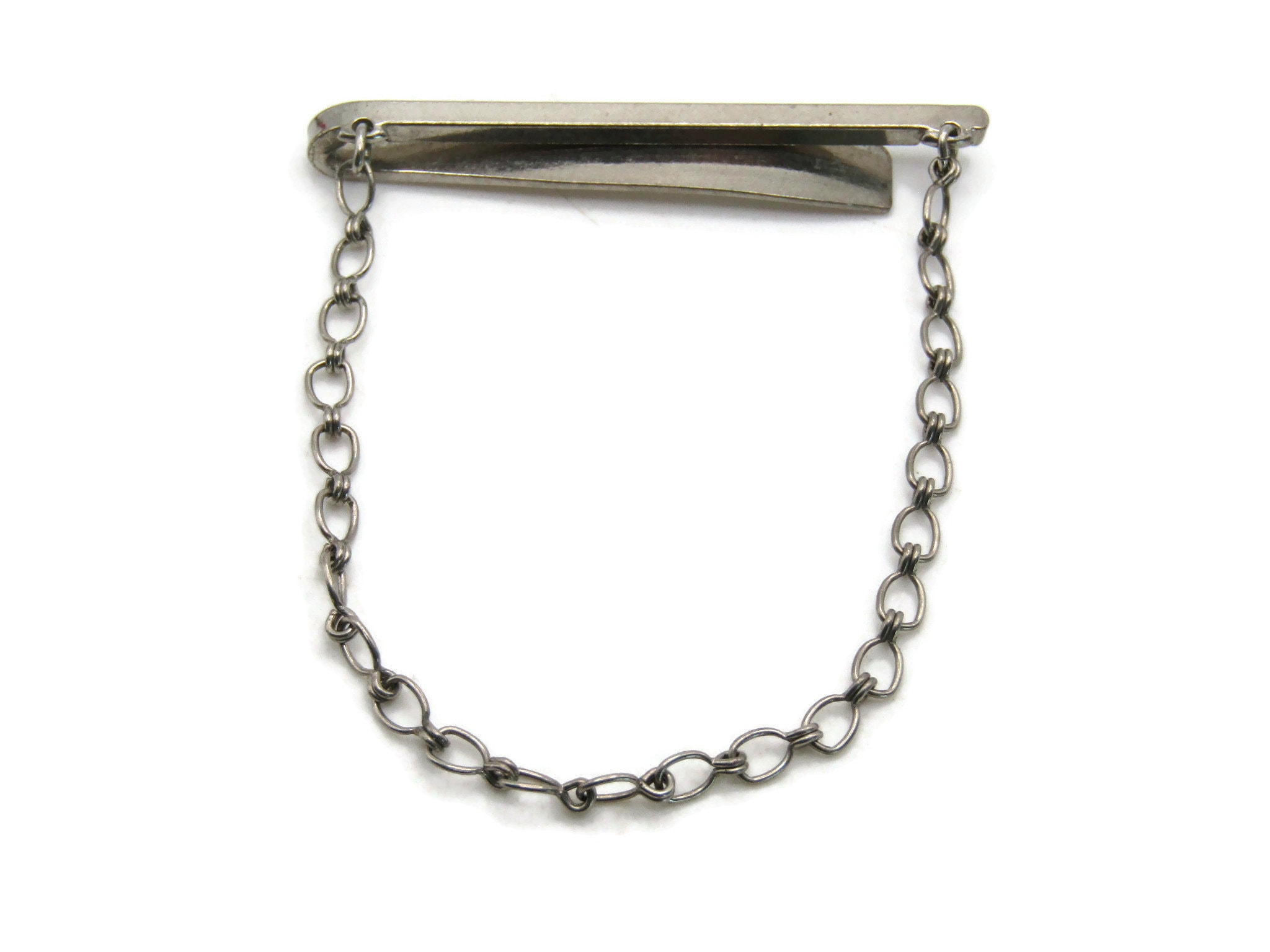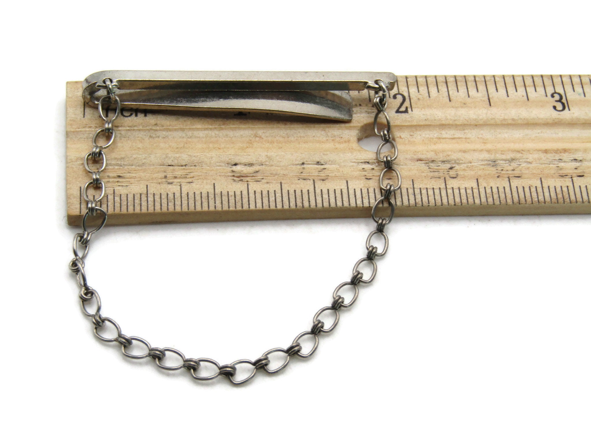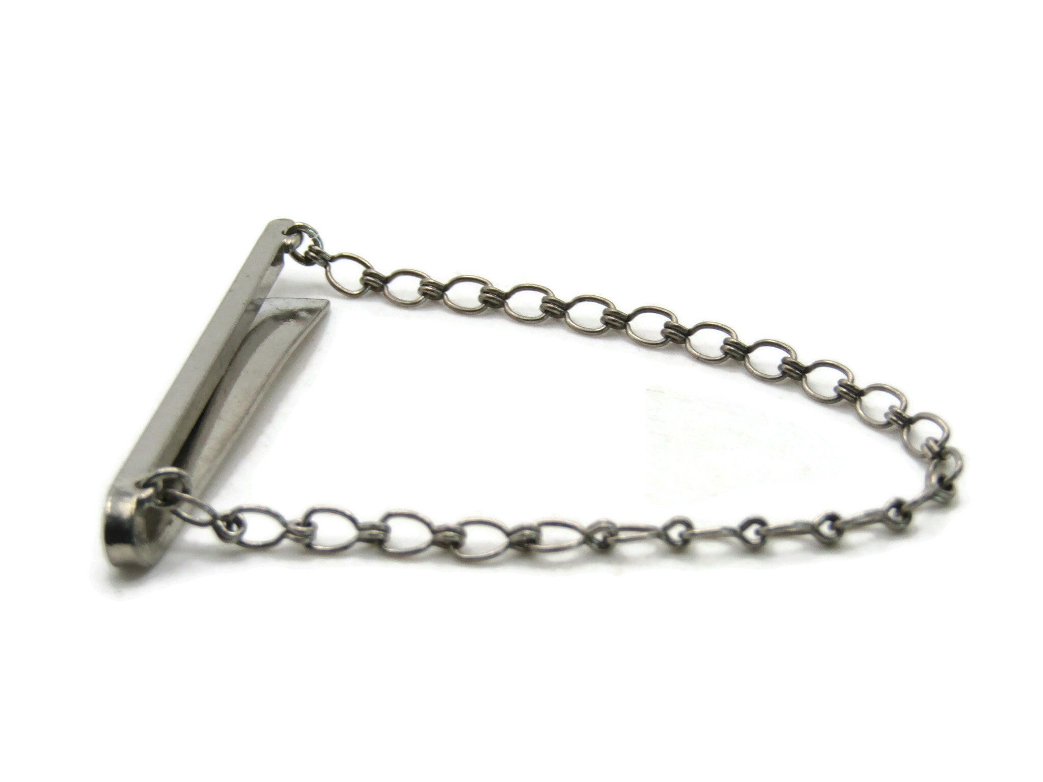 Classic Industrial Tie Clip And Chain Tie Bar Men's Jewelry Silver Tone