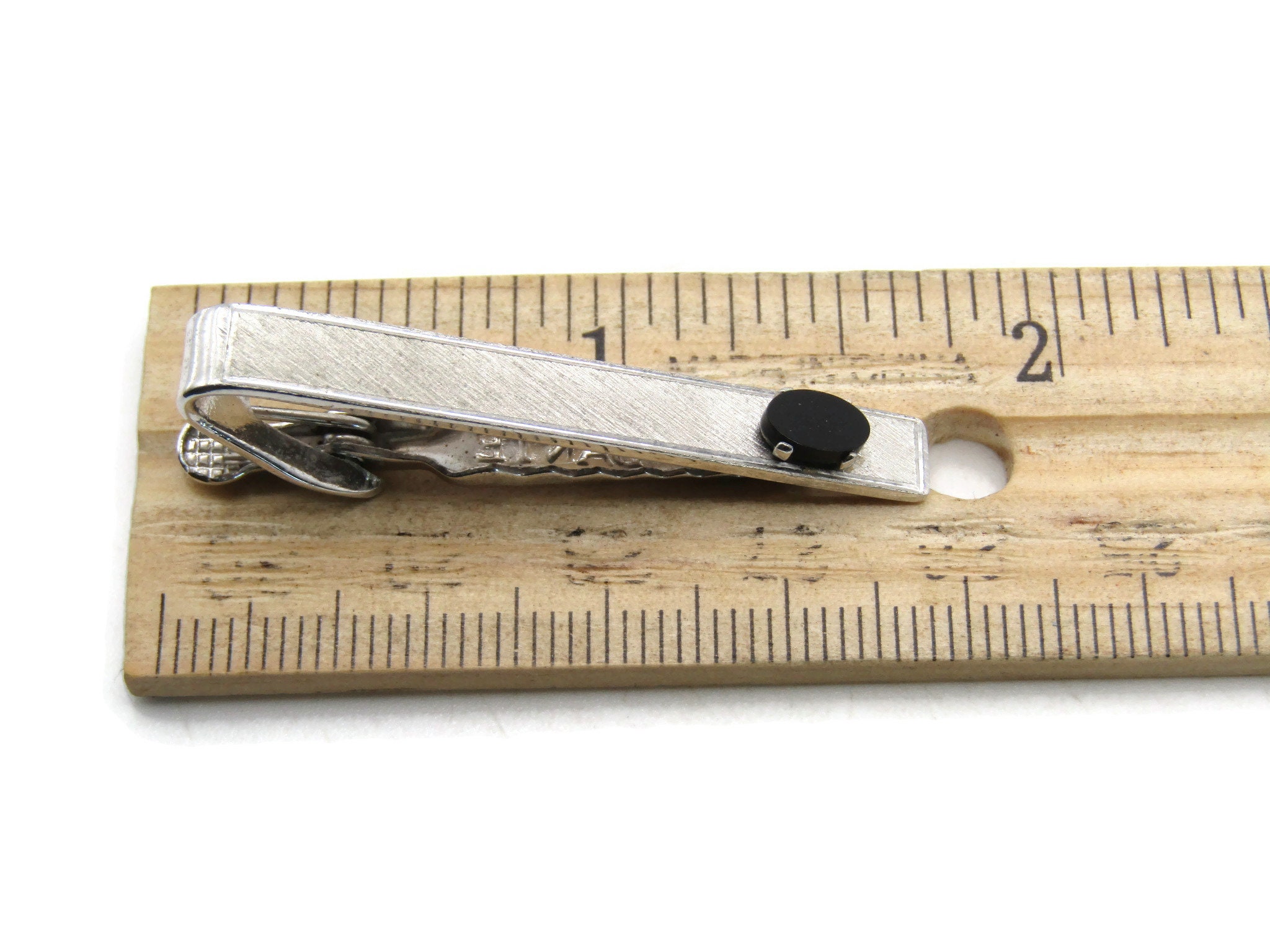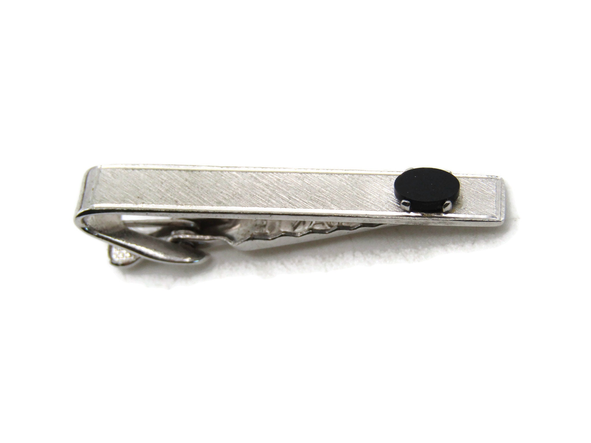 Black Stone Inlay Brushed Finish Tie Clip Tie Bar Men's Jewelry Silver Tone