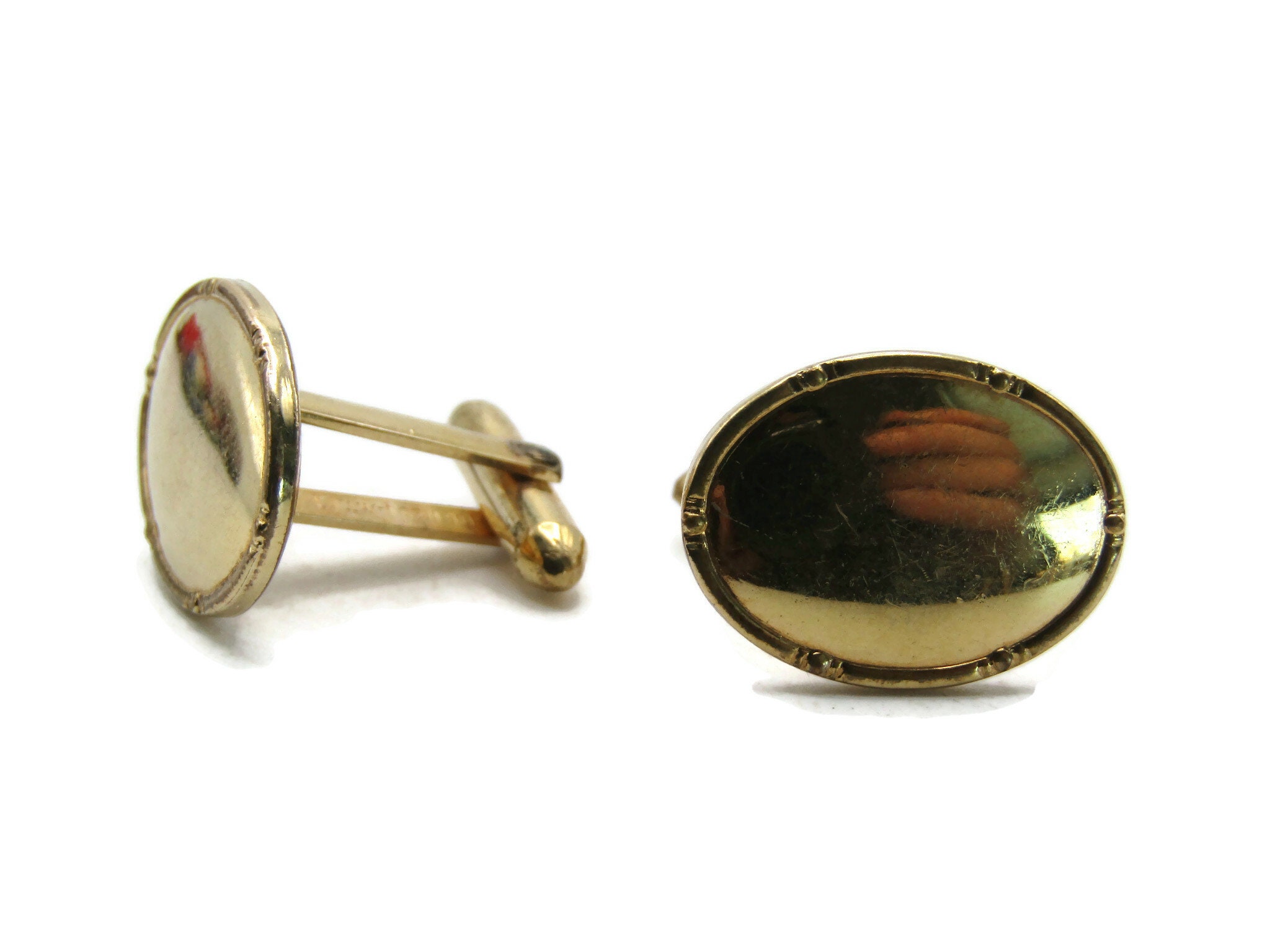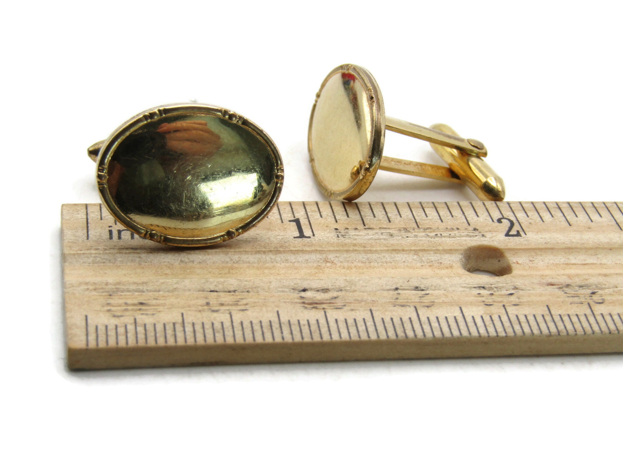 Smooth Finish Decorative Edge Oval Cuff Links Men's Jewelry Gold Tone