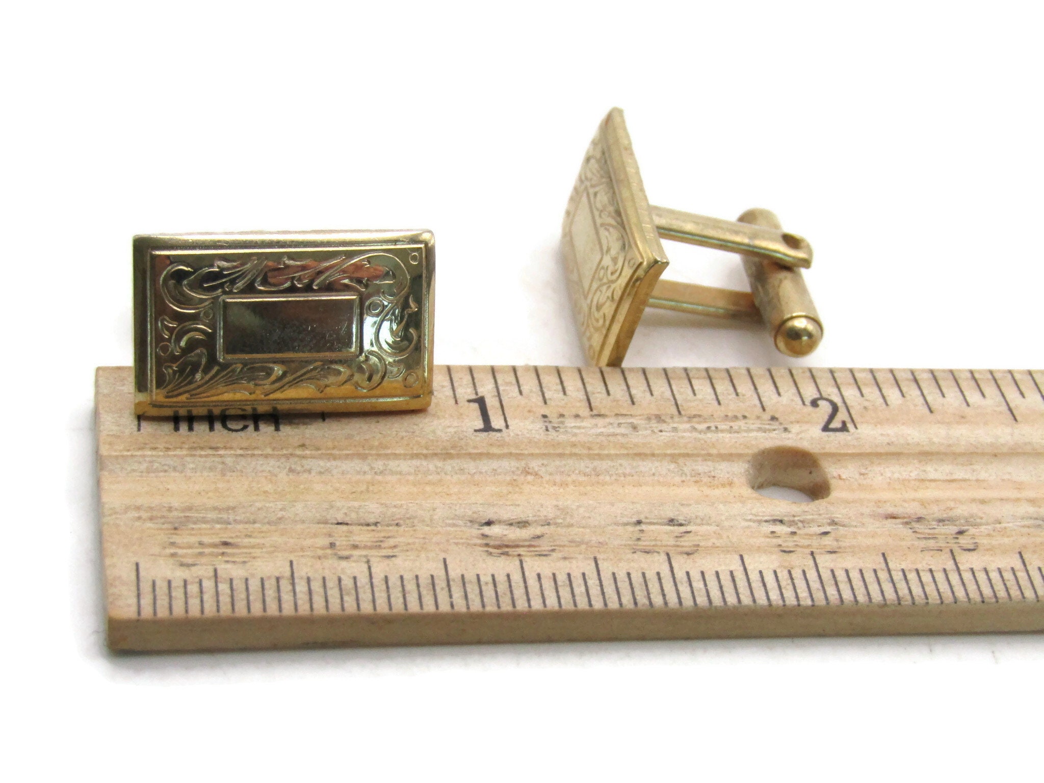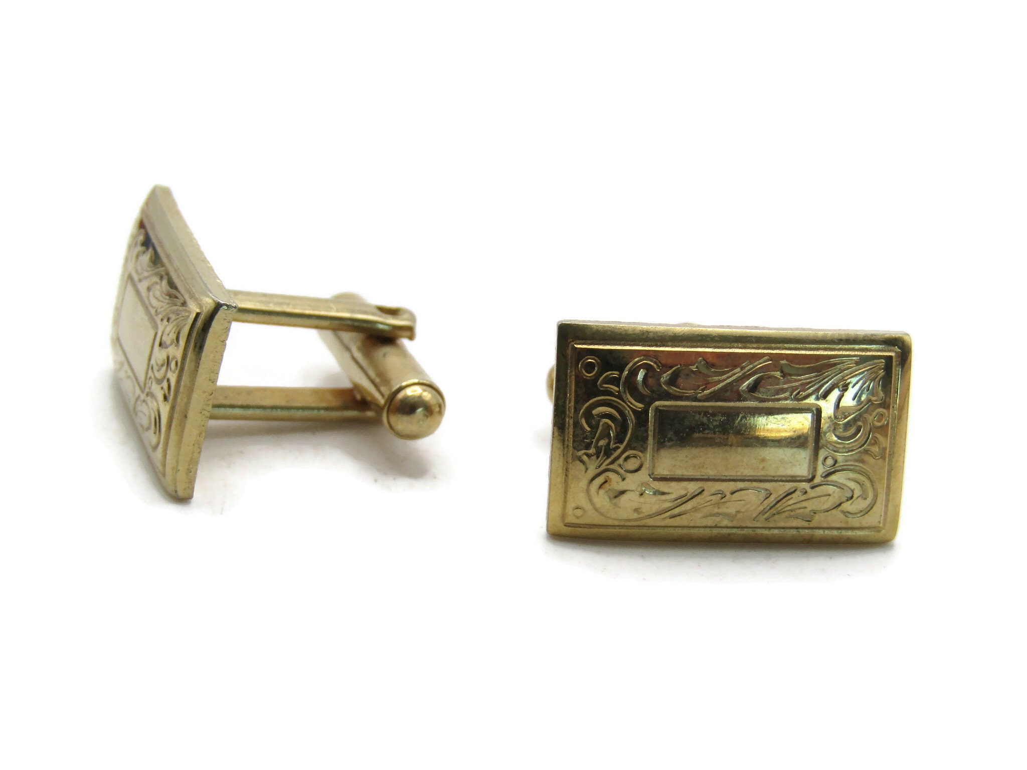 Rectangle Decorative Motif Cuff Links Men's Jewelry Gold Tone