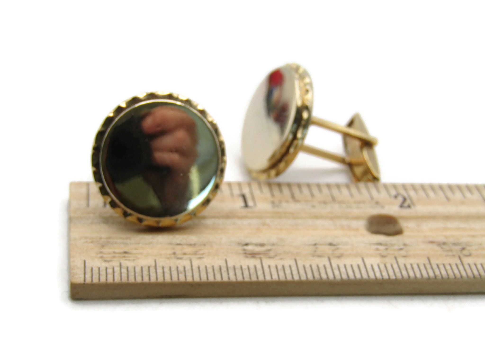 Smooth Finish Decorative Edge Oval Cuff Links Men's Jewelry Gold Tone