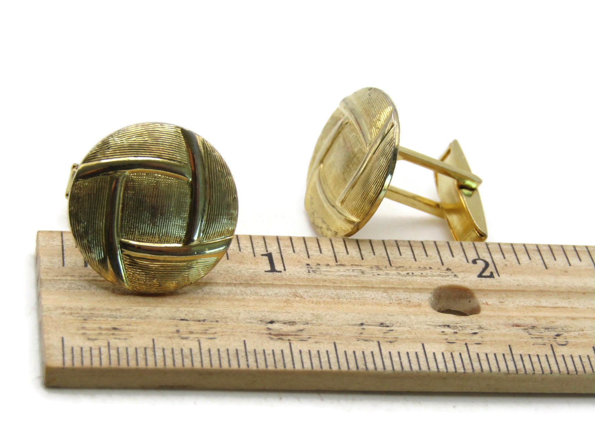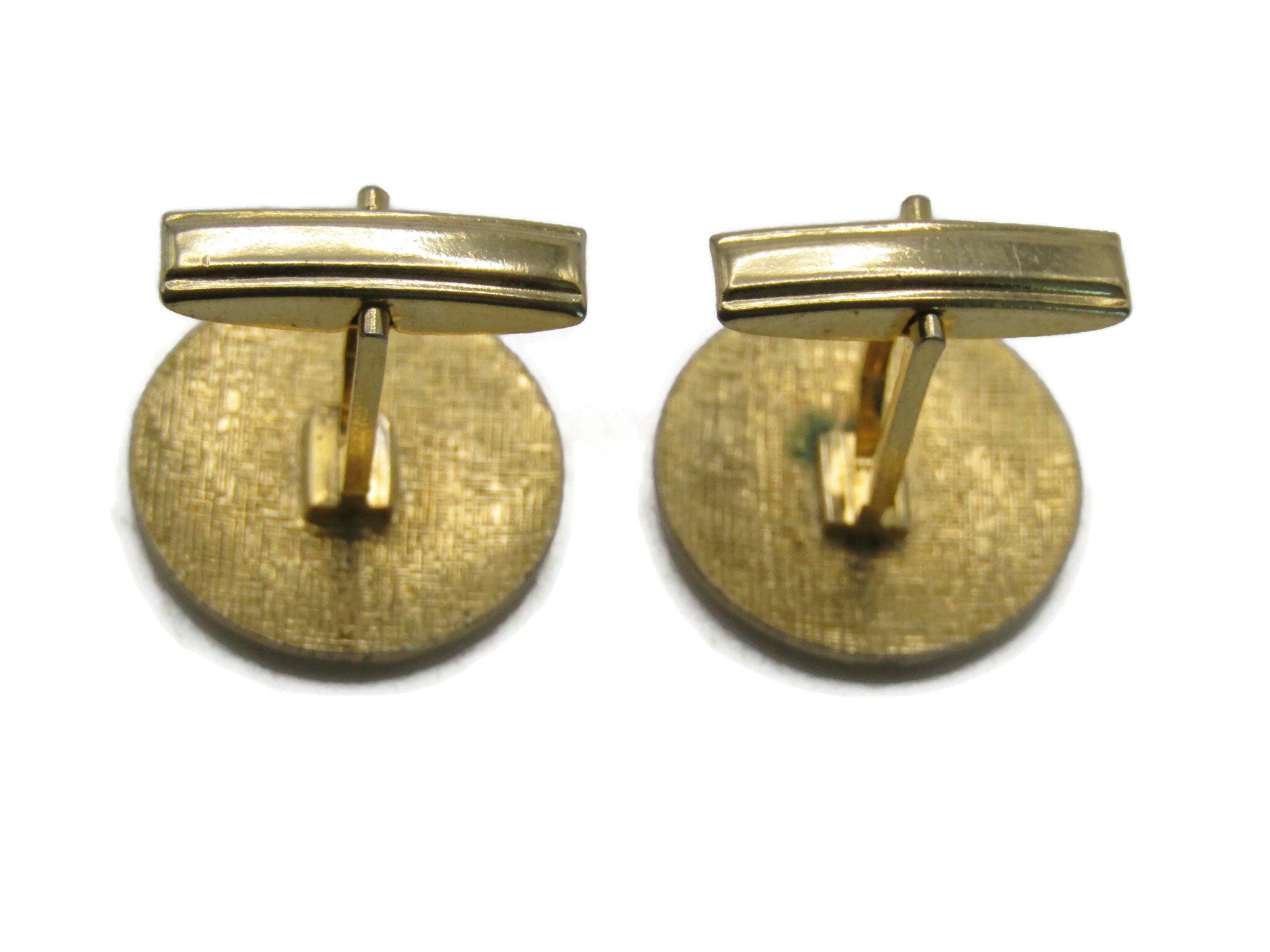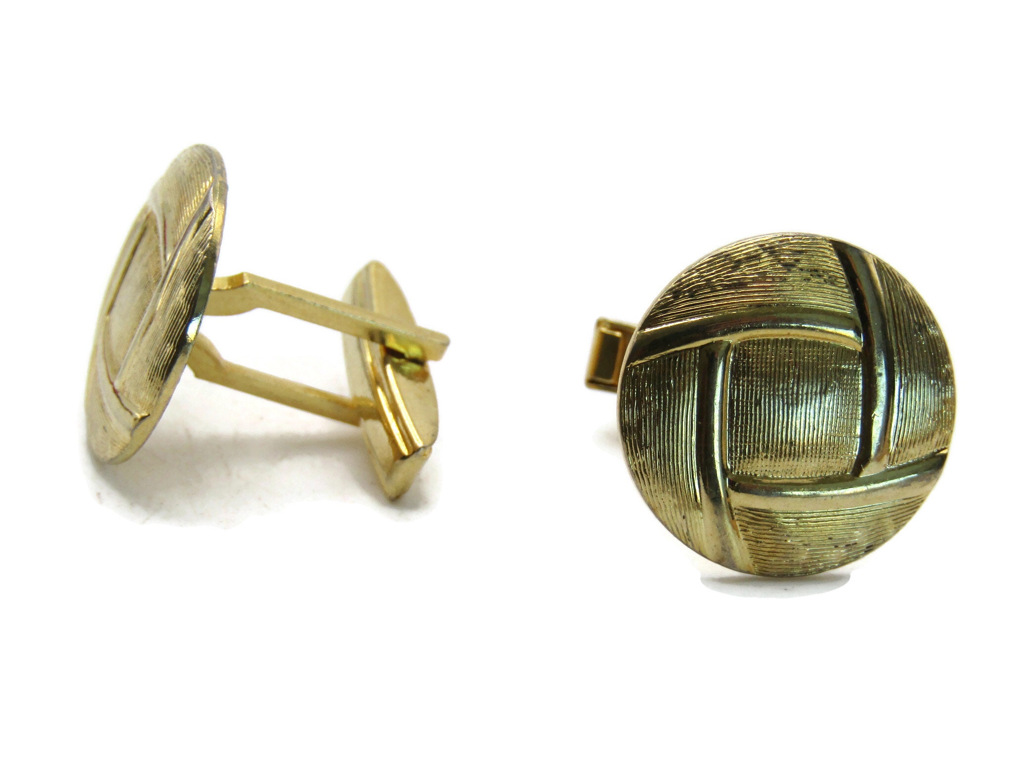Round Line Design Textured Cuff Links Men's Jewelry Gold Tone