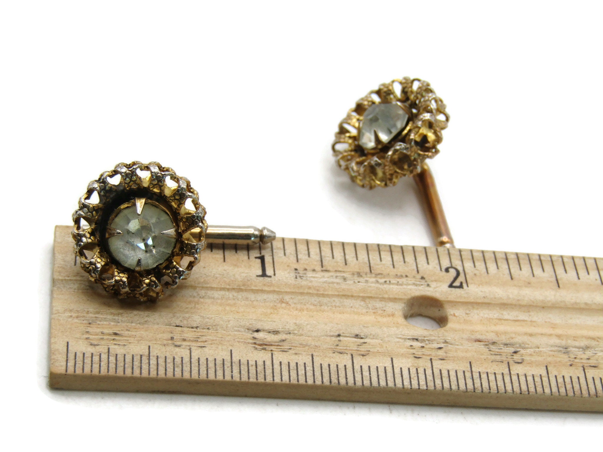 Rhinestone Inlay Decorative Edging Cuff Links Men's Jewelry Gold Tone
