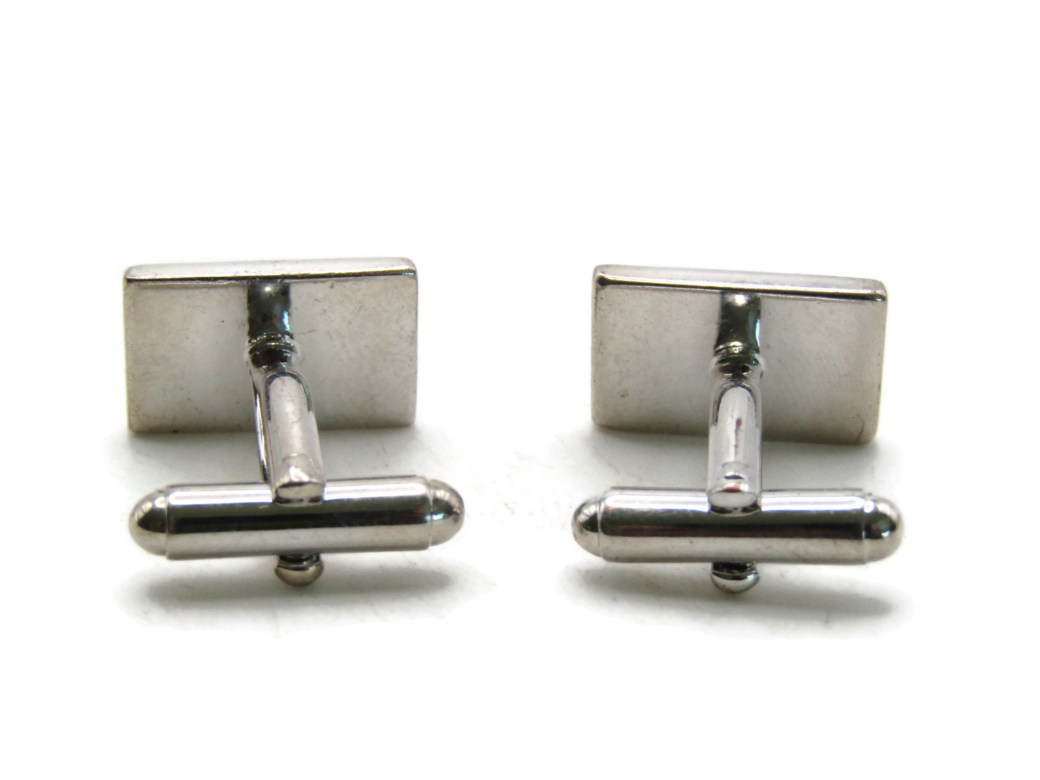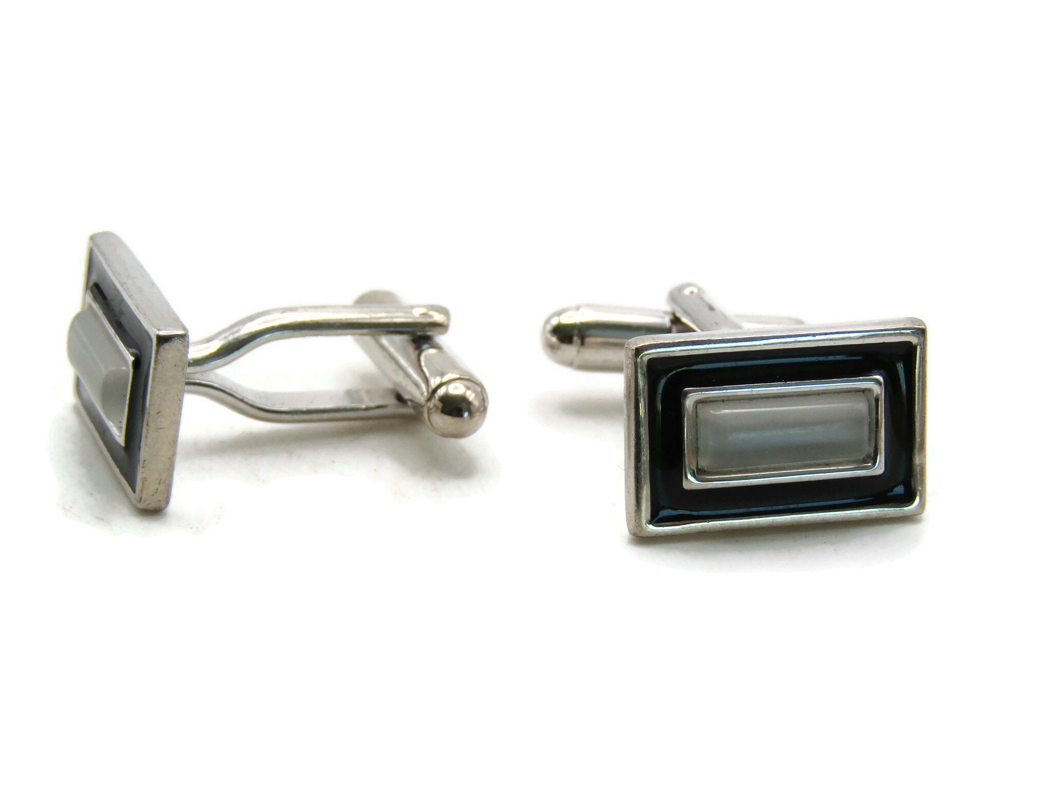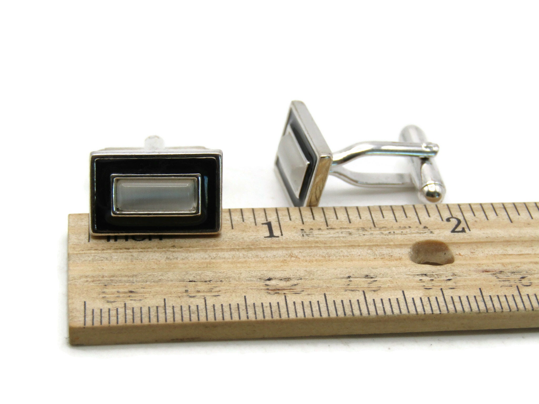 Black And White Rectangle Cuff Links Men's Jewelry Silver Tone