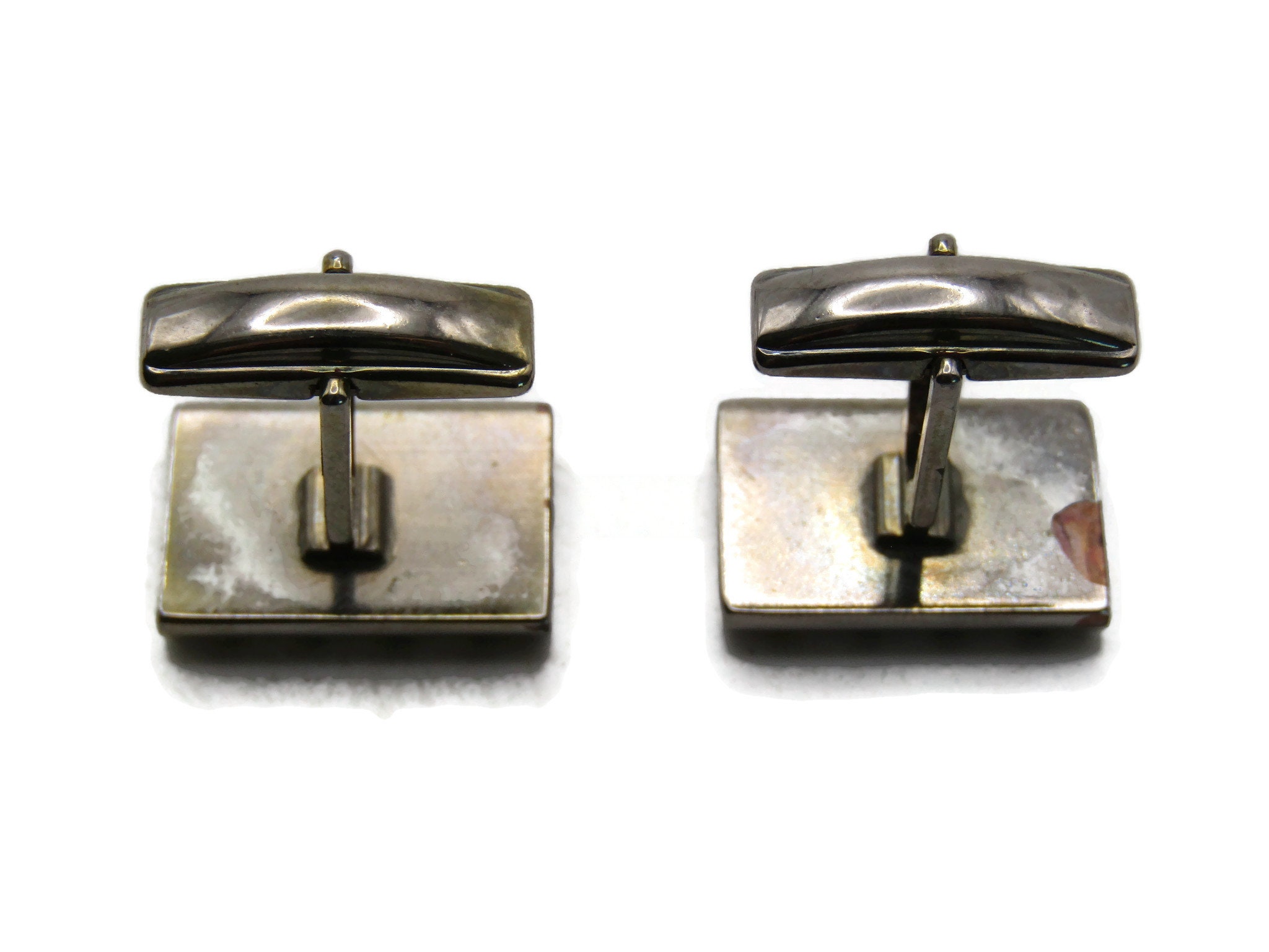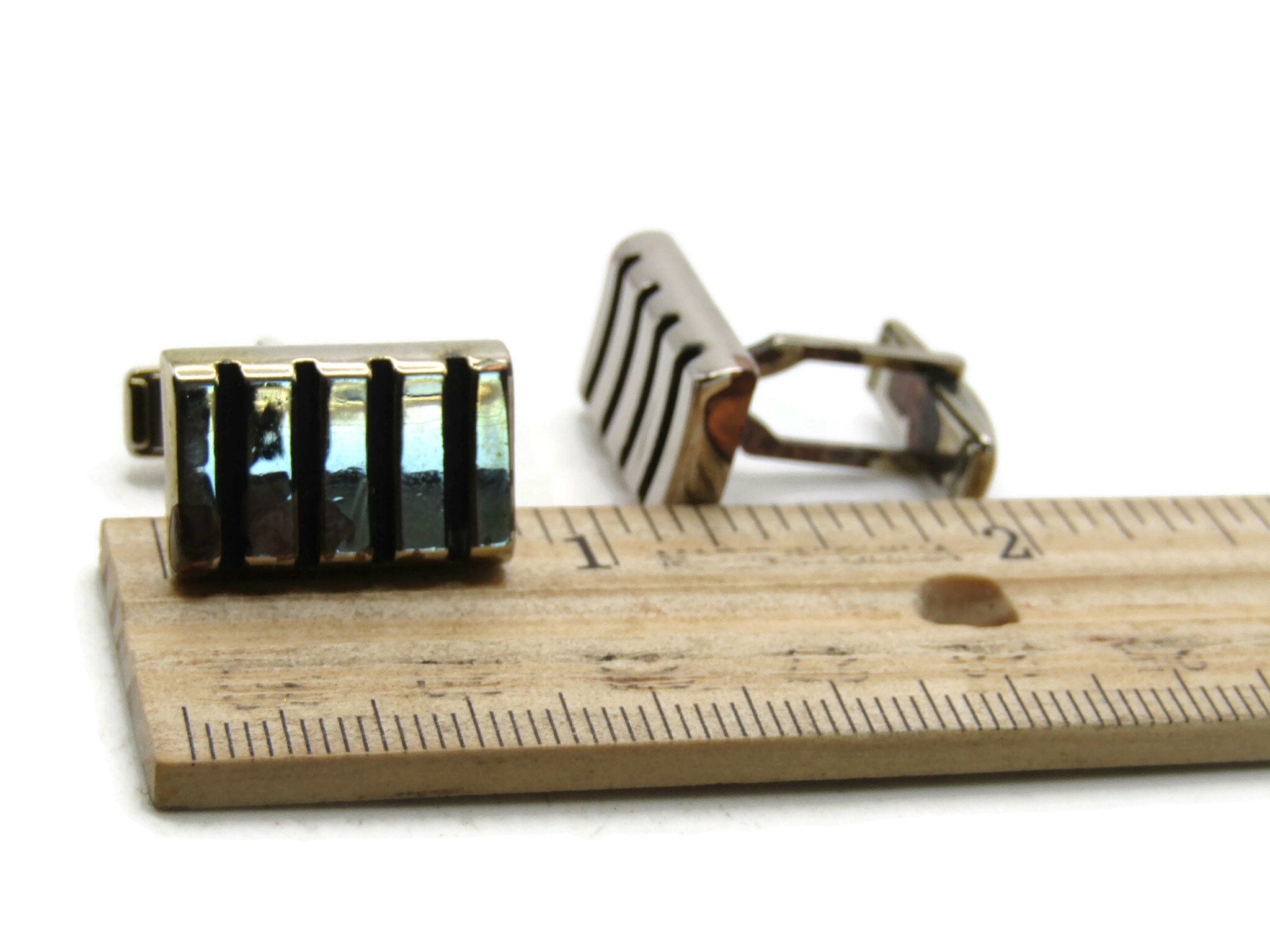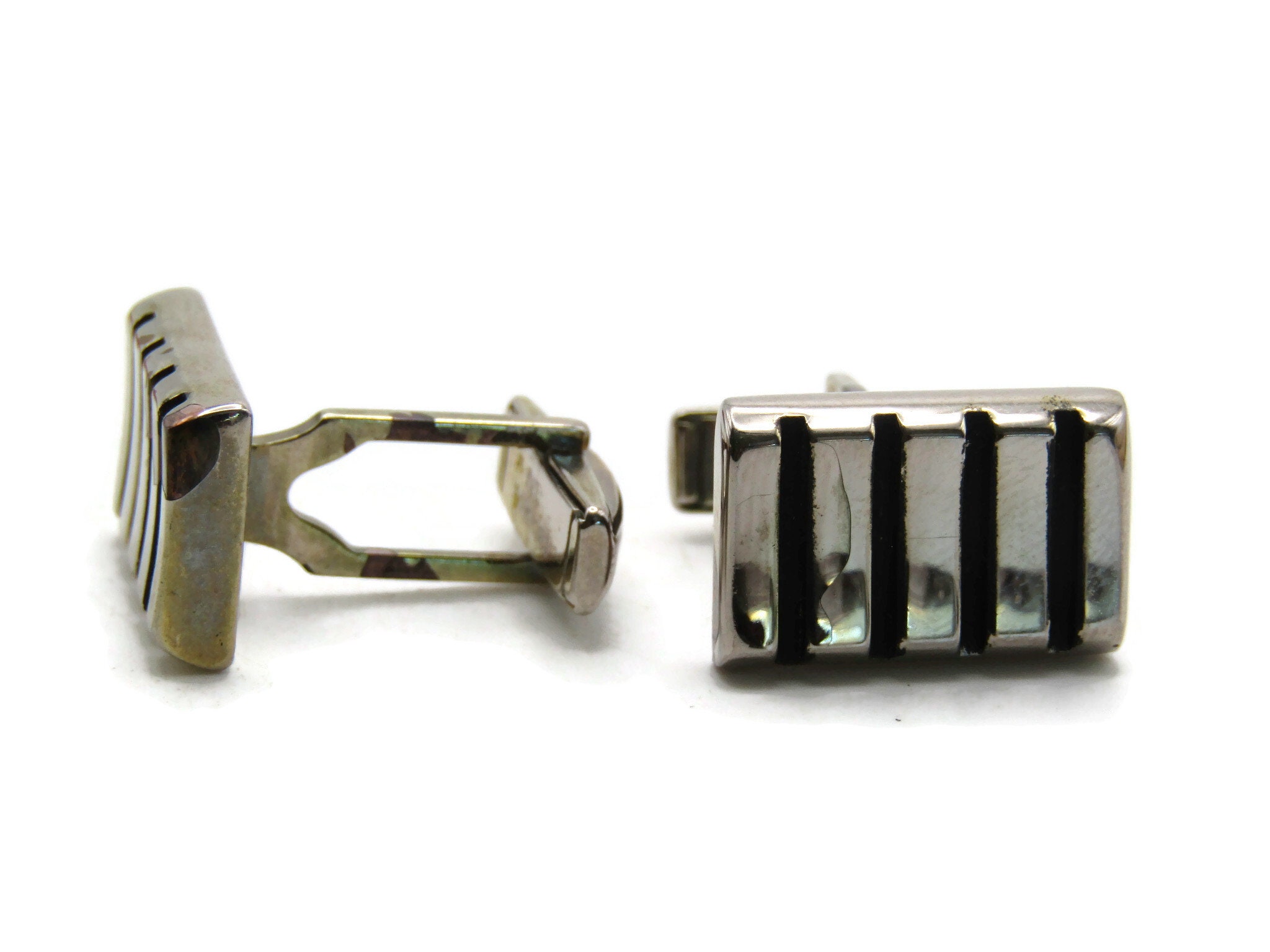 Black Etched Vertical Line Cuff Links Men's Jewelry Silver Tone