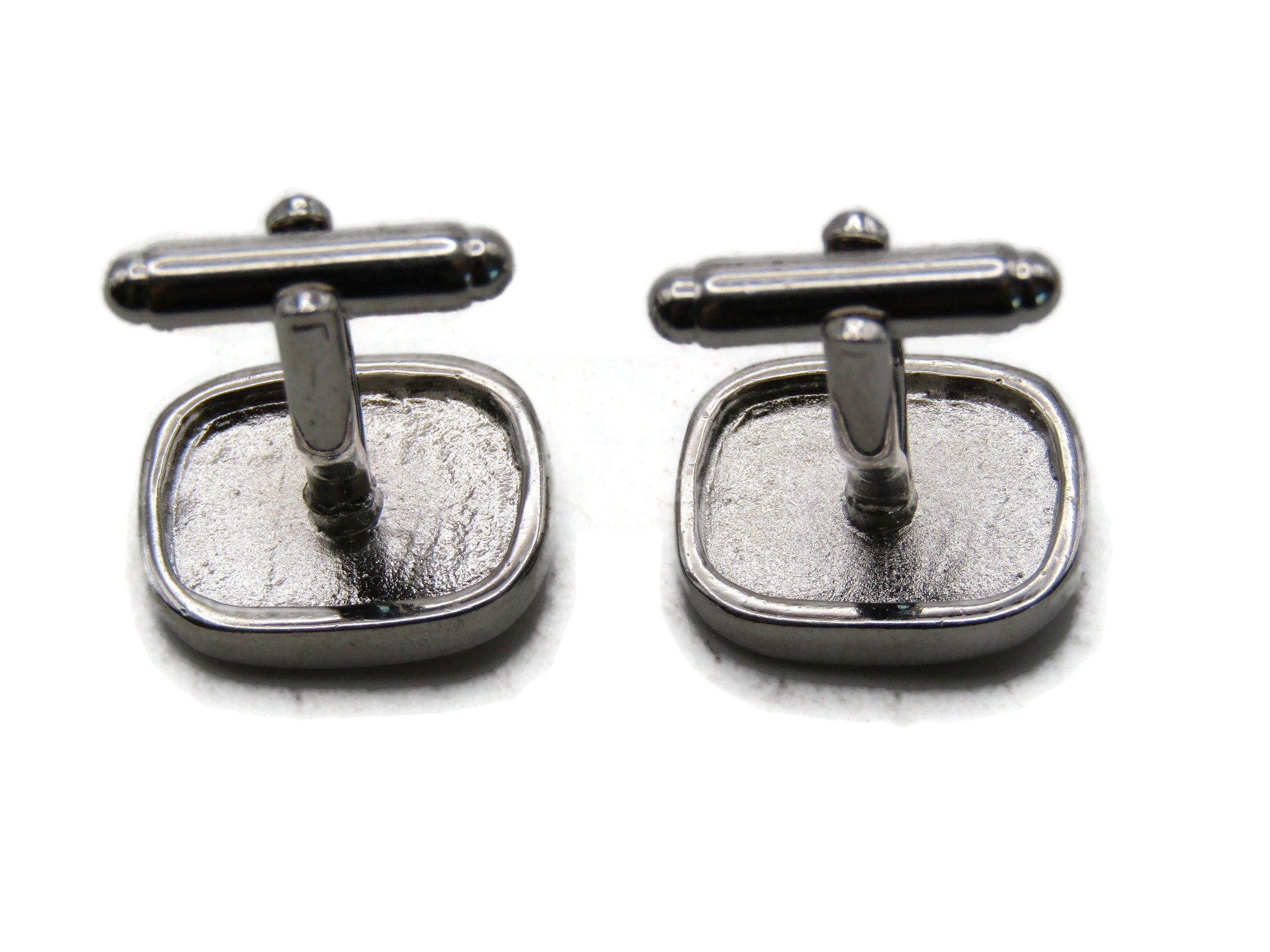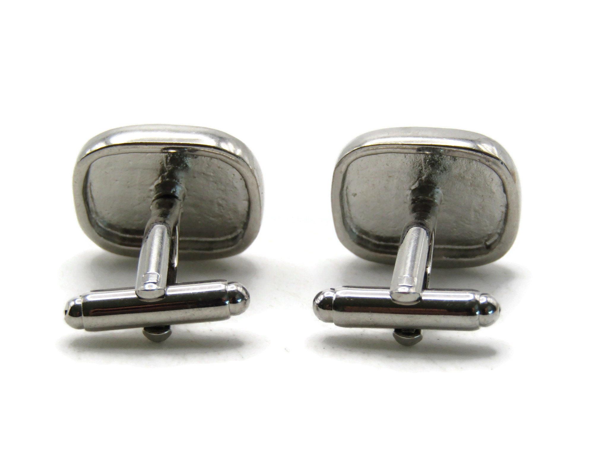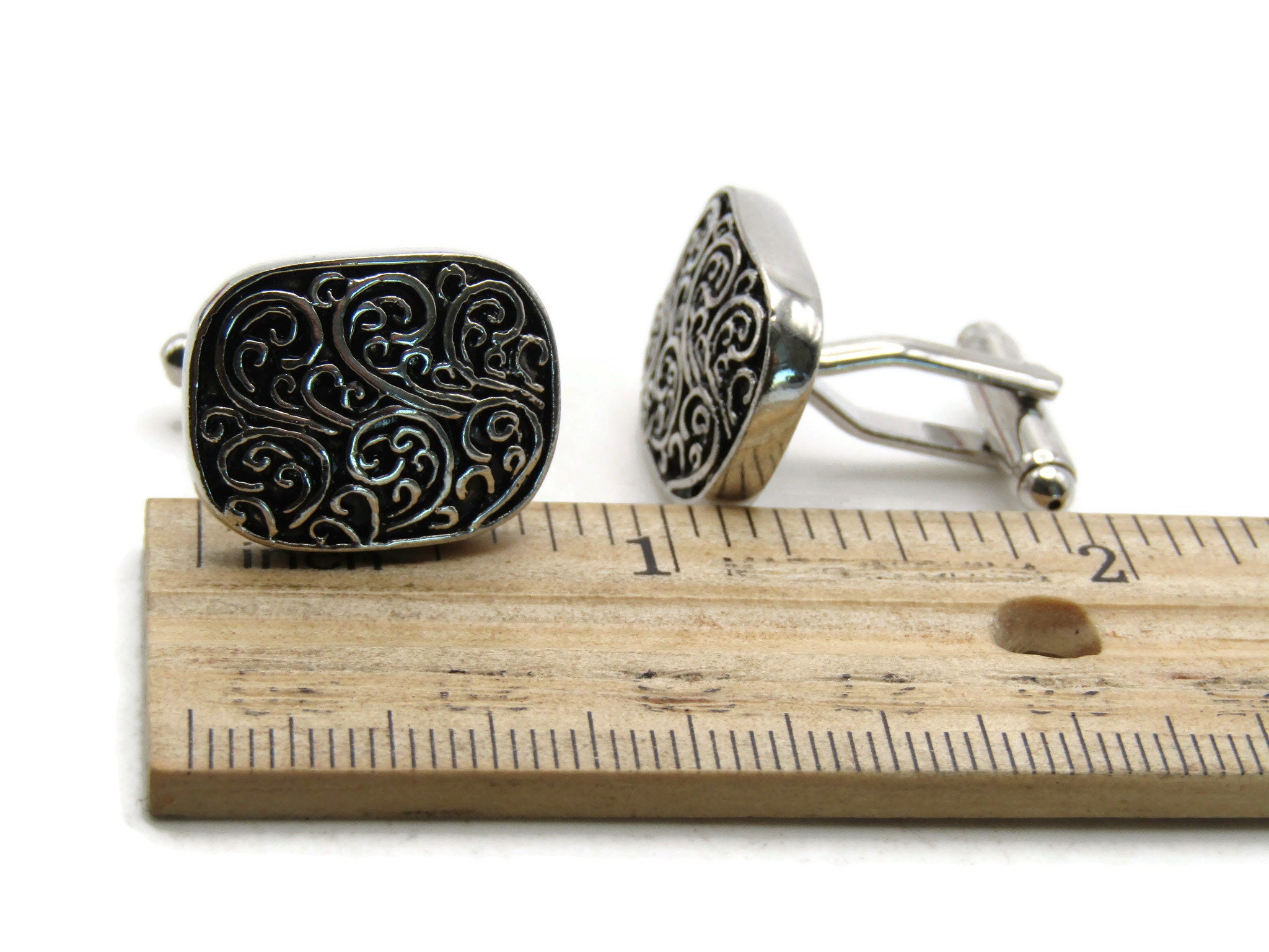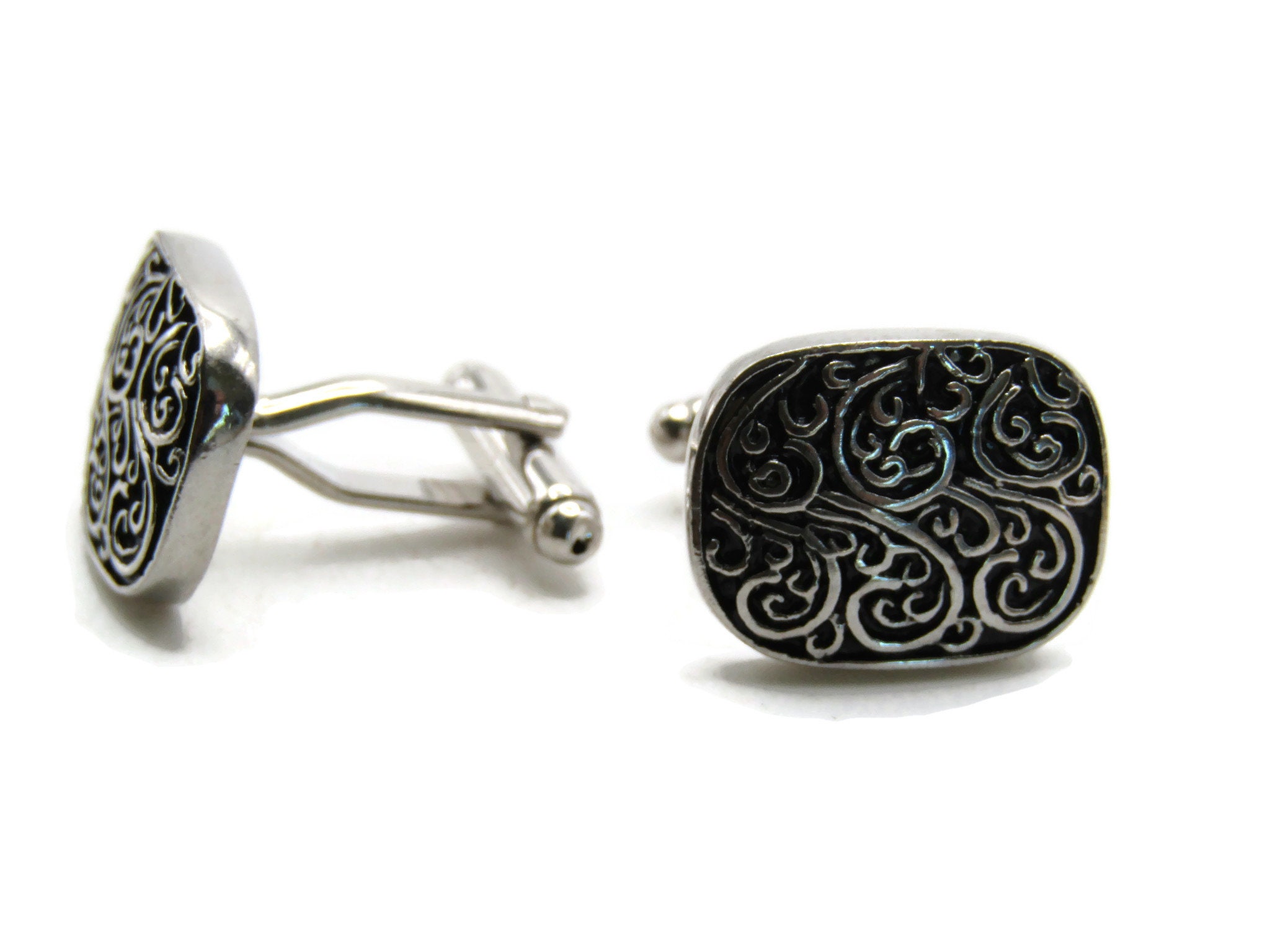 Decorative Line Design Rectangle Cuff Links Men's Jewelry Black And Silver Tone