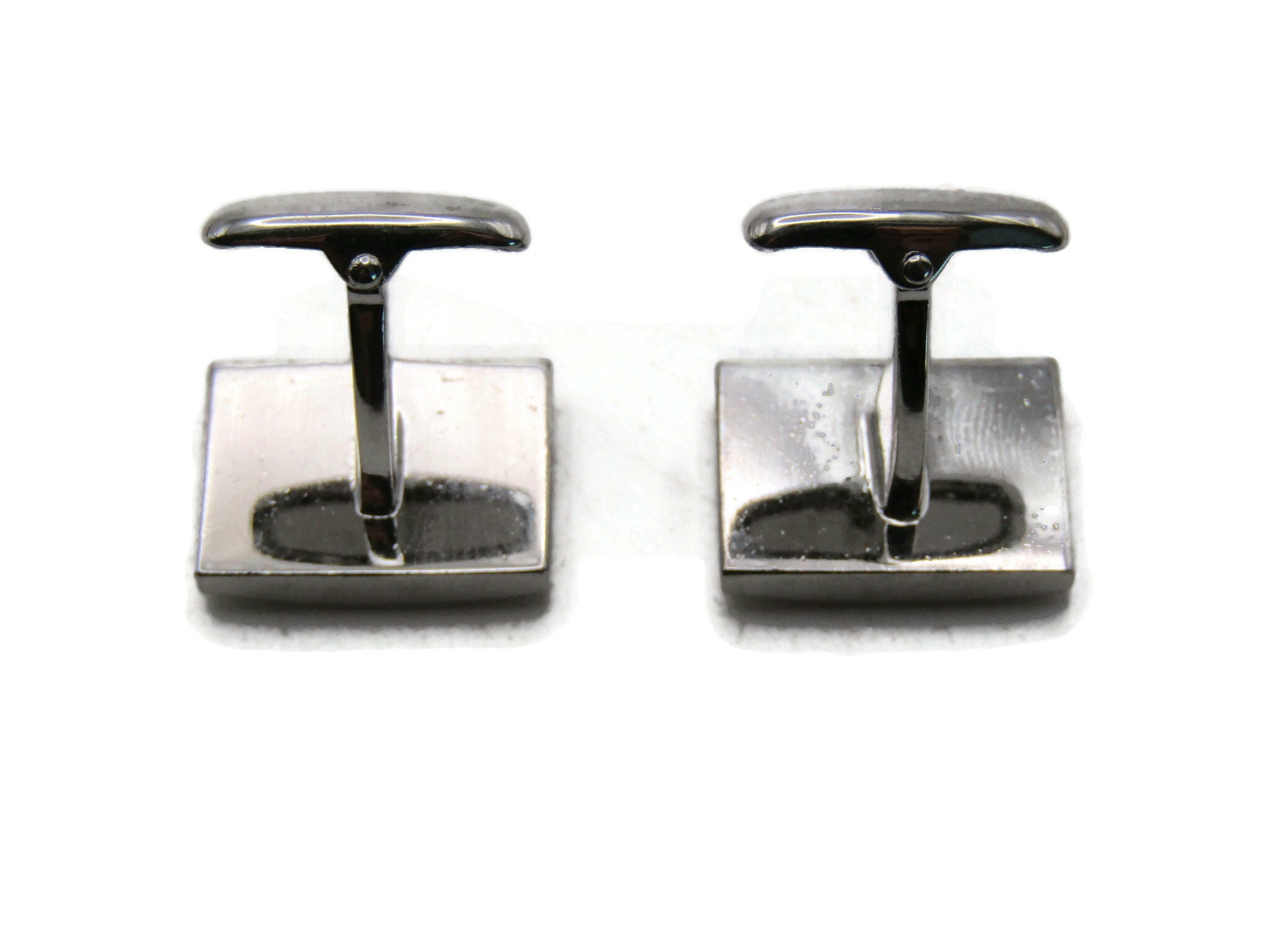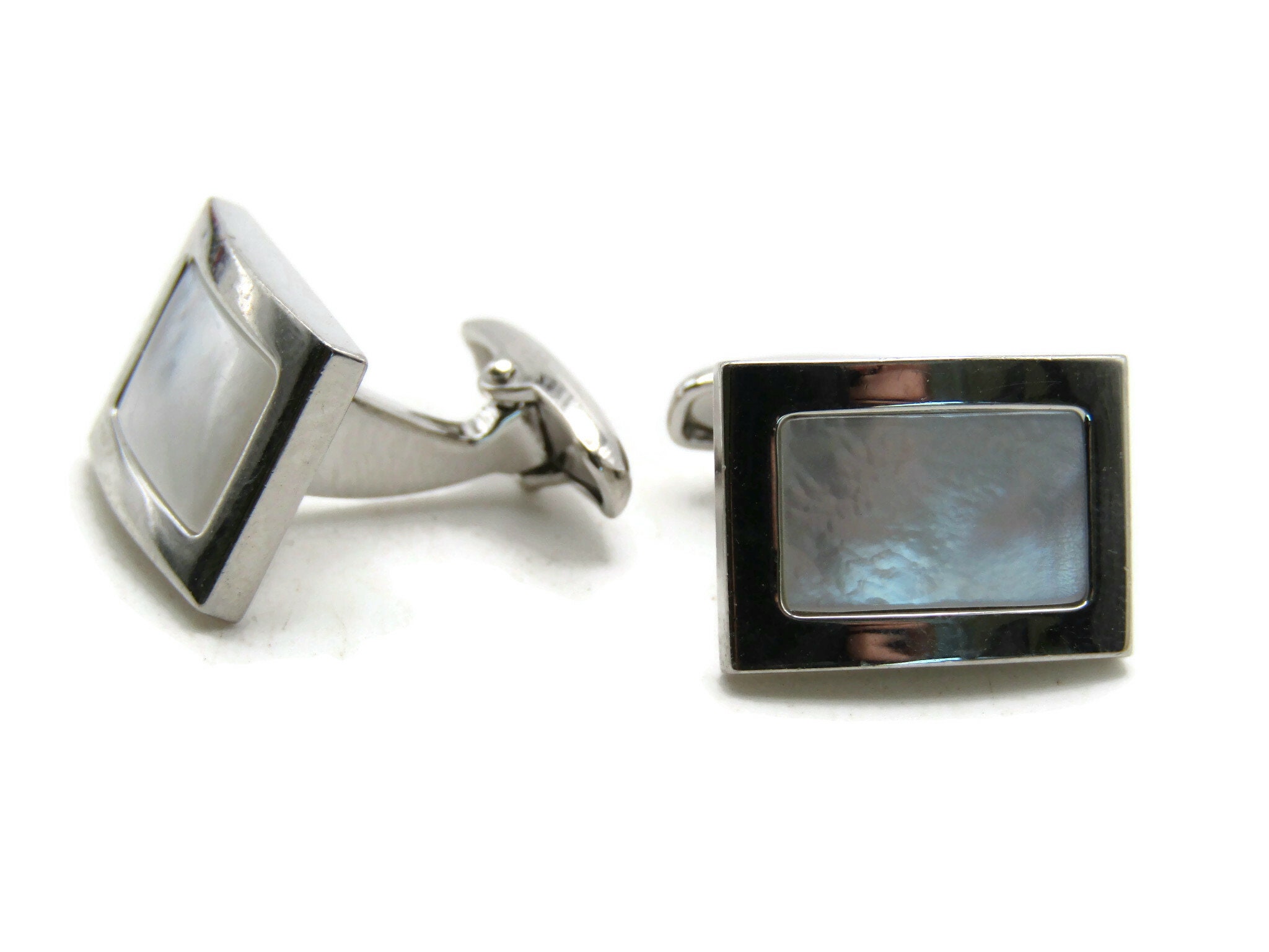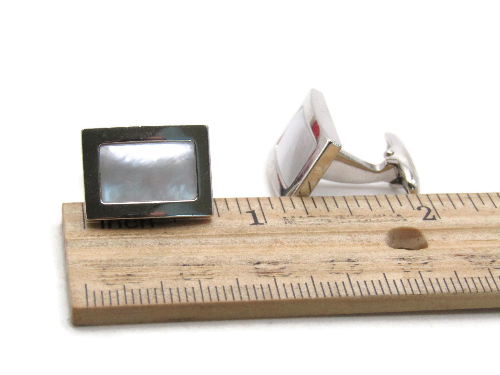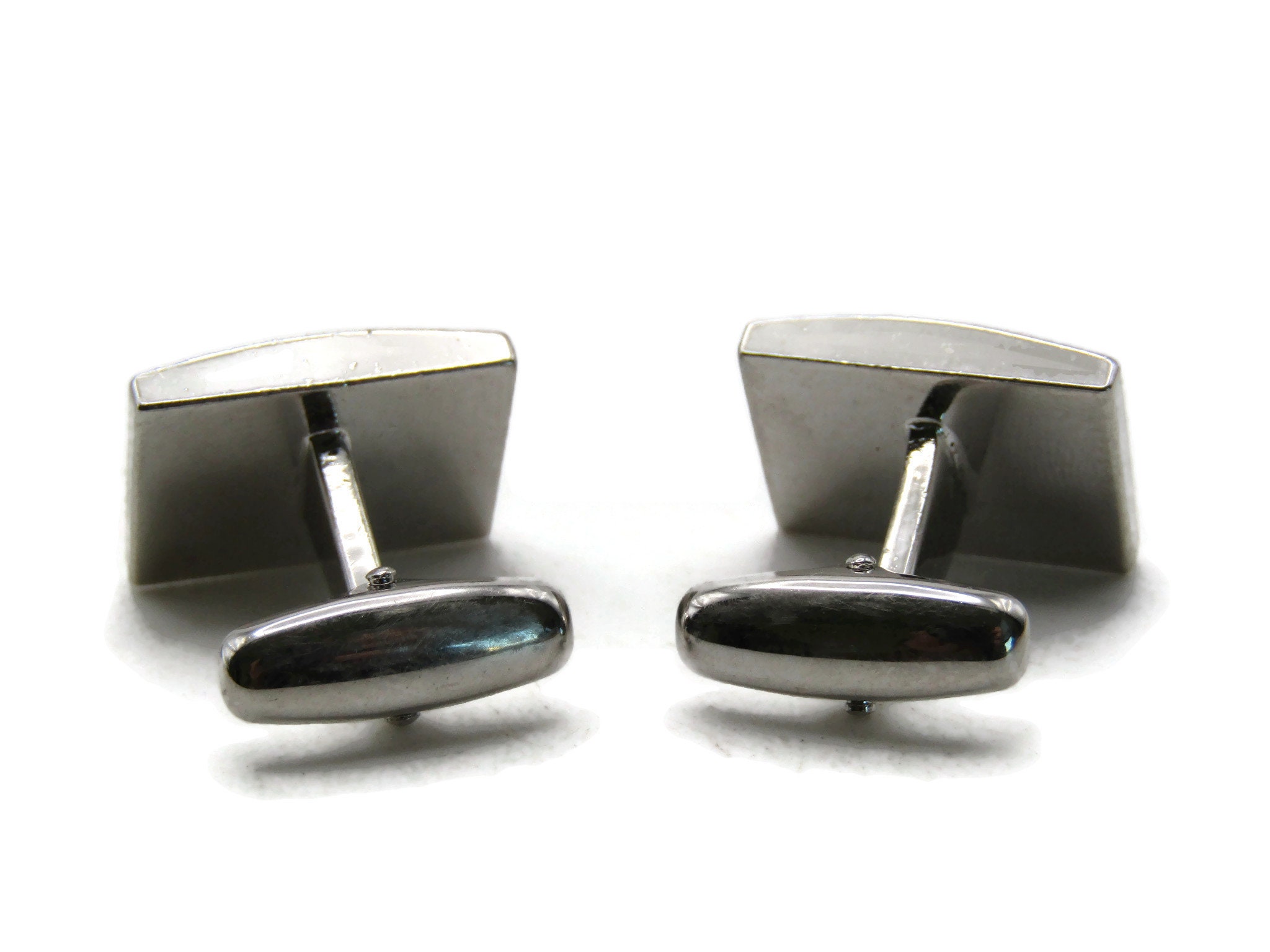 White Stone Inlay Rectangle Cuff Links Men's Jewelry Silver Tone